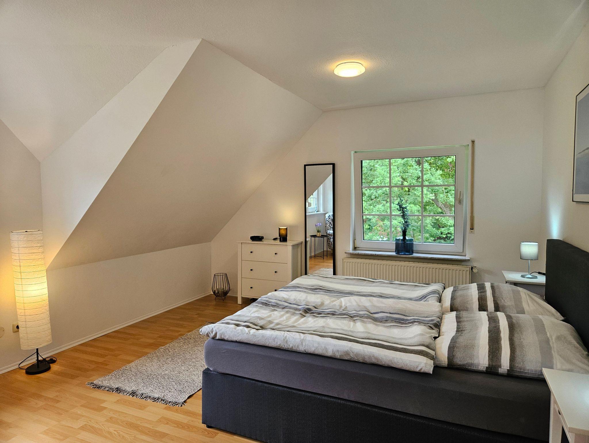 Die Ferienwohnung wurde 2025 frisch renoviert und befindet sich im Obergeschoss eines privaten Wohnhauses. Sie ist besonders für Paare oder Einzelreisende geeignet, aber auch eine dritte Person findet bequem Platz. Gäste profitieren vom kontaktlosen Check-in über Schlüsseltresor, kostenlosem Parkplatz direkt am Haus und einer abschließbaren Unterstellmöglichkeit für Fahrräder.