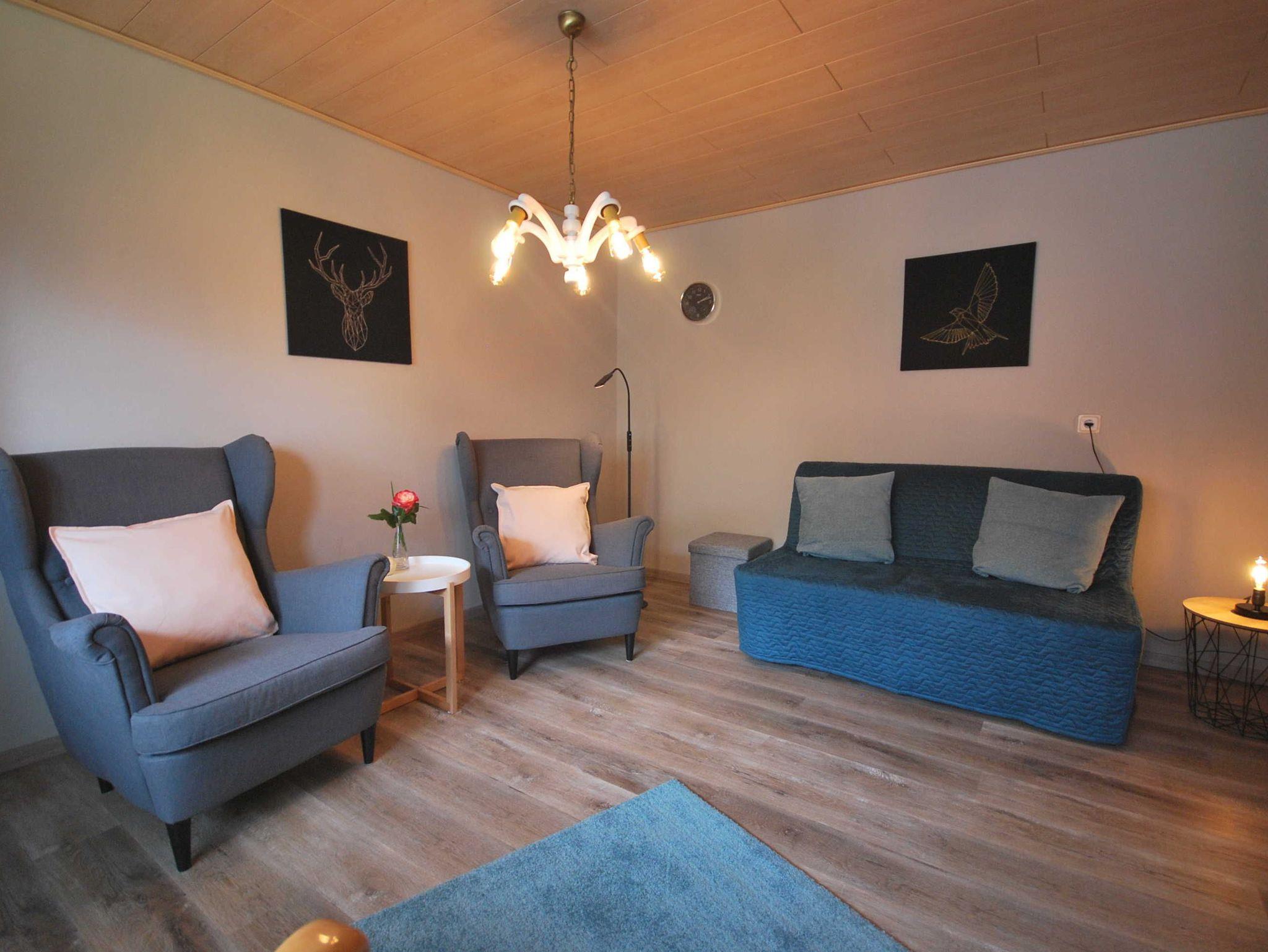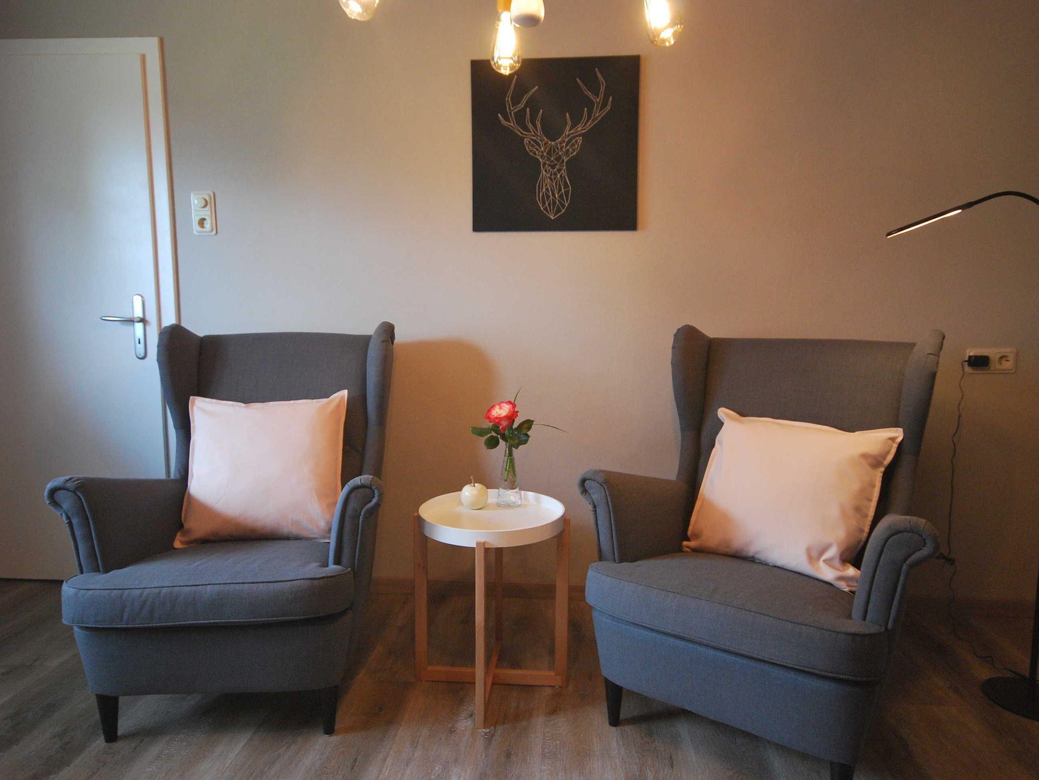 Ein gemütlich eingerichtetes Schlafzimmer mit Doppelbett bietet Ihnen am Ende des Tages oder auch zwischendurch die Möglichkeit zur Erholung. Auch ein Schlafsofa im Wohnzimmer ist zu diesem Zweck gegeben. Eine liebevoll eingerichtete Küche und ein Badezimmer mit ebenerdiger Dusche stehen für Sie zur freien Nutzung zur Verfügung. Um Abende stimmungsvoll ausklingen zu lassen können Sie gerne unsere Sitzecke im Garten sowie die Grillmöglichkeit in Anspruch nehmen.