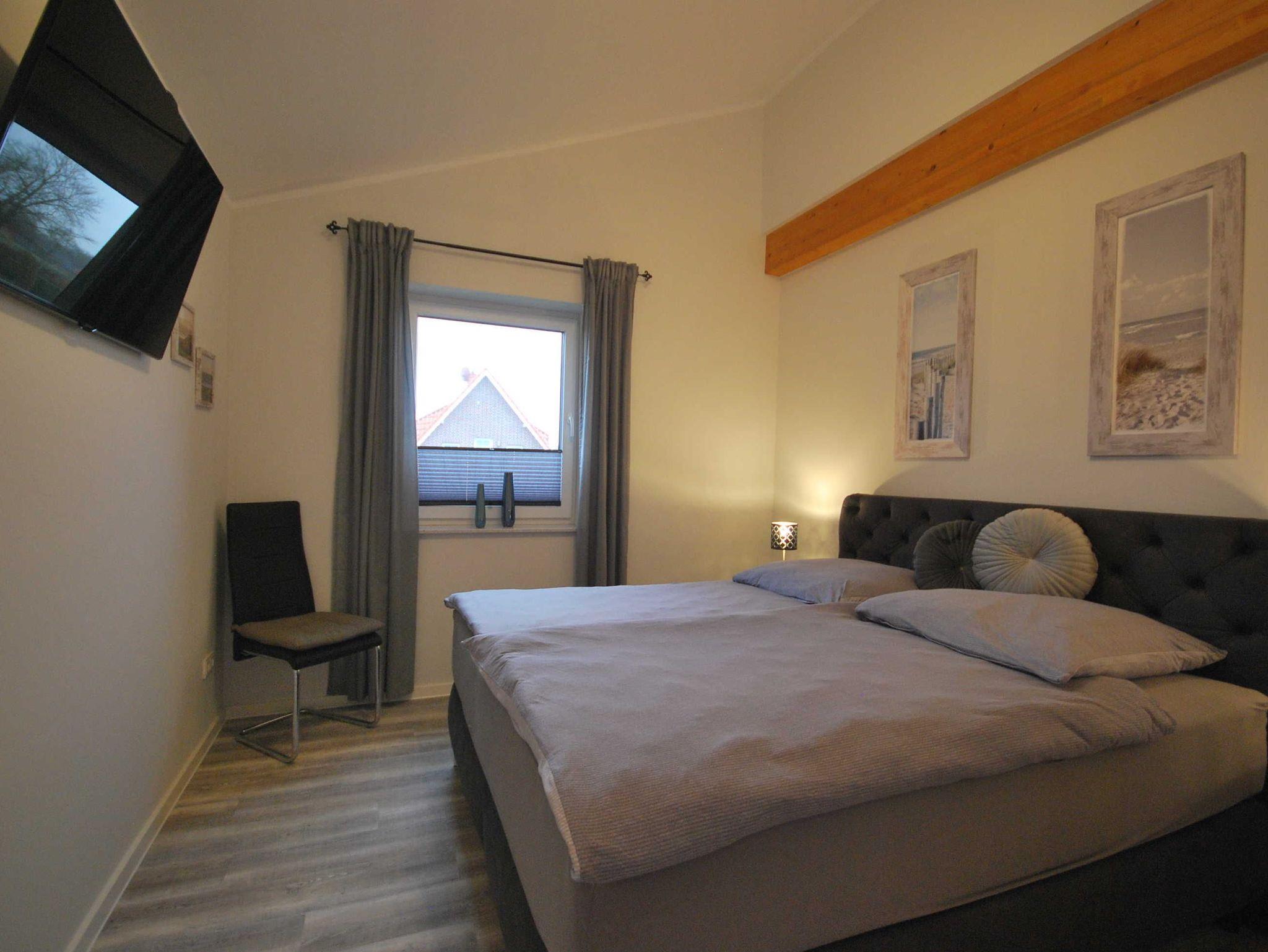Ihre Ferienwohnung finden Sie im Obergeschoss eines modernen Neubaus mit separetem Eingang. Alle Räumlichkeiten sind mit Liebe zum Detail eingerichtet. Die voll ausgestattete Wohnküche verfügt zusätzlich über einen Geschirrspüler, Gefrierschrank und Mikrowelle. Den Wohnbereich zeichnet eine große Sofalandschaft mit Flachbild-TV aus. Durch den Flur mit Spielecke für Kinder gelangen Sie in die zwei komfortablen Schlafräume. Die Schlafzimmer sind jeweils mit gemütlichen Boxspringbetten (180 x 200 und 140 x 200), Nachtkommoden, Kleiderschränke und Flachbild-TV ausgestattet. Durch den Flur gelangen Sie auch zum modernes Badezimmer mit Dusche/WC. Zusätzlich finden Sie im Badezimmer eine Waschmaschine und einen Trockner.