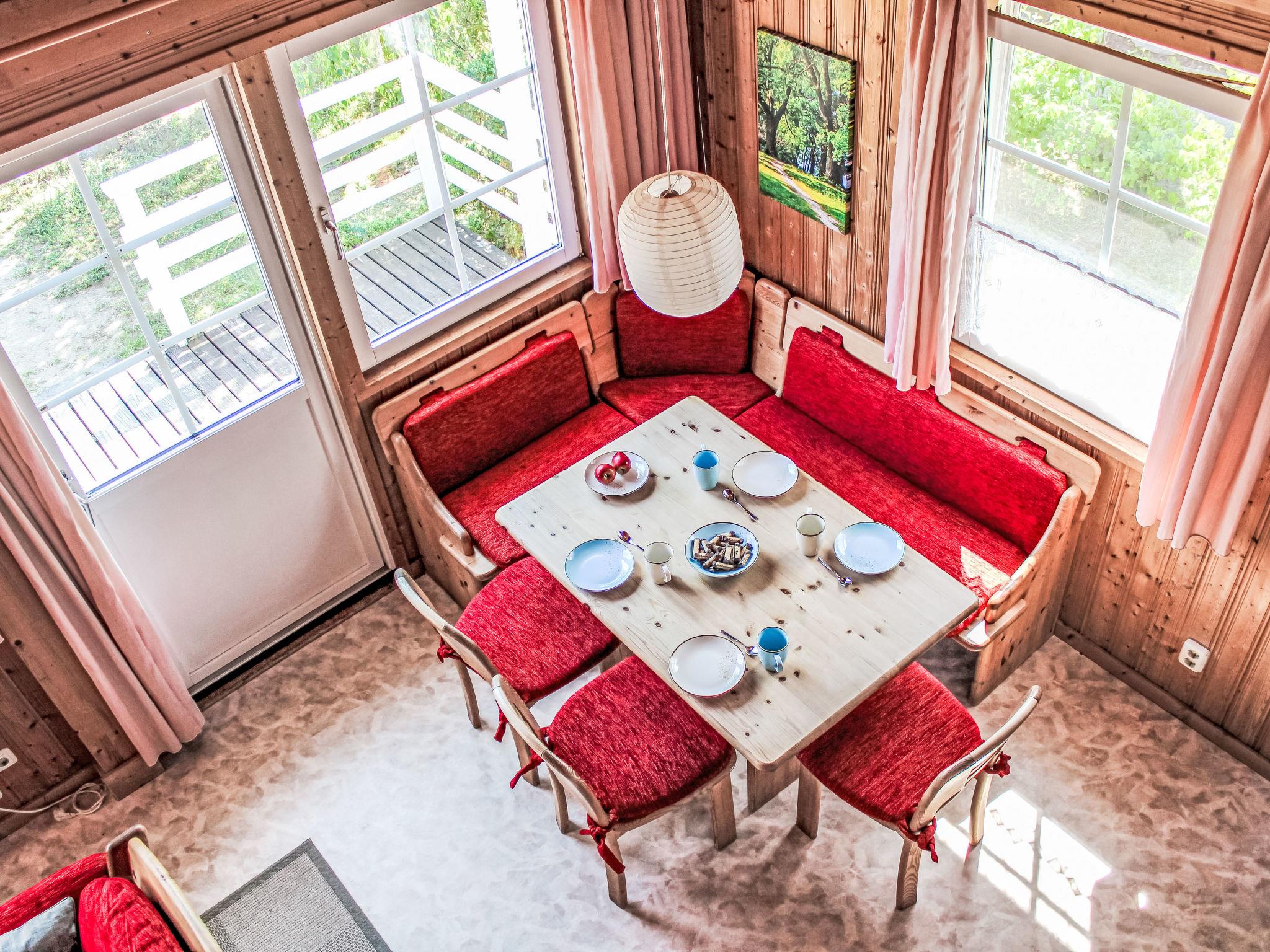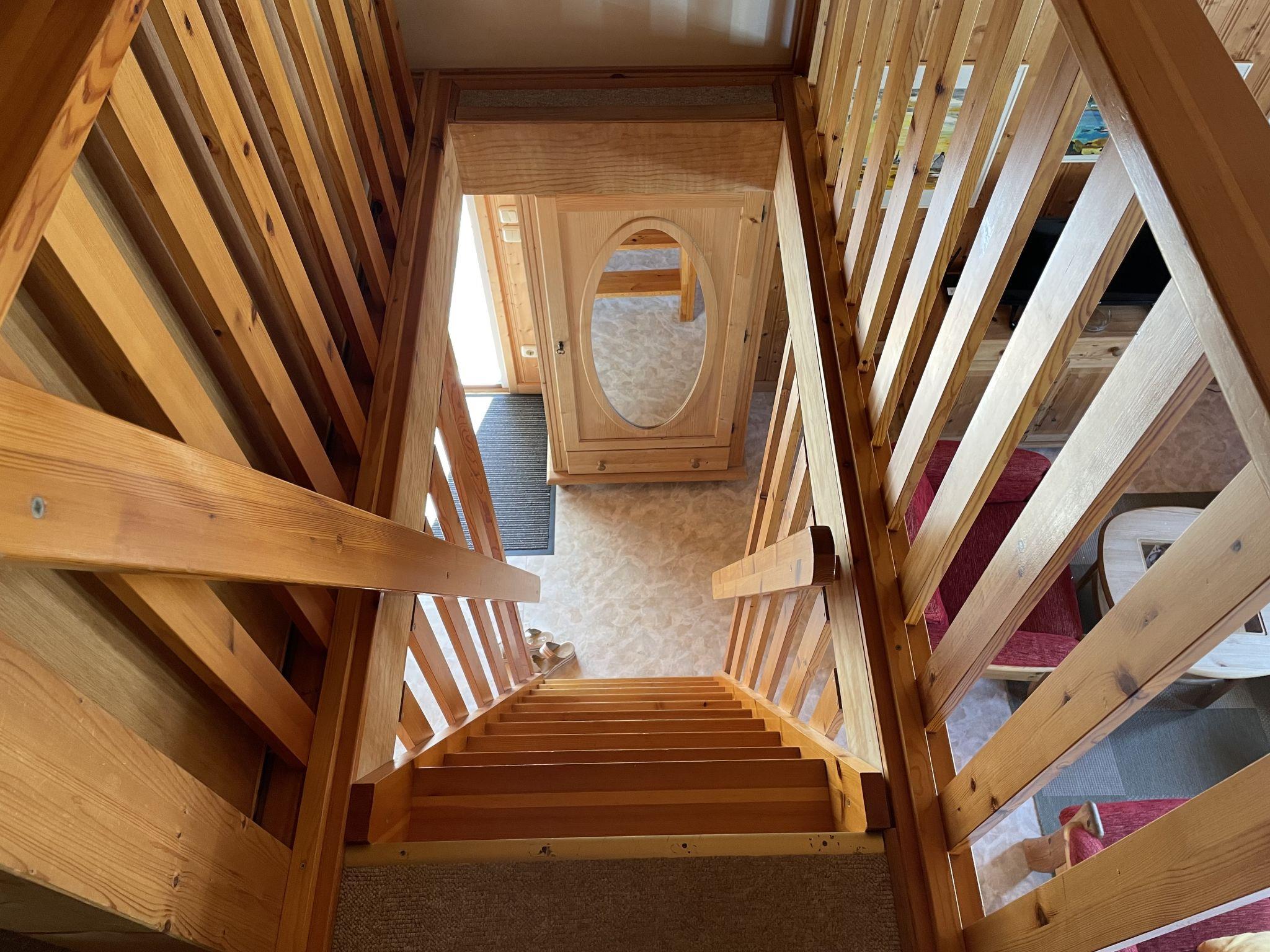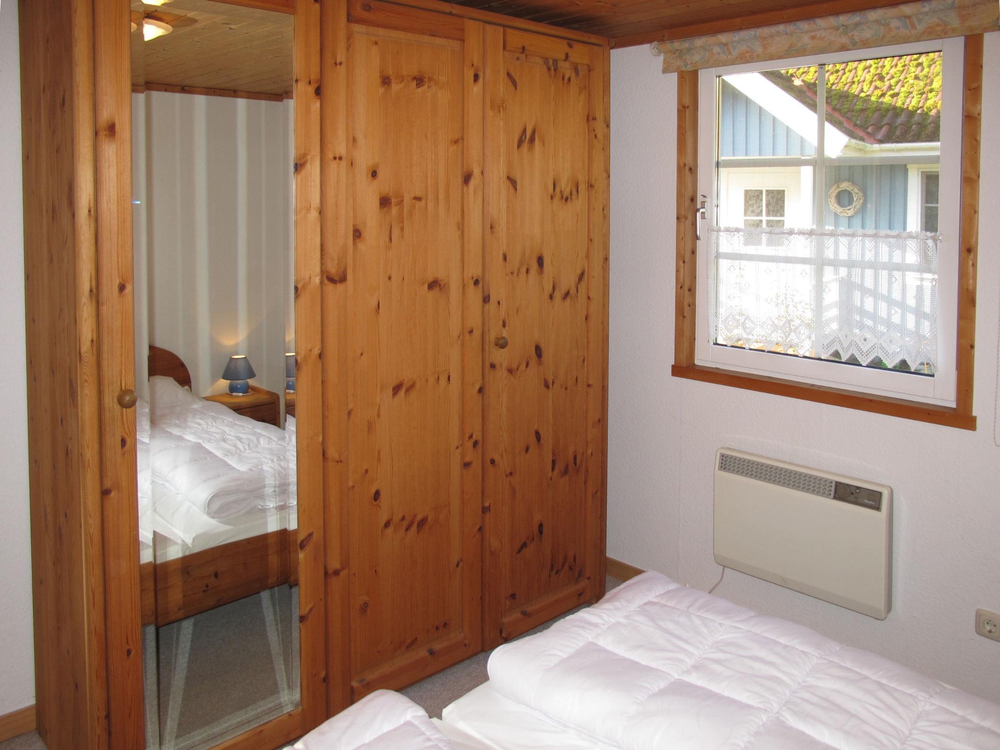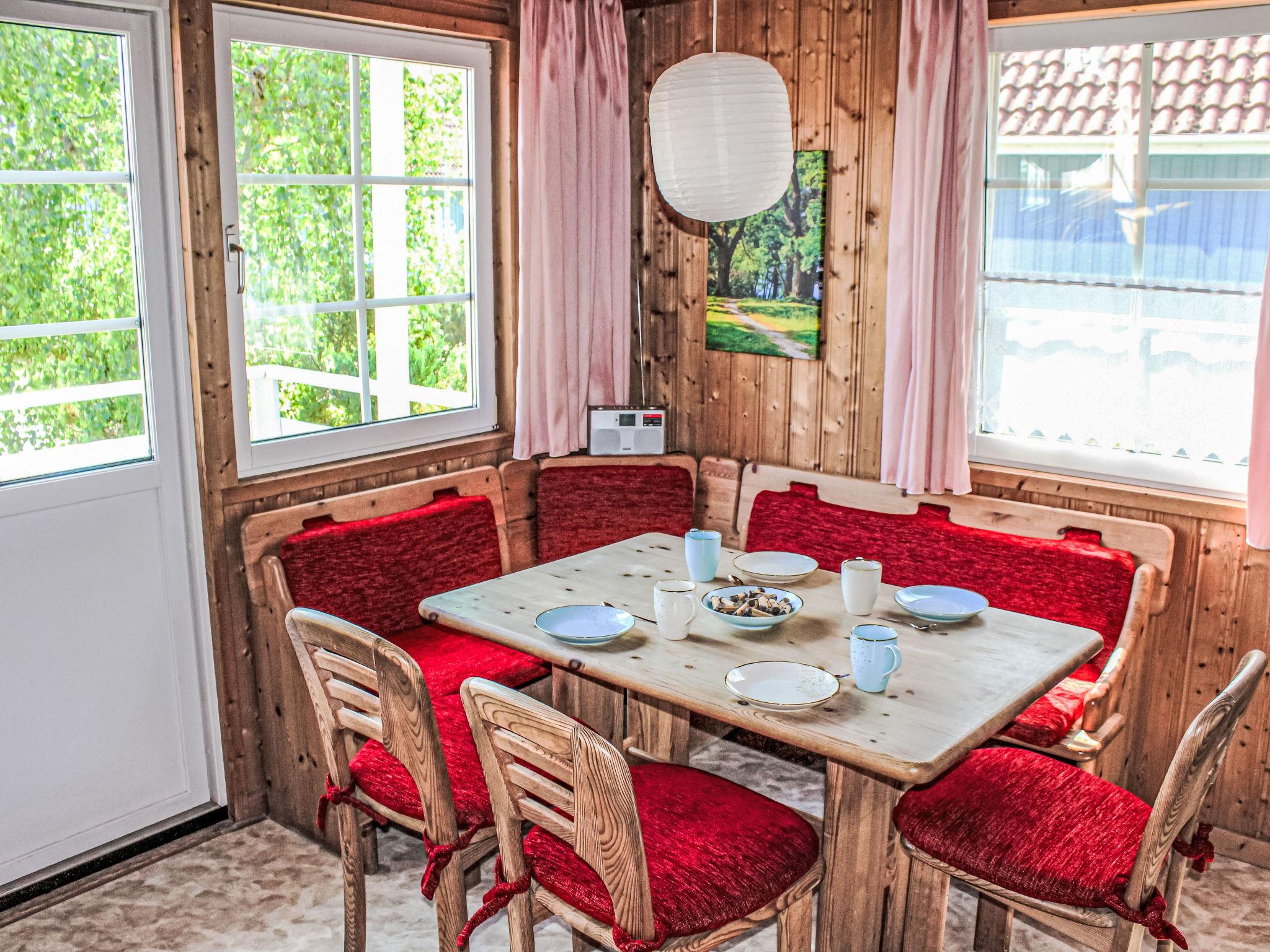 "Wald und See", 3-room house 65 m2 on 2 levels. Cosy and wooden furniture furnishings: living/dining room with satellite TV (flat screen). Exit to the terrace. 1 double bedroom. 1 room with 1 x 2 bunk beds. Kitchenette (oven, dishwasher, 4 ceramic glass hob hotplates, toaster, kettle, electric coffee machine). Shower/WC. Upper floor: (steep stair) open gallery with sloping ceilings with 2 beds. Electric heating. Carpet. Terrace partly roofed, lawn 200 m2. Terrace furniture. Facilities: children's high chair, baby cot (extra). Internet (WiFi, free). Please note: non-smoking house. Smoke alarm. Instead of an enclosed bedroom, some sleeping areas are located in an open-plan area (gallery, alcove, etc.).