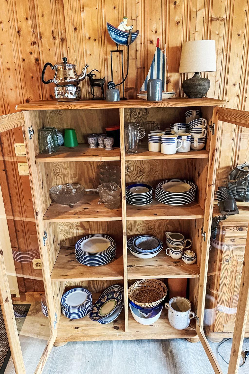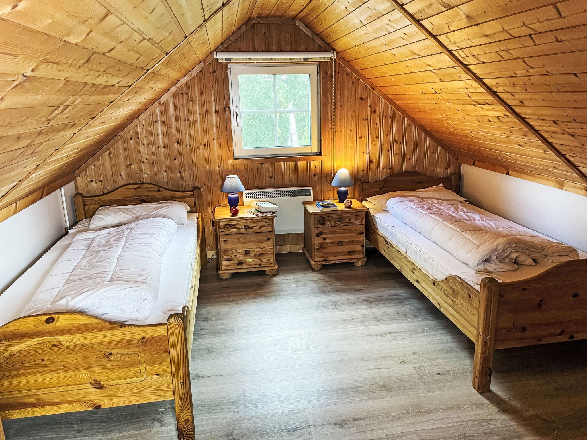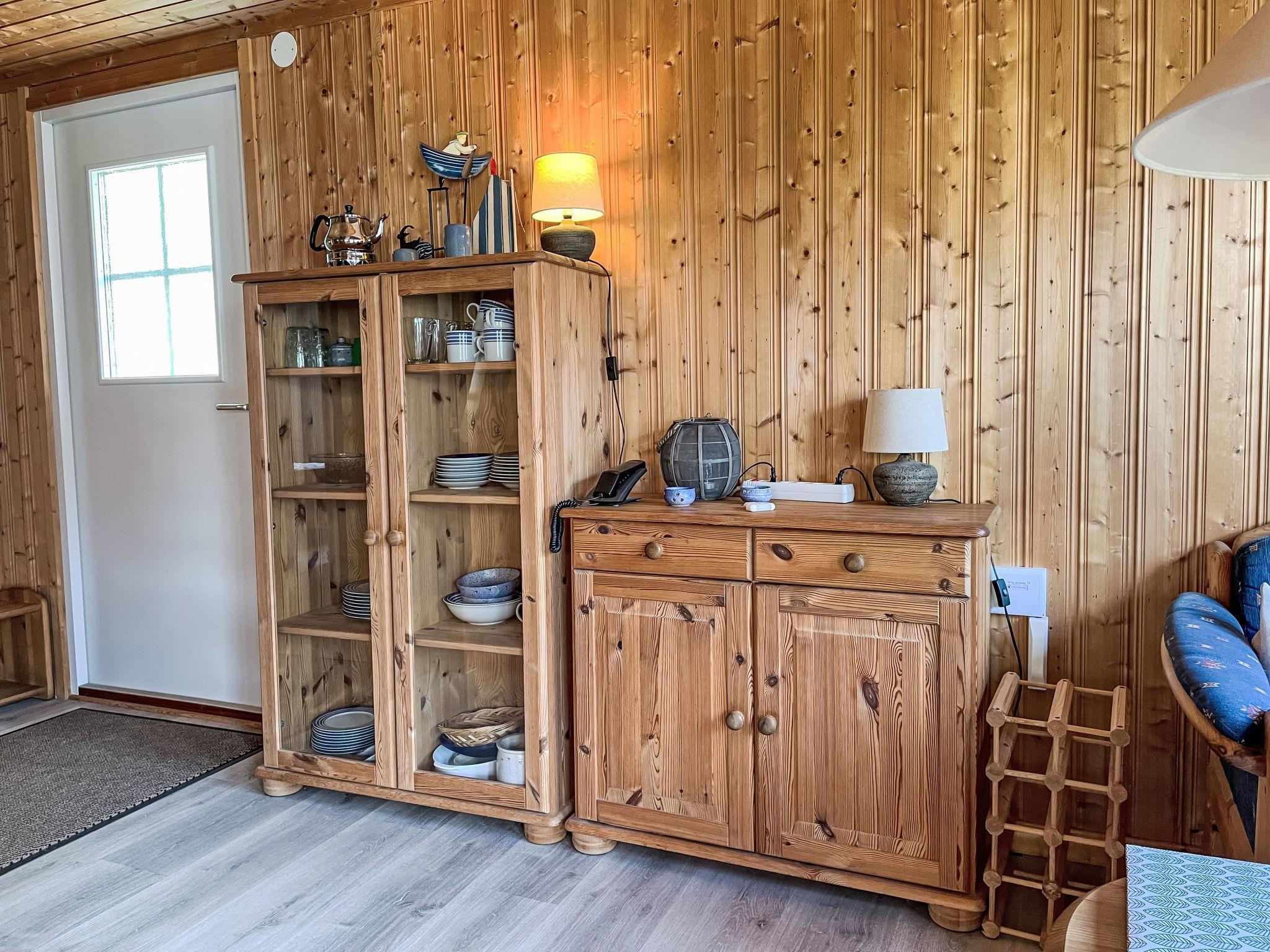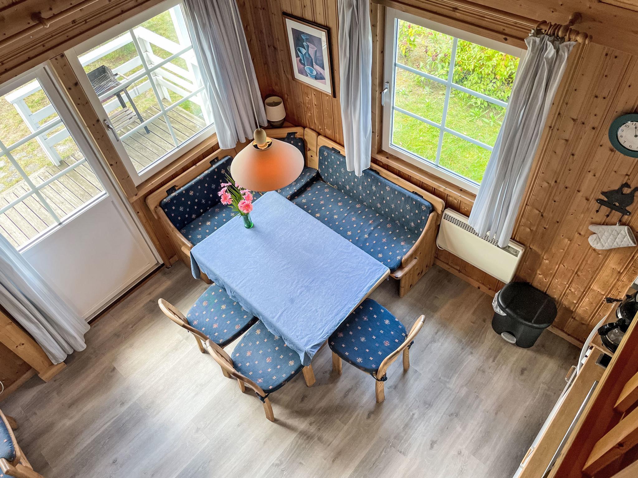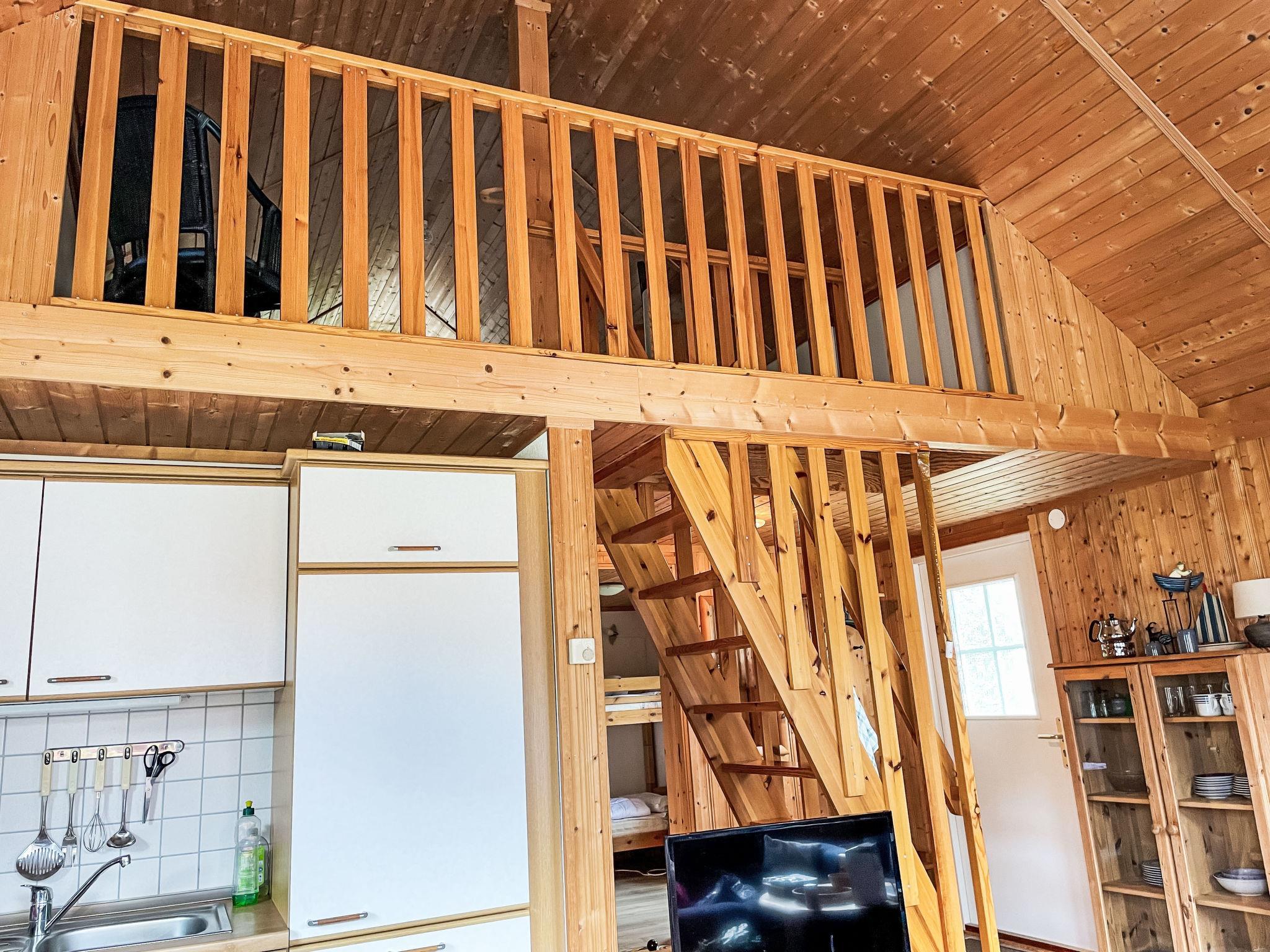 "Ritters Ferienhus", 3-room house 68 m2 on 2 levels. Cosy and wooden furniture furnishings: living/dining room with satellite TV (flat screen). Exit to the terrace. 1 double bedroom. 1 room with 1 x 2 bunk beds. Kitchenette (oven, dishwasher, 4 ceramic glass hob hotplates, toaster, kettle, freezer, electric coffee machine). Shower/WC. Upper floor: (steep stair) open gallery with sloping ceilings with 2 beds, satellite TV and fan. Electric heating. Small terrace 12 m2 partly roofed, garden 100 m2, lawn. Terrace furniture, deck chairs (2). Facilities: washing machine, iron, children's high chair, baby cot (extra), hair dryer. Internet (WiFi, free). Parking space n 21 (1 car). Please note: non-smoking house. Smoke alarm. Instead of an enclosed bedroom, some sleeping areas are located in an open-plan area (gallery, alcove, etc.). Bookings accepted for holiday purposes only.