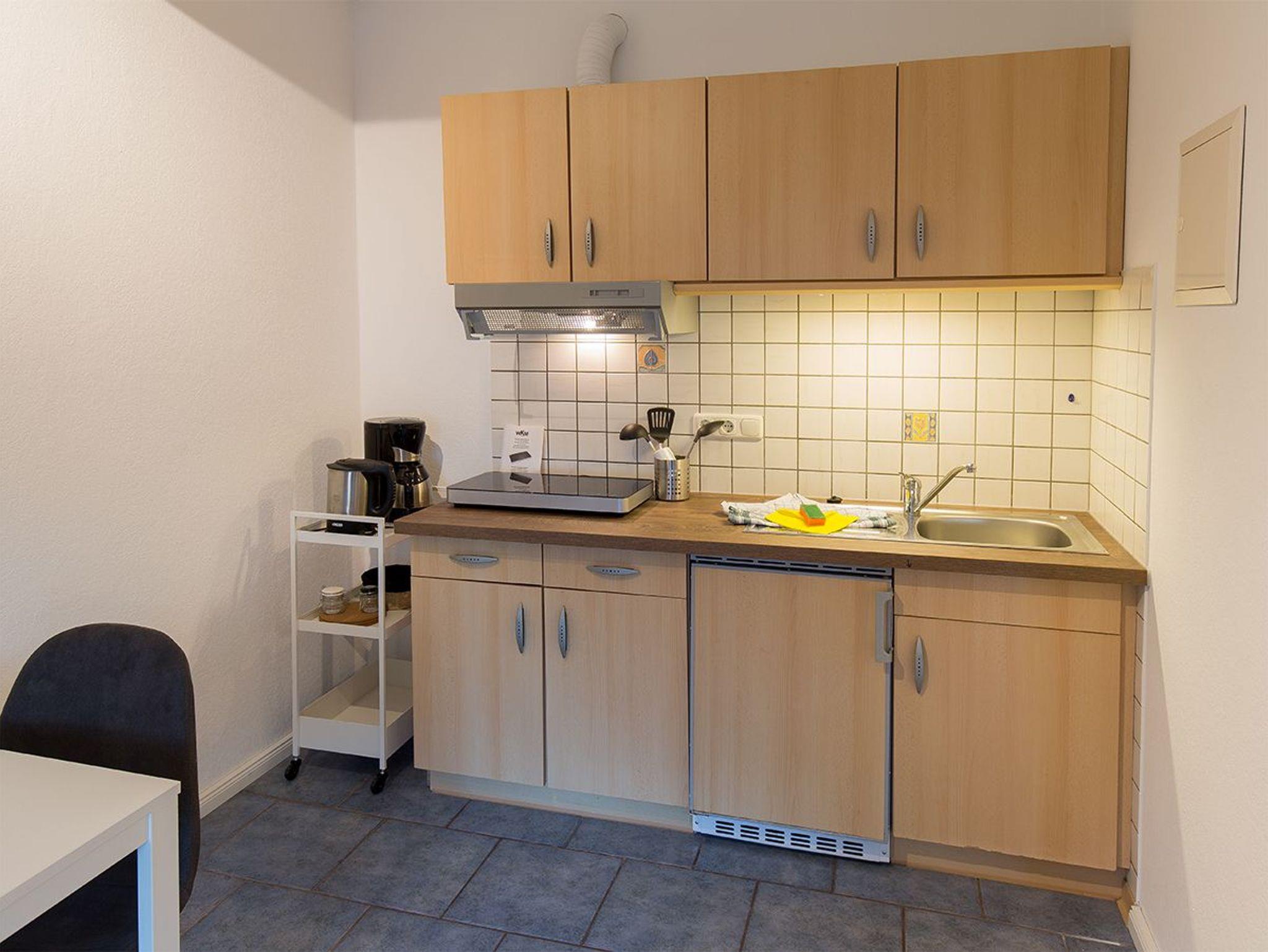 Geräumiges Apartment für zwei Personen im Herzen von Dangast in der Sielstraße. Sie biegen hinter dem Franz-Radziwill-Haus rechts ab und fahren noch ein paar Meter einen Weg lang, der Sie zur ruhig gelegenen und gut sichtgeschützten Apartmentanlage führt. Noch fünf weitere kleine Apartments und ein großer Loft stehen zur Vermietung in dieser Ferienanlage bereit - Ausgestattet mit Doppelbett, Dusche/WC, Sitzbereich und einer gut ausgestatteten kleinen, aber feinen Küchenzeile. Draußen stehen für alle sechs kleinen Wohneinheiten eigene Terrassen zur Verfügung sowie Parkplatz, Außengrill und Fahrradständer.