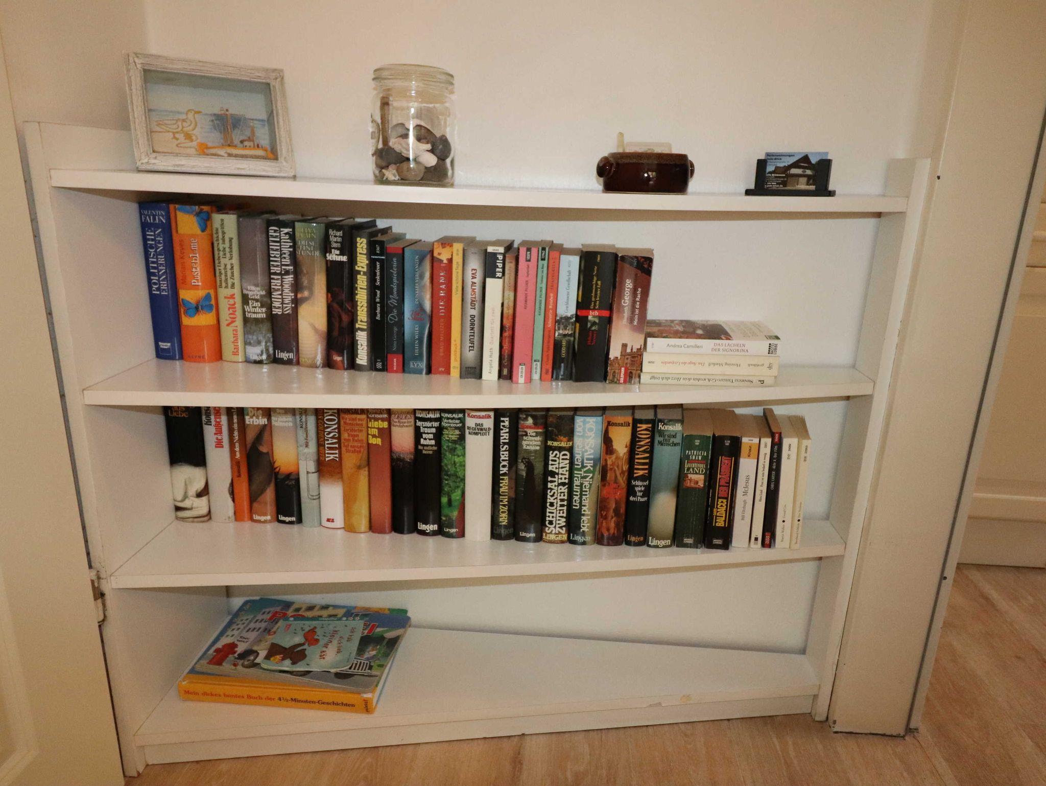 Im Erdgeschoss unseres Hauses vermieten wir zwei Ferienwohnungen, jeweils ca. 50m² groß. Unsere Wohnung im Erdgeschoss links verfügt über eine moderne technische Ausstattung, neben einem Radio mit CD-Laufwerk steht Ihnen ein moderner Flachbildfernseher mit Satellitenempfang zur Verfügung. Die voll ausgestattete Küche bietet neben einer Mikrowelle, einem Kühlschrank und einer Kaffeemaschine auch einen Geschirrspüler, so dass Sie in Ihrem Urlaub auf keinen Komfort verzichten müssen. Die Wohnung ist barrierefrei, wenn auch nicht behindertengerecht ausgestattet -bei Fragen sprechen Sie uns gerne an! Für weitere Gäste lässt sich das Sofa im Wohnzimmer zu einem vollwertigen Doppelbett ausklappen, so dass insgesamt bis zu vier Personen in unserer Parterrewohnung Platz finden. Darüber hinus verfügt die Wohnung über eine großzügige Südterasse, ausgestattet mit entsprechender Möblierung inklusive eines Strandkorbes. In der Wohnung gibt es neben dem Wohn-/Esszimmer eine separate Küche sowie ein Schlafzimmer mit Doppelbett und ein Duschbadezimmer.