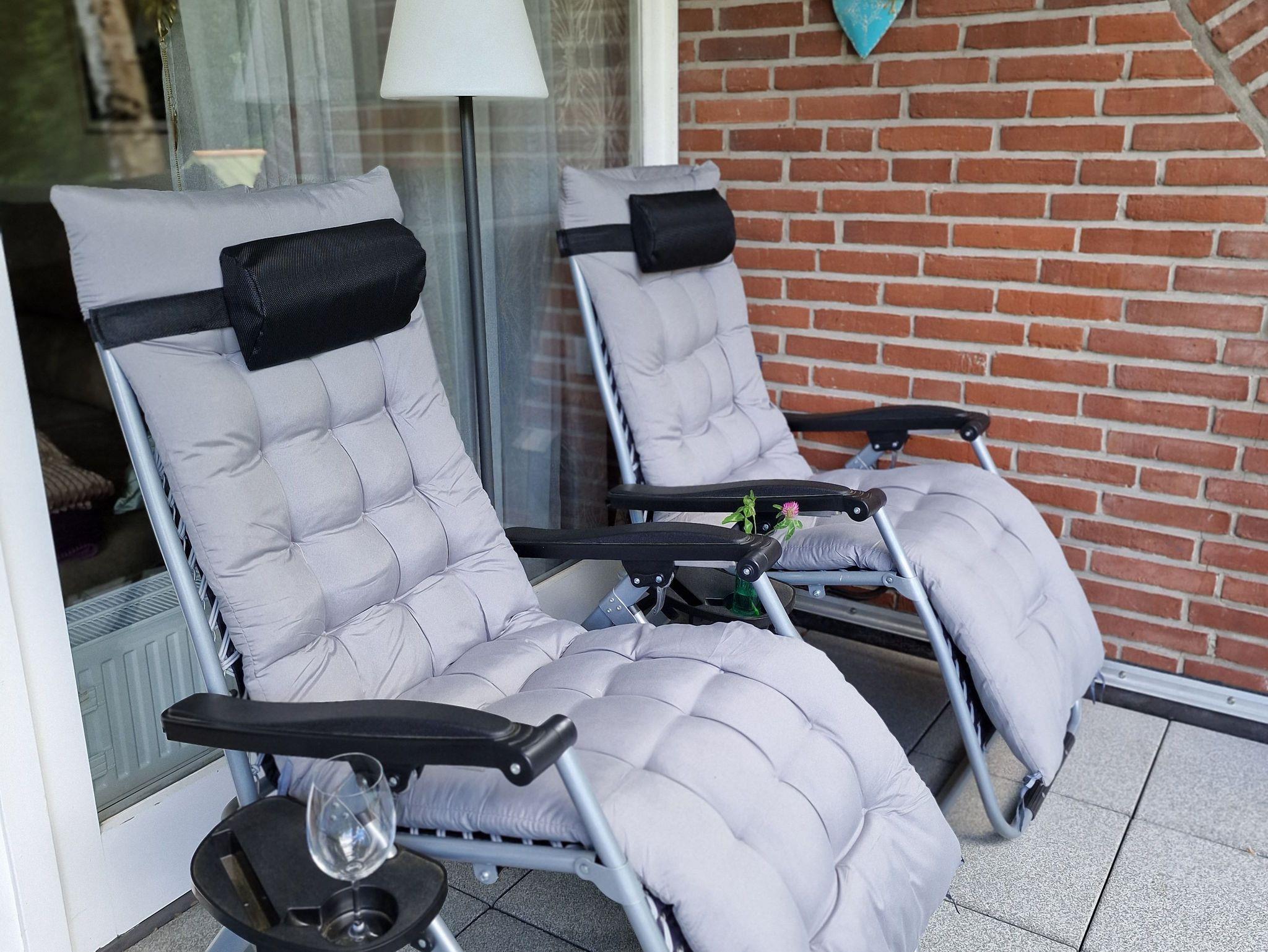 Ausstattung Außen: sonnige, überdachte Loggia (Südausrichtung), Esstisch mit 2 Gartenstühlen, 2 Relaxliegen, toller, ruhiger Gartenblick