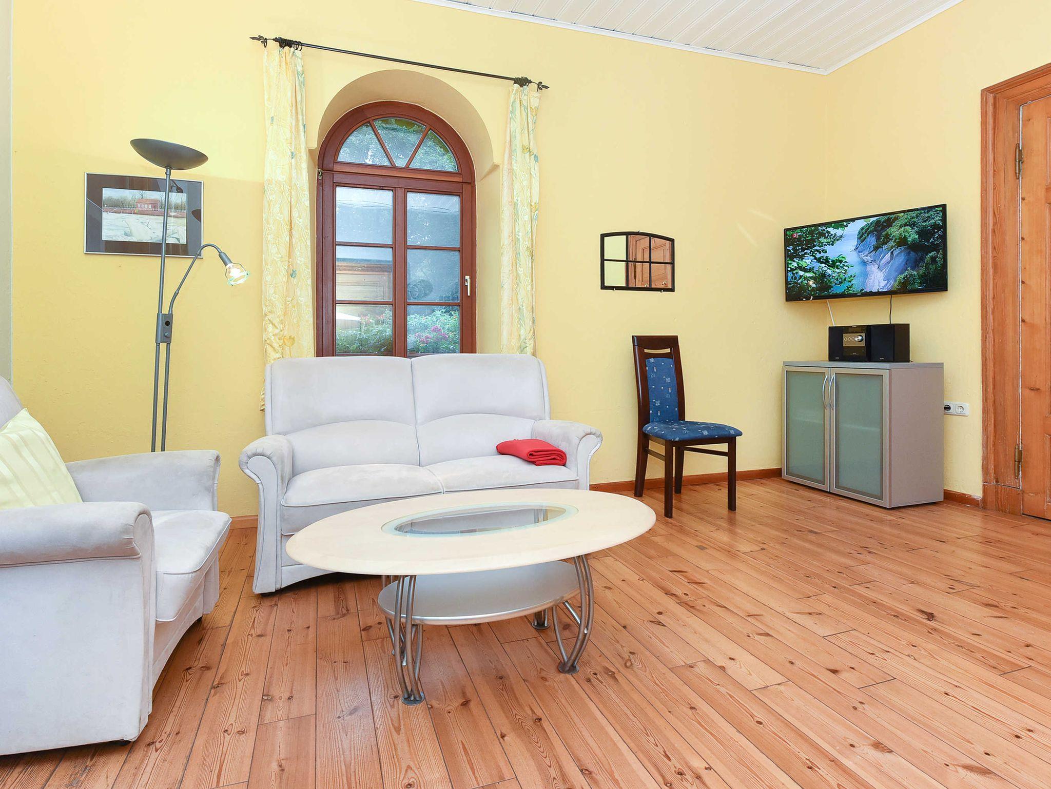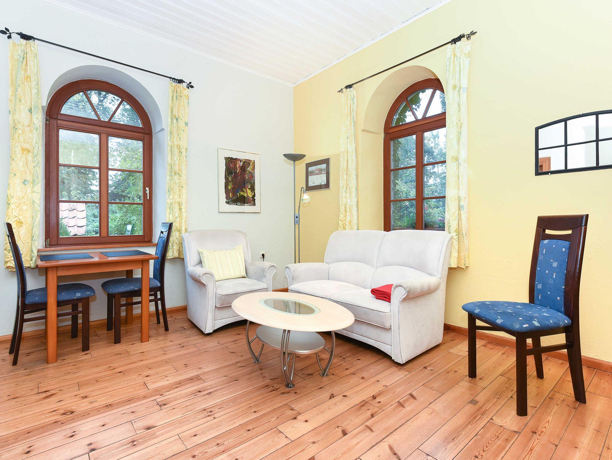 Wohnraum mit integrierter Küche, Schlafzimmer, Badezimmer mit Dusche, Waschtisch und WC, Erdgeschoss, Internetzugang über WLAN möglich, optimal für 2 Personen.
