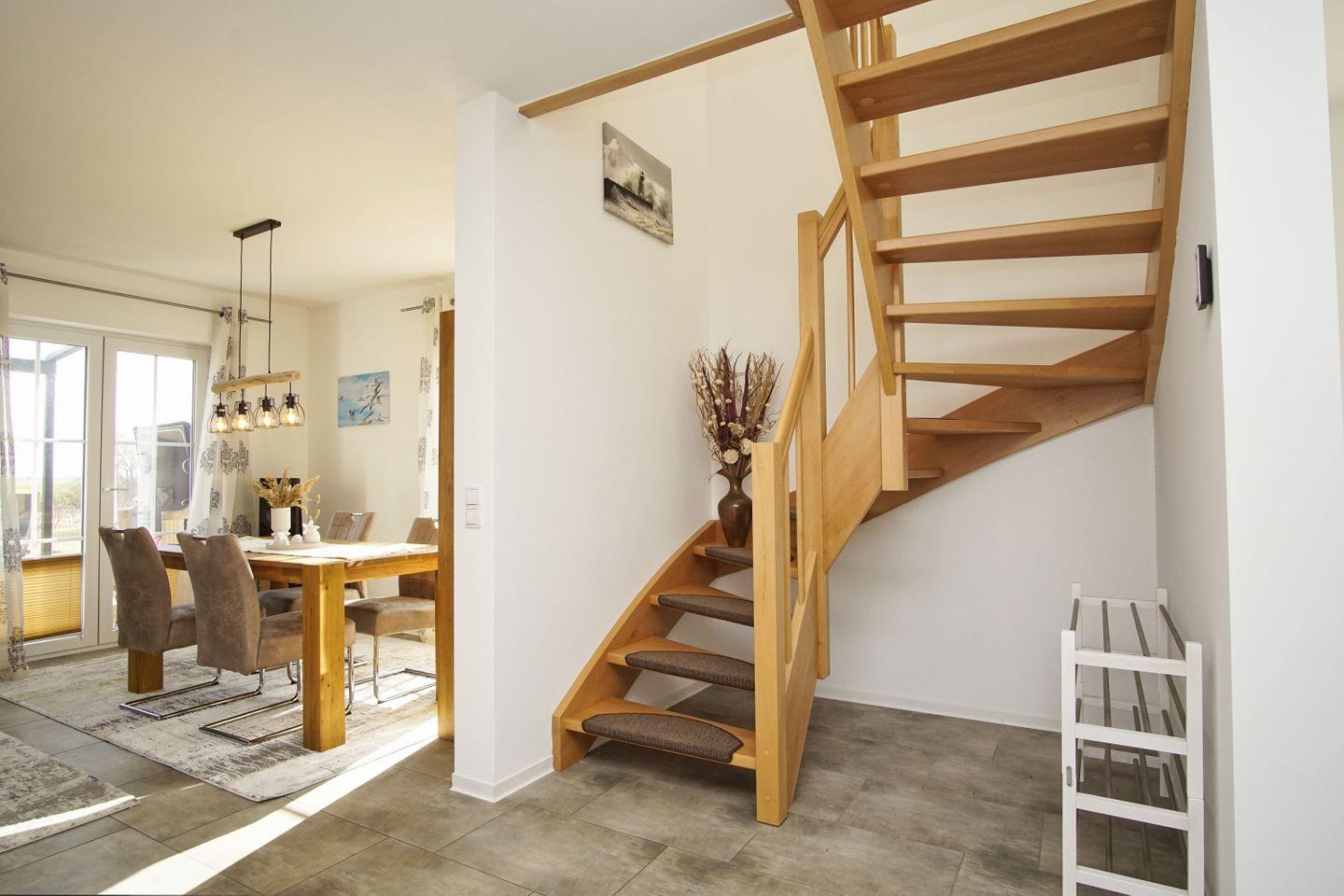 Das moderne Ferienhaus Linea erstreckt sich über zwei Etagen und bietet mit 110 m² ausreichend Platz für bis zu 6 Personen sowie einen vierbeinigen Freund. Der private Garten ist komplett eingezäunt, was Ihren Aufenthalt auf Rügen in einer idyllischen und ruhigen Umgebung perfekt macht.