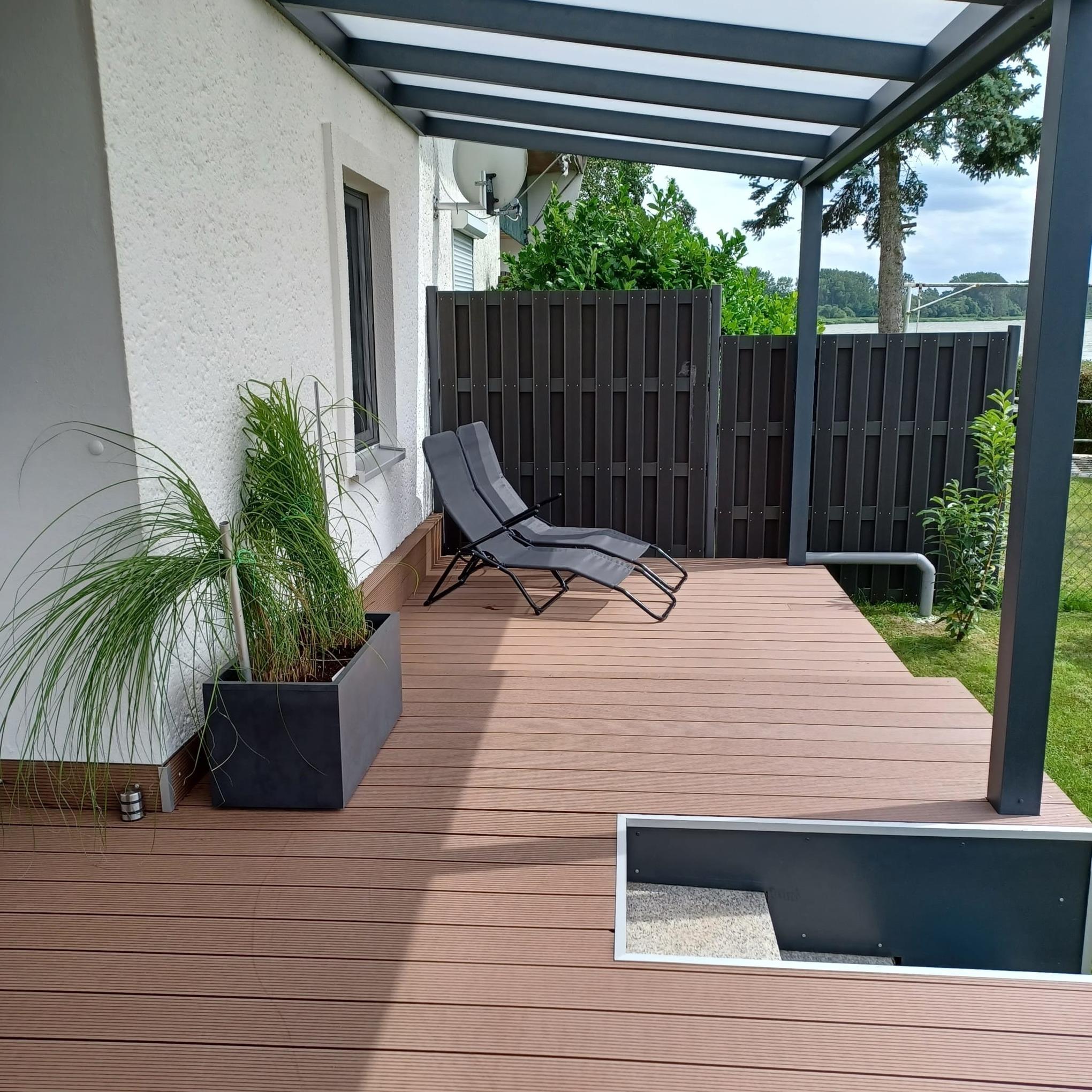 Auf der Terrasse können Sie in bequemen Stühlen an einemTisch verweilen und den wundervollen Blick auf den See genießen, aber auch wunderschöne Sonnenuntergänge bei einem Glas Wein bewundern. Zum relaxen und Seele baumeln lassen haben Sie hier Ihre eigenen Relax-Liegen.