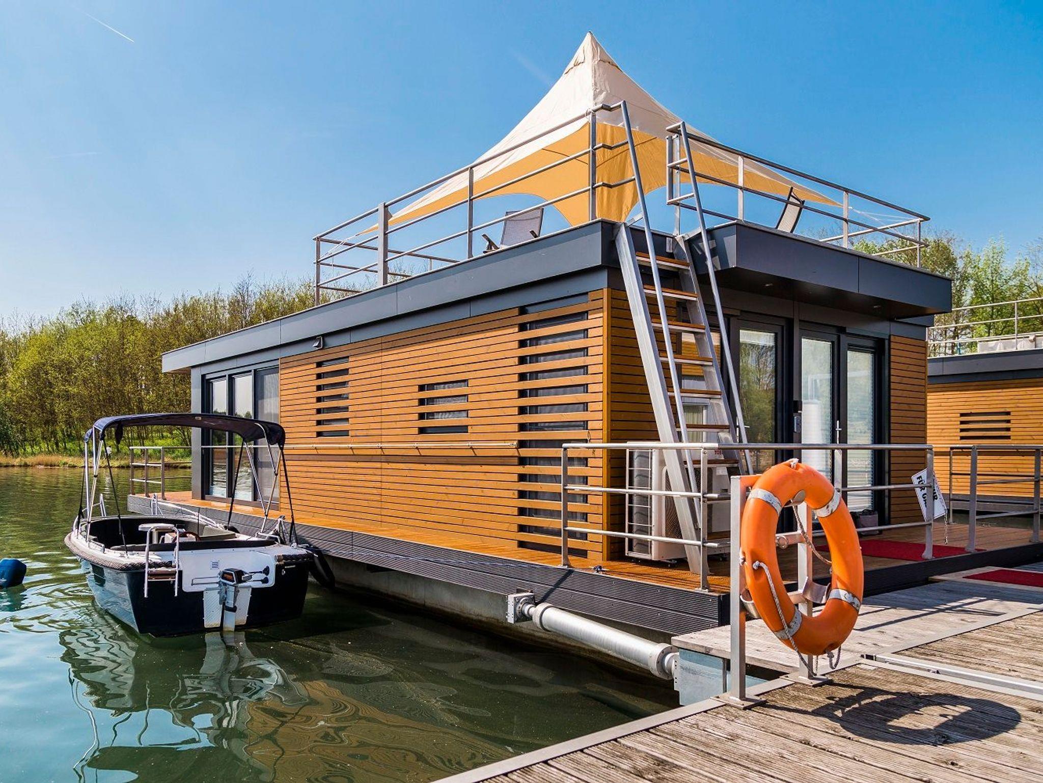 Die schwimmenden Ferienhäuser sind fest am Steg verankert und auf schwimmenden Betonkörpern gebaut. Im Inneren erwarten die Gäste modern eingerichtete, individuelle Wohnräume mit Liebe zum Detail.