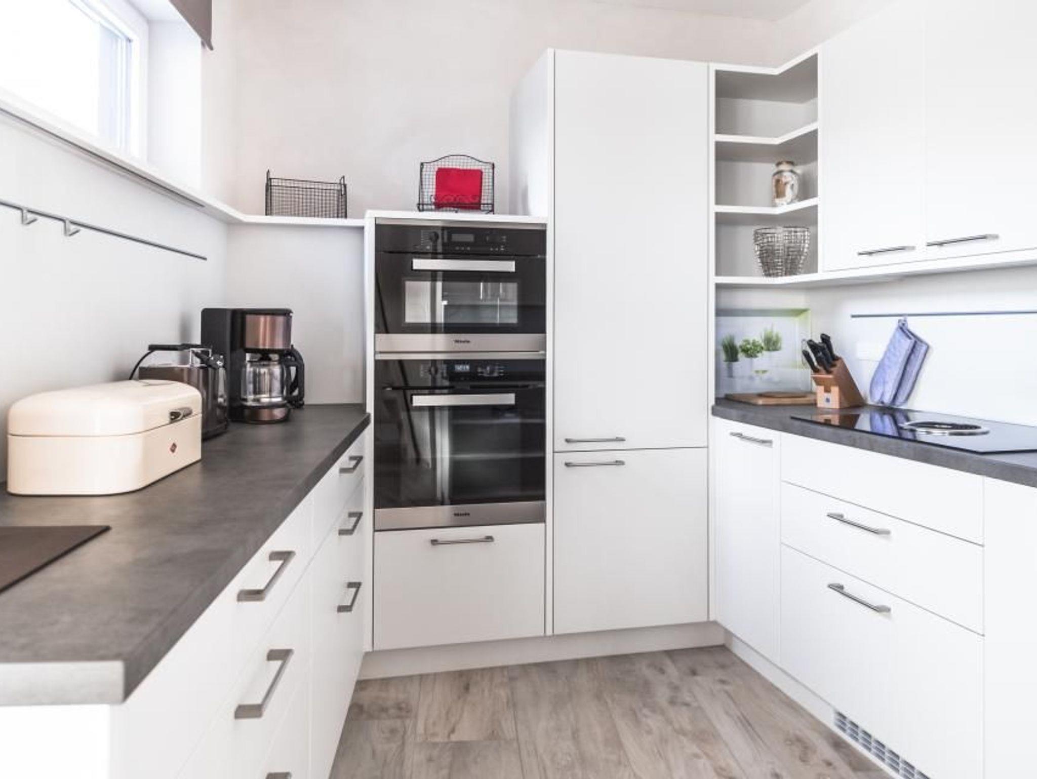 Die 116 m² Nutzfläche mit einer modernen Heizungs-/Klima-Technik sowie einem Pellet-Kamin ausgestattet ist an kalten und heißen Tagen immer angenehm. Viel schöner ist es jedoch, Sonne, Wasser und leichten Wind auf der Umlauffläche von ca. 45 m² zu genießen. Die Möwe1 verfügen über ein hochwertiges, gefliestes Badezimmer mit WC, Waschtisch und großer Badewanne, ein Doppelbett und einen Schlafsofa im Obergeschoss sowie ein separates Bad mit WC, Waschtisch und begehbarer Dusche und ein Doppelbett im Erdgeschoss. Die hochwertig eingerichtete Profi-Küche und die exklusive Multimedia-Ausstattung mit mehreren großen Ultra-HD Displays und Sound-System der Oberklasse lassen keine Wünsche offen. Ein High-Speed Internetzugang mit WLAN-Zugang steht selbstverständlich ohne Einschränkungen zur Verfügung.