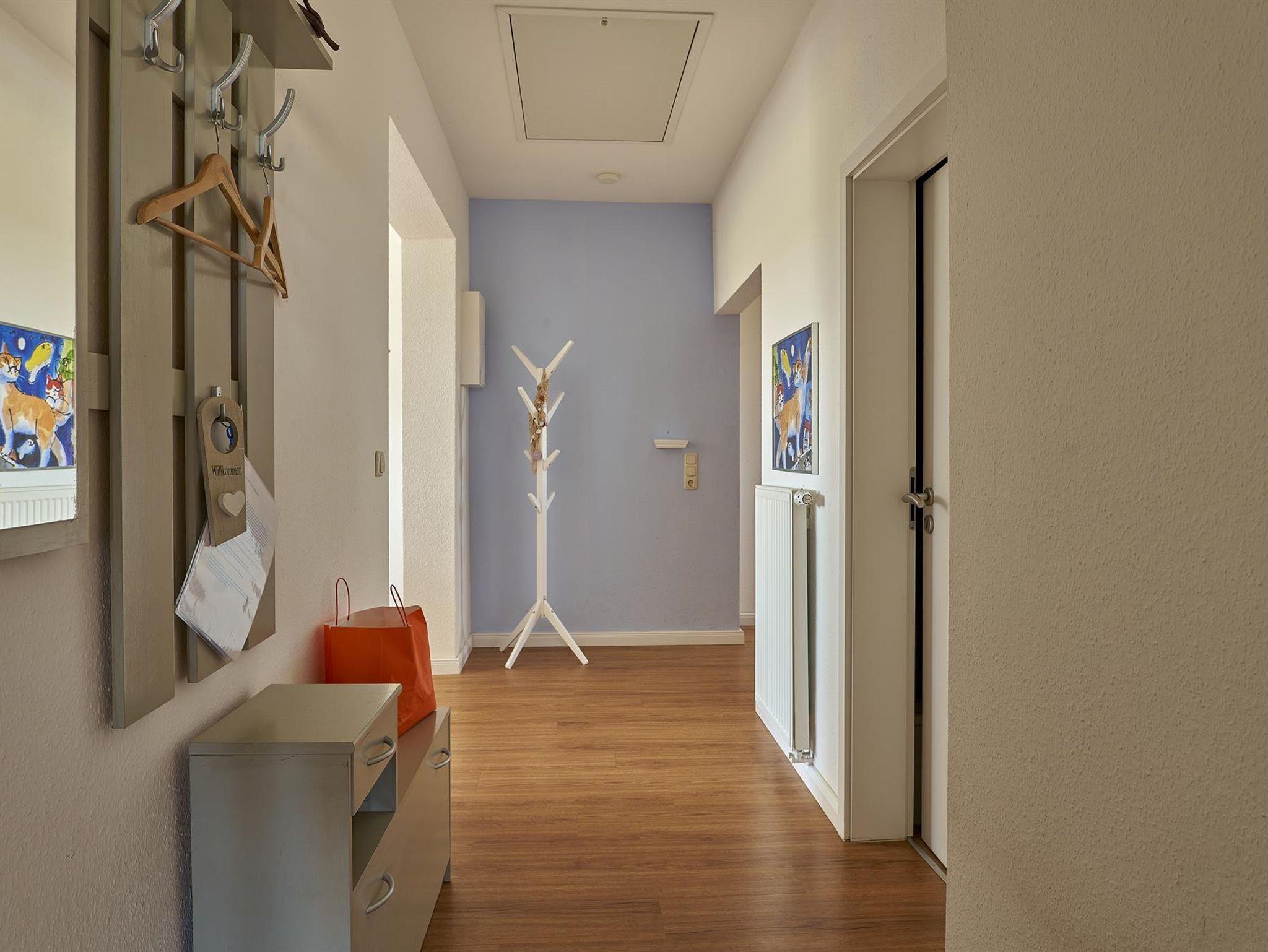 Die Wohnung ist 88qm groß und ist aufgeteilt in ein Schlafzimmer mit Doppelbett (1,80 x2,00m),