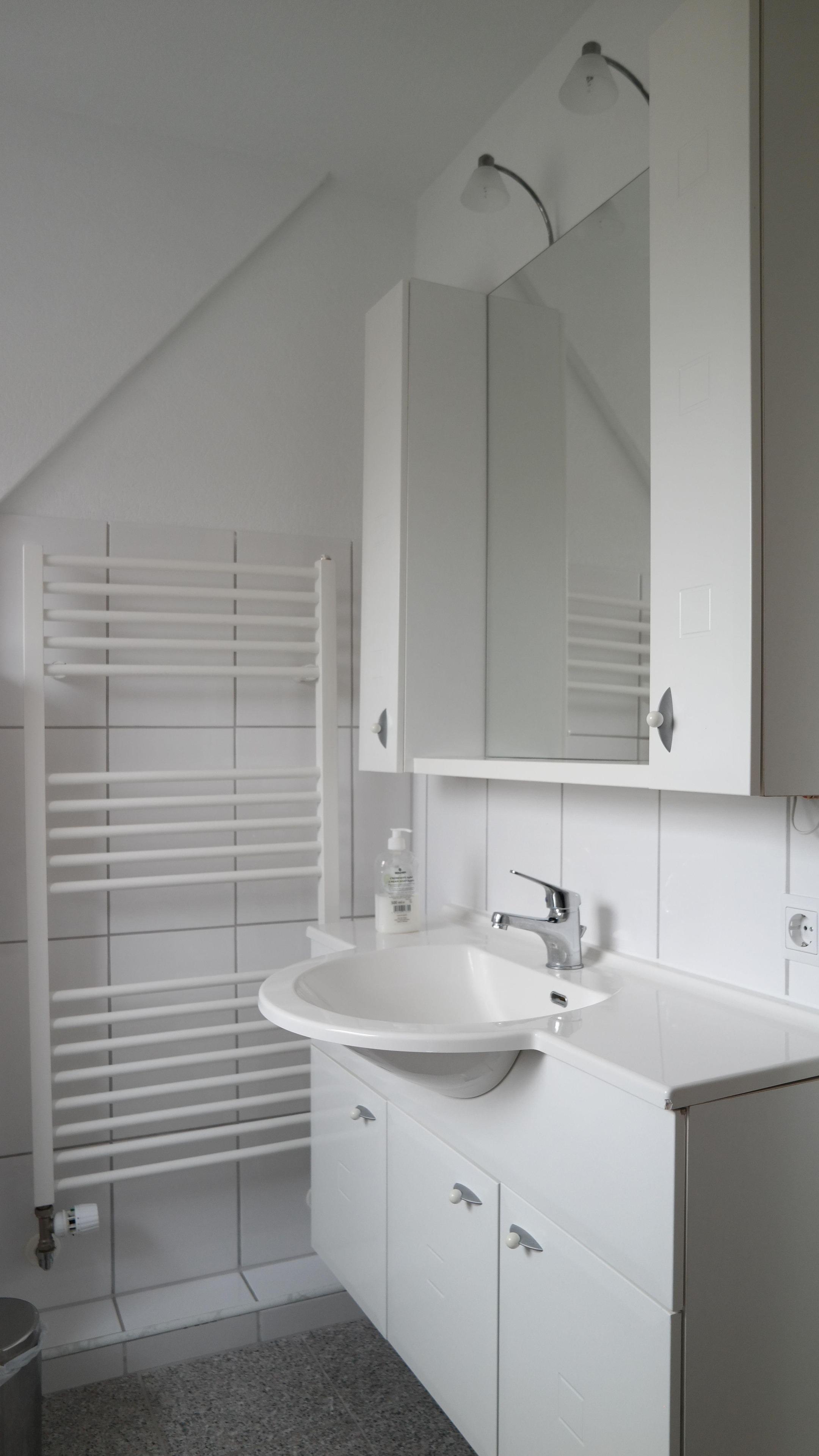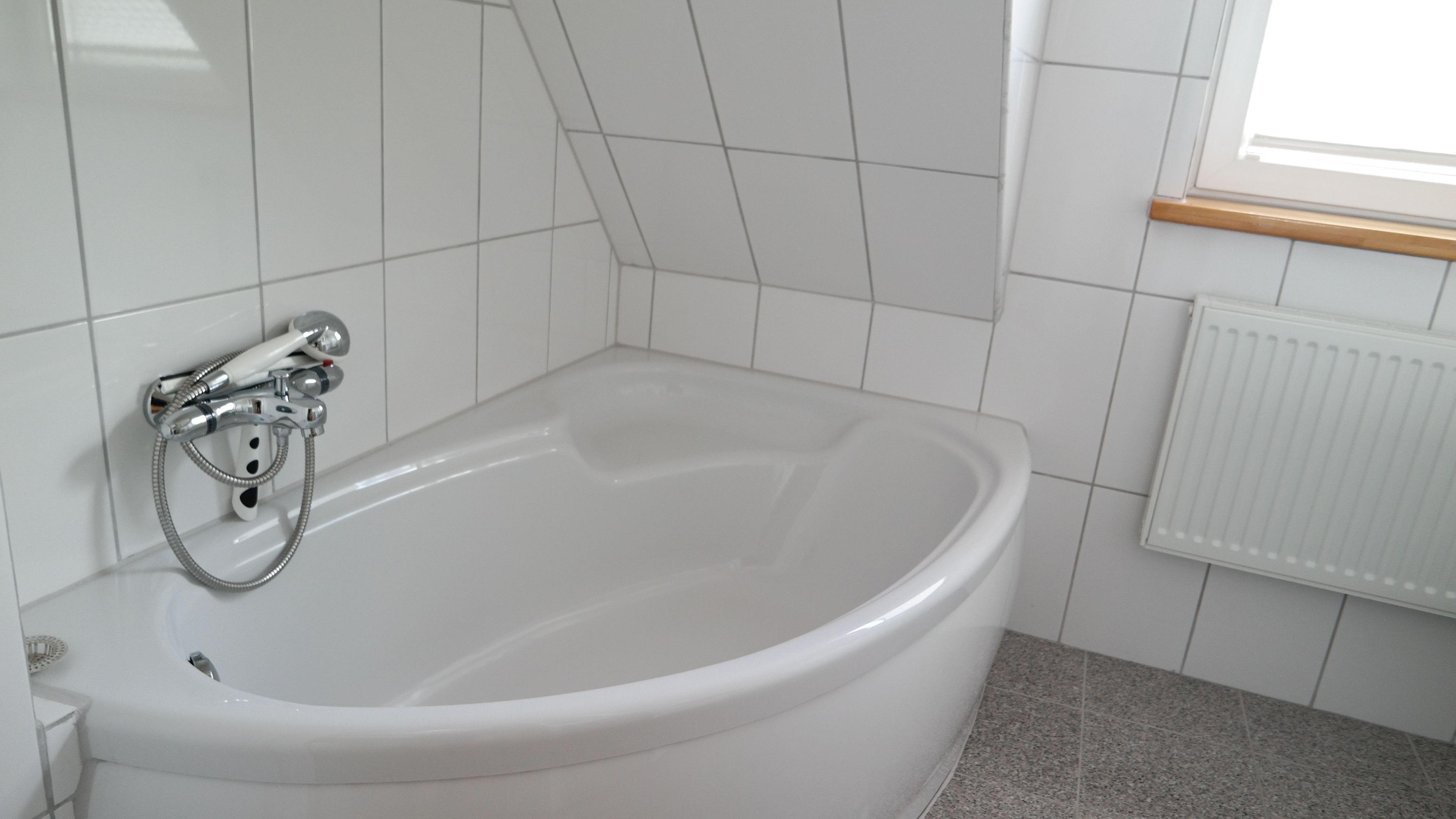 Bad 1: Badewanne, WC , moderner Badblock, w/k, Handtuchwärmer, Handtuchwärmer