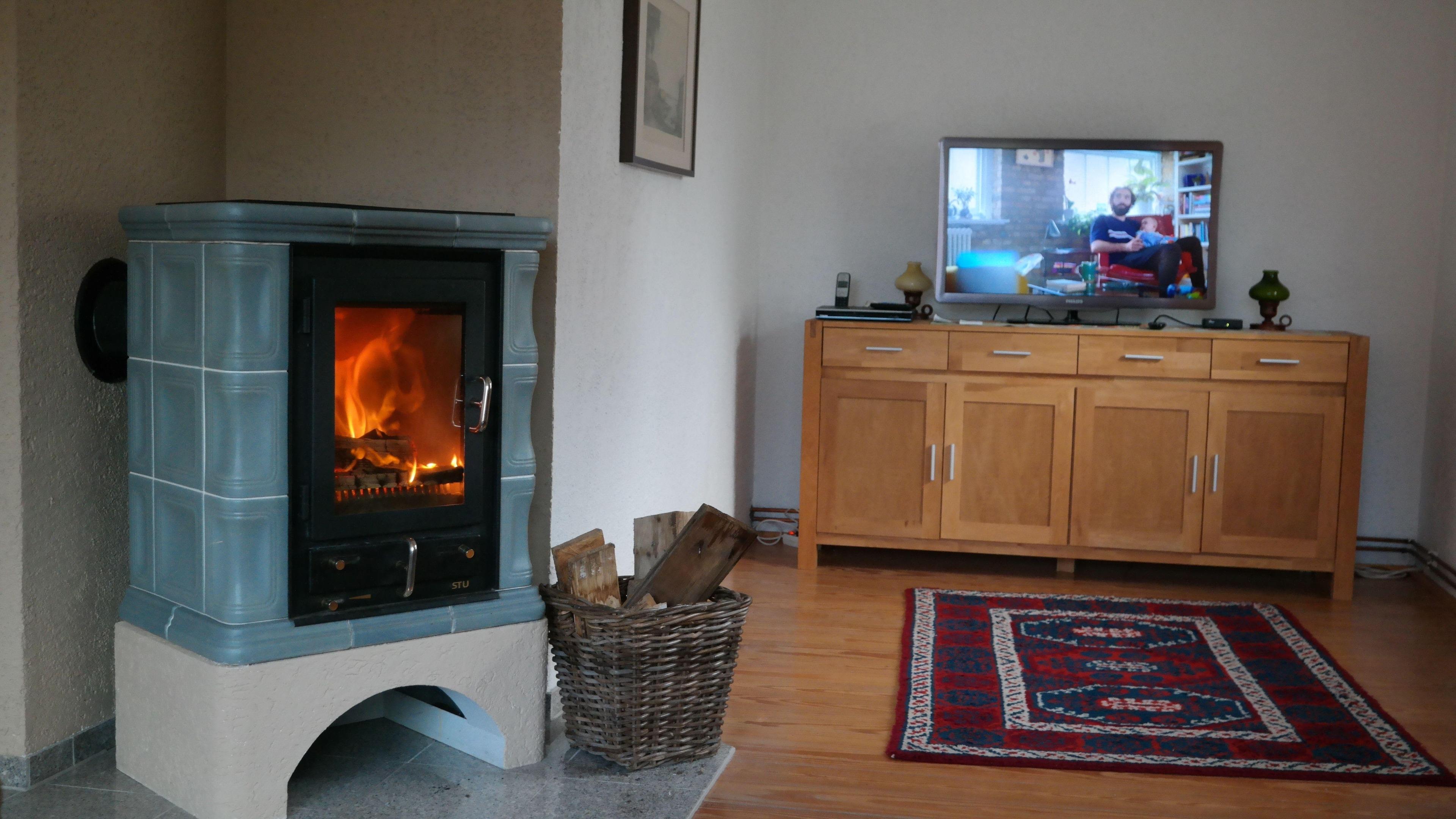 Wohnzimmer: gemütlich eingerichtetes Wohnzimmer mit Kaminofen,