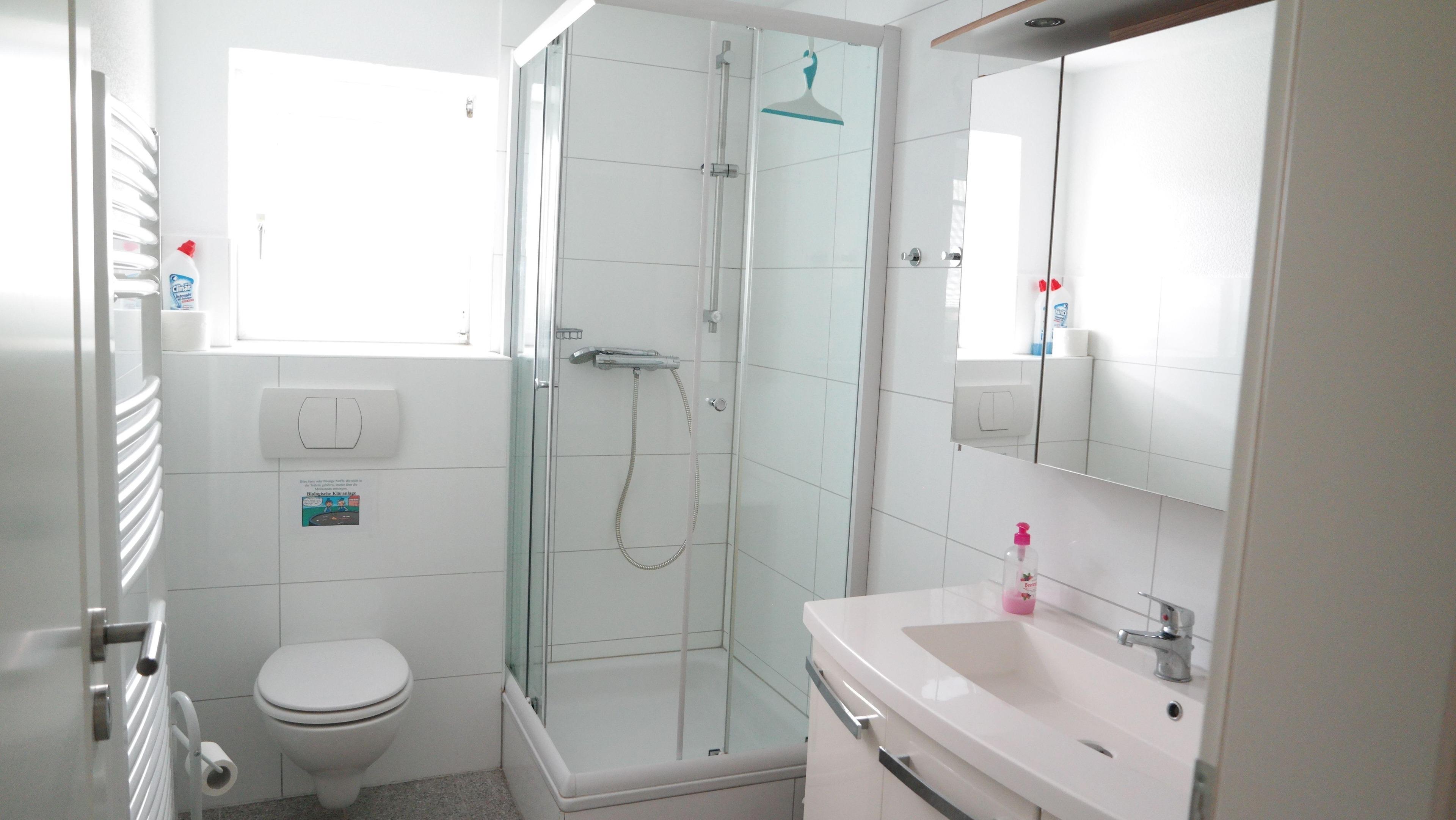 Bad 2: Dusche, WC, moderner Badblock, w/k, Fußbodenheizung, Handtuchwärmer
