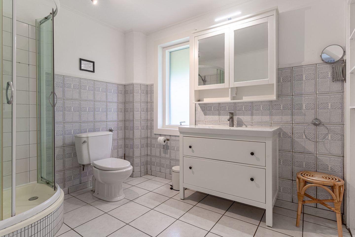 Das Elternschlafzimmer ist elegant eingerichtet und mit einem komfortablen 180 x 2m Doppelbett, einem geräumigen Schrank und einer Kommode ausgestattet. Von hier aus haben Sie direkten Zugang zum großzügigen Badezimmer. Das Badezimmer verfügt über eine moderne Dusche und einen großzügigen Waschtisch mit einem Fön für Ihre Bequemlichkeit.