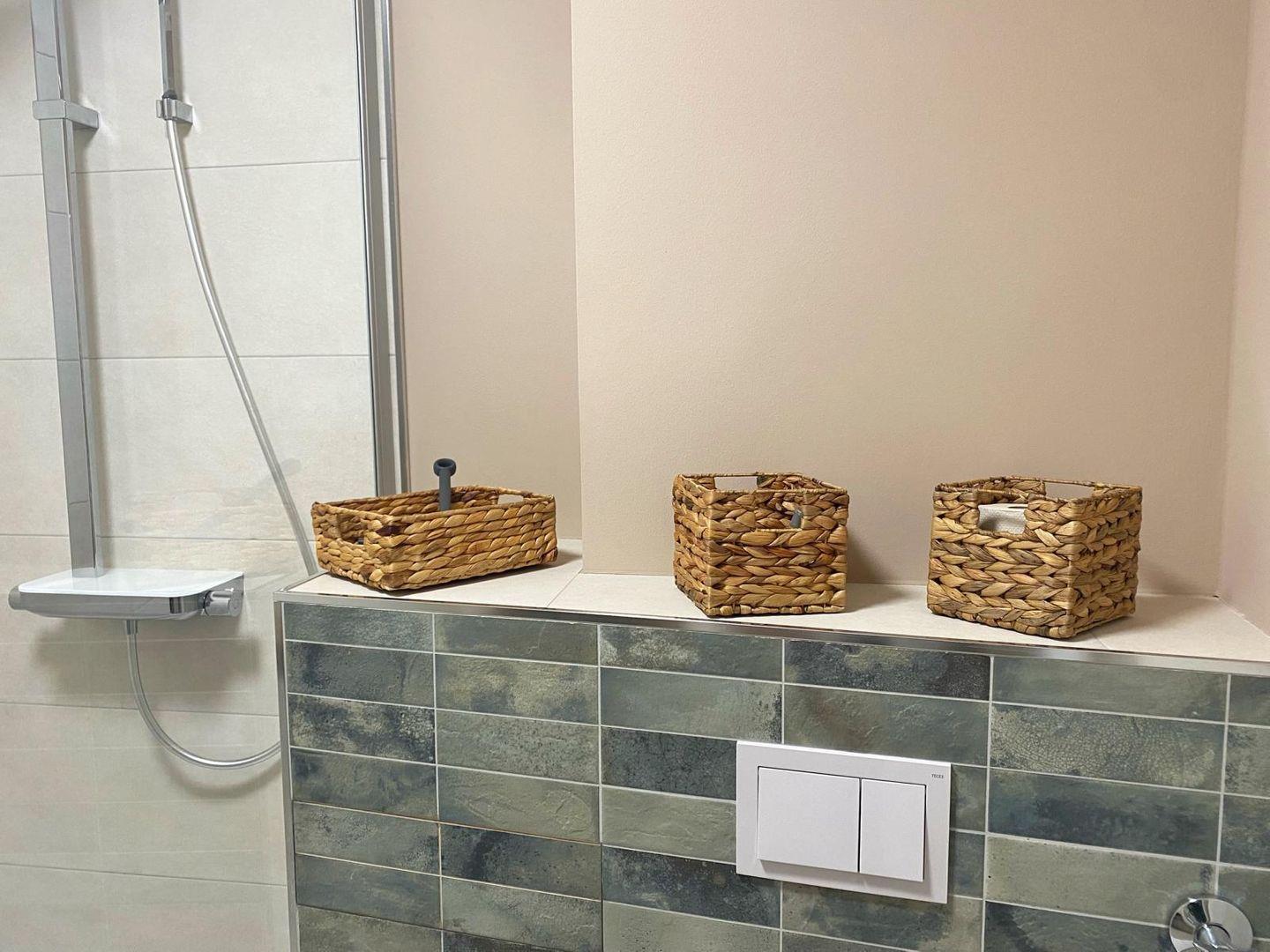 Im Wohnbereich gibt es eine Schlafcouch für 2 Personen. Das Schlafzimmer bietet ein Doppelbett. Im Bad mit Dusche steht den Gästen eine Waschmaschine zur Verfügung. Zur Wohnung im Erdgeschoß gehört eine Terrasse mit Gartenmöbeln und Liegestühlen.