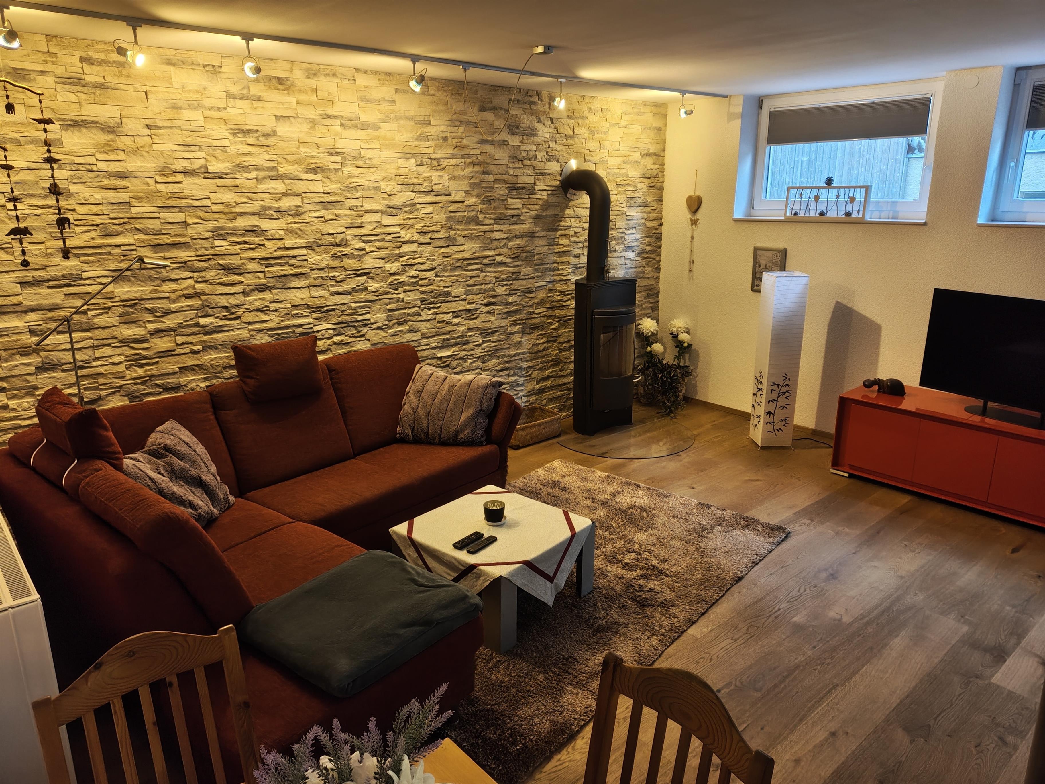 Willkommen im Haus Königer Lindenbronn! Unsere gemütliche Ferienwohnung bietet Platz für bis zu 4 Personen und verfügt über ein Schlafzimmer, ein Wohnzimmer mit Kamin, eine voll ausgestattete Küche und ein modernes Bad. Genießen Sie die ruhige Lage in Wäschenbeuren und lassen Sie die Seele baumeln.