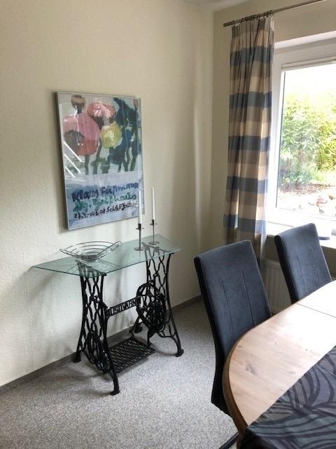 Gemütliche und ruhige Ferienwohnung im Souterrain (Hanglage) mit separatem Eingang und Terrasse. Die Wohnung verfügt über einen Schlafraum für zwei Personen und einen kombinierten Wohn-/Schlafraum für zwei Personen, eine separate Küche und ein Duschbad. Im Haus befindet sich auch eine Sauna, die nach Absprache mit der Vermieterin genutzt werden kann. An sonnigen Tagen lädt eine Liegewiese zum Ausruhen ein, ebenso wie ein Spielplatz für Kinder.