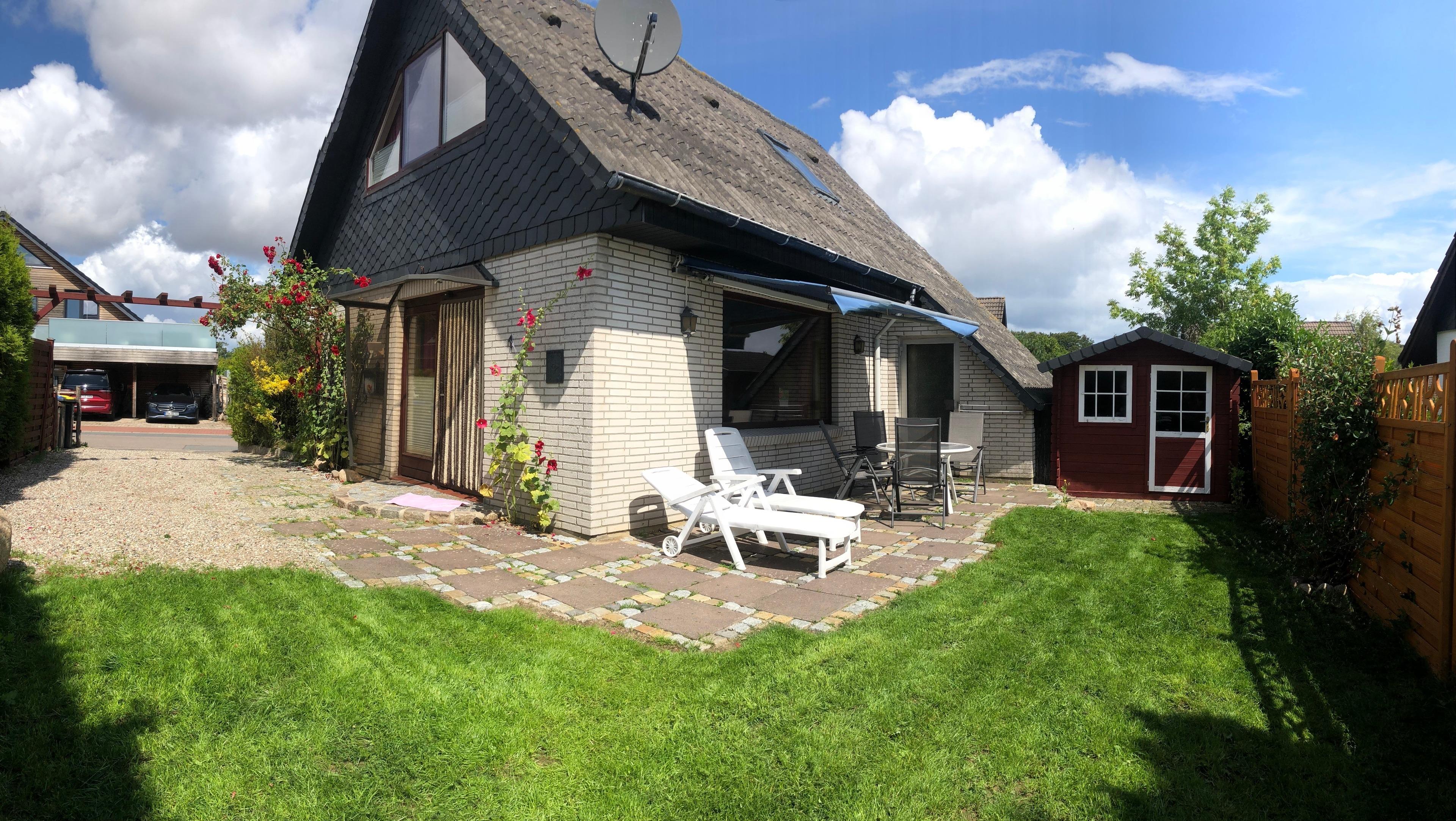 Das Grundstück ist schön eingewachsen und bietet viel Privatsphäre. Terrasse mit Markise, Gartenmöbeln und Grill, eigener Kfz-Stellplatz direkt am Haus. Für Familien: Kinderstuhl, Kinderreisebett und eine kleine Sandkiste zum Buddeln. Glasfaser-WLAN und Staeliten-TV.