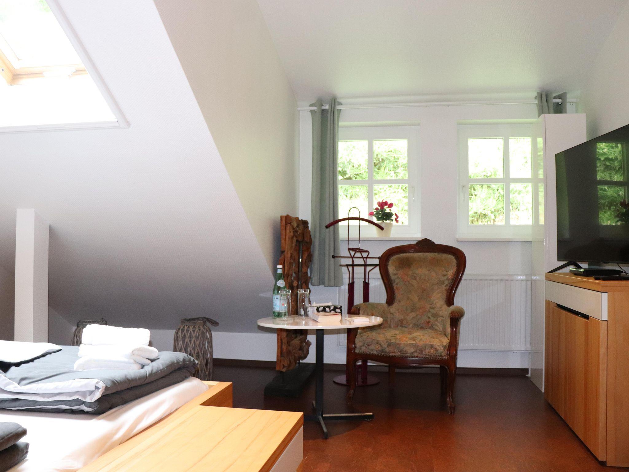 Genießen Sie die Ruhe und Erholung in dieser Oase der Entspannung. Von den beiden großzügigen und nicht einsehbaren Dachterrassen haben Sie einen exklusiven, herrlichen Blick ins Grüne. Unsere Gartenliegen laden Sie zu einem ungestörten Sonnenbad ein.