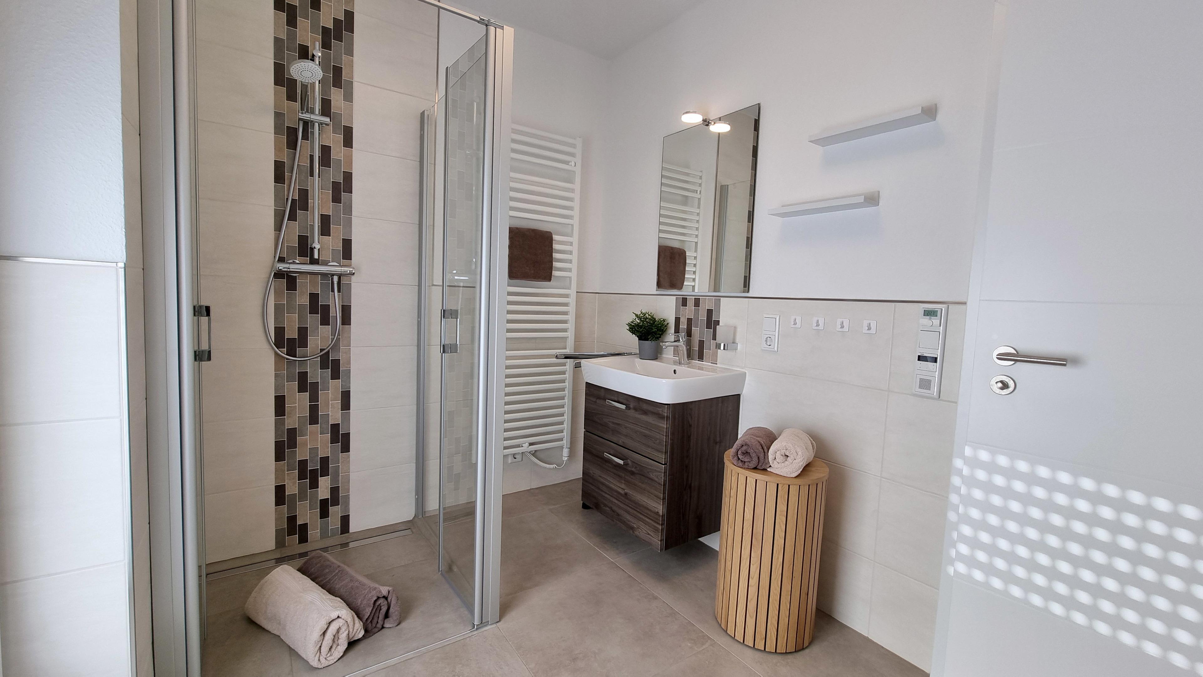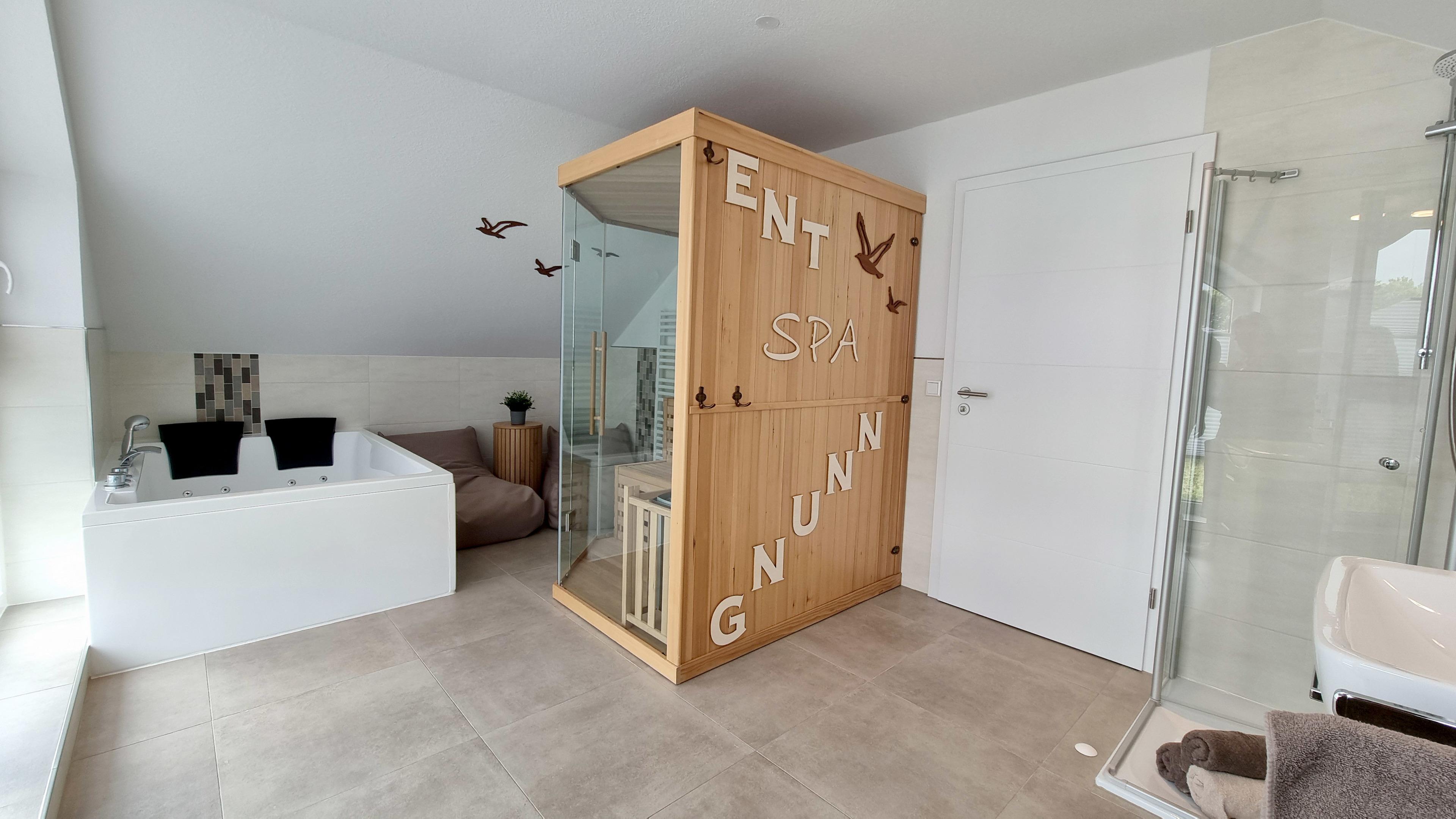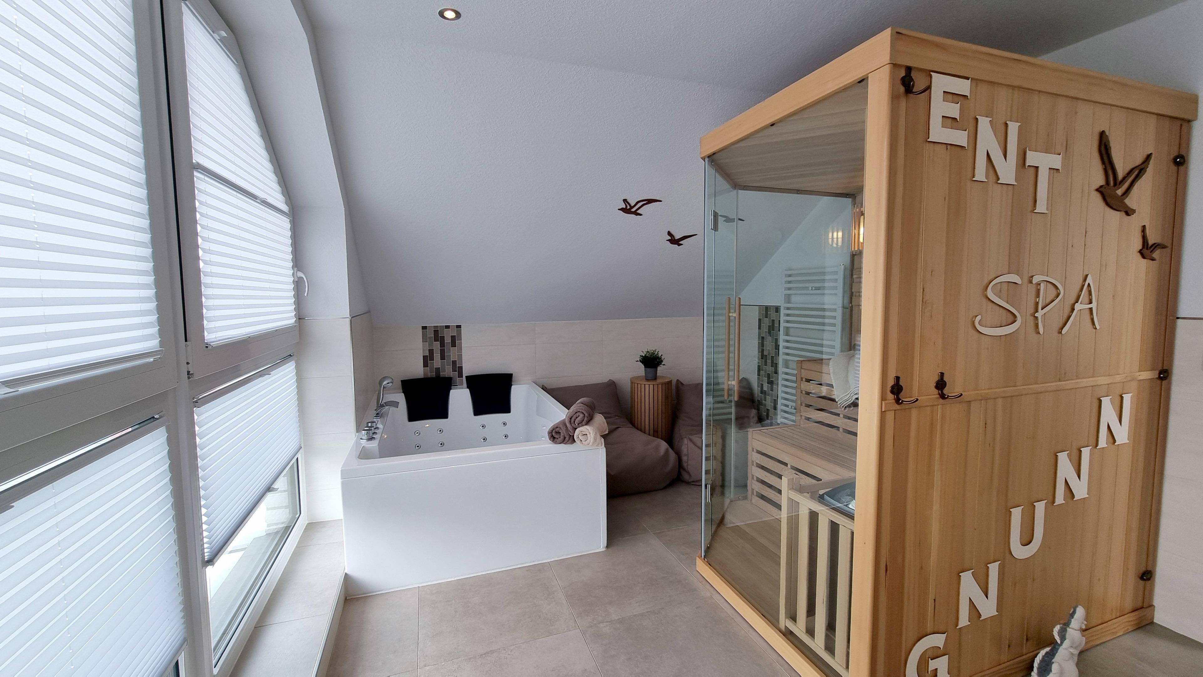1 Duschbad mit finnischer Sauna und großer Whirlwanne