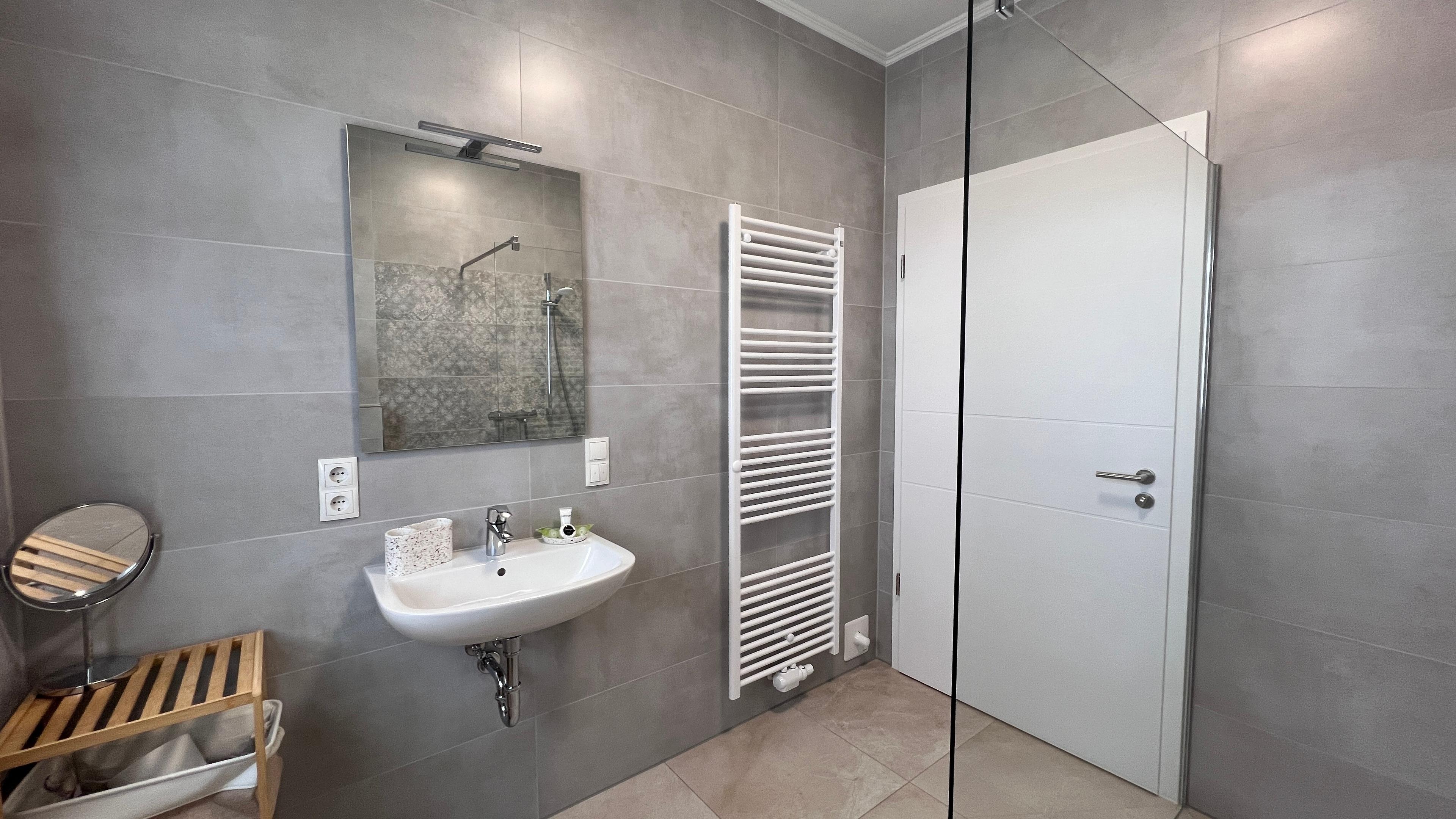 Im Haus befindet sich ein Badezimmer mit Dusche und zusätzlich ein Gäste-WC.