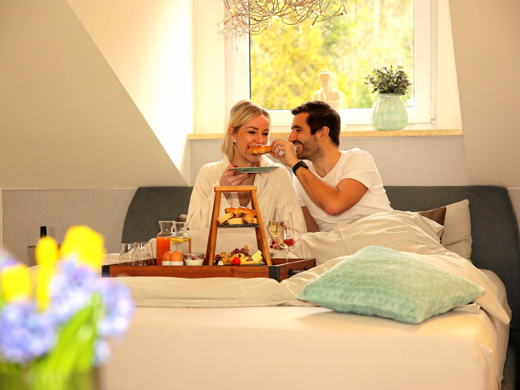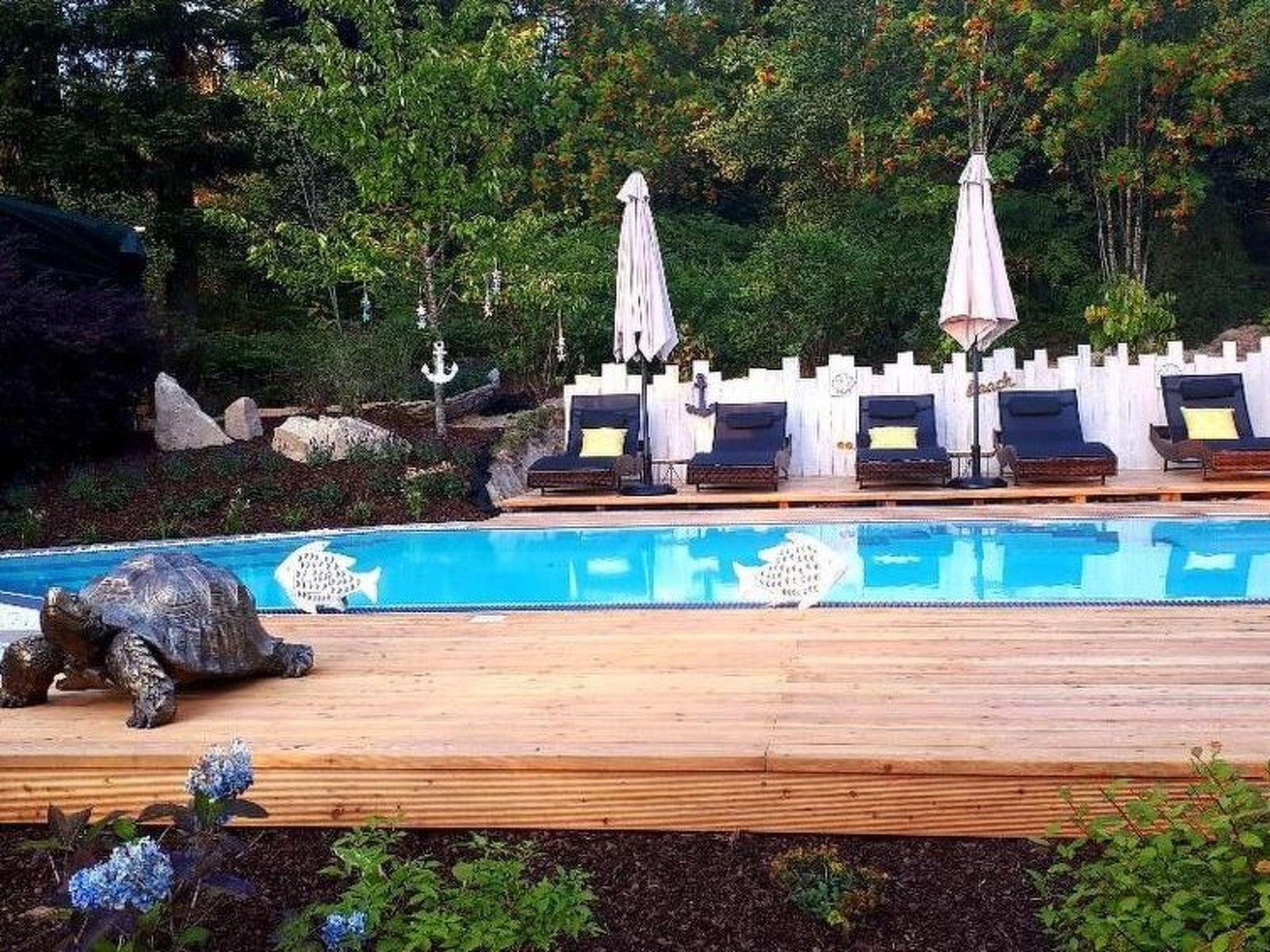 Bed linen and towels are provided. Swimming pond with sunbathing lawn and sandy beach as well as cosy terrace with barbecue facilities. Car parking space available! 300 square metre wellness and beauty studio with sauna and outdoor pool directly in the house.