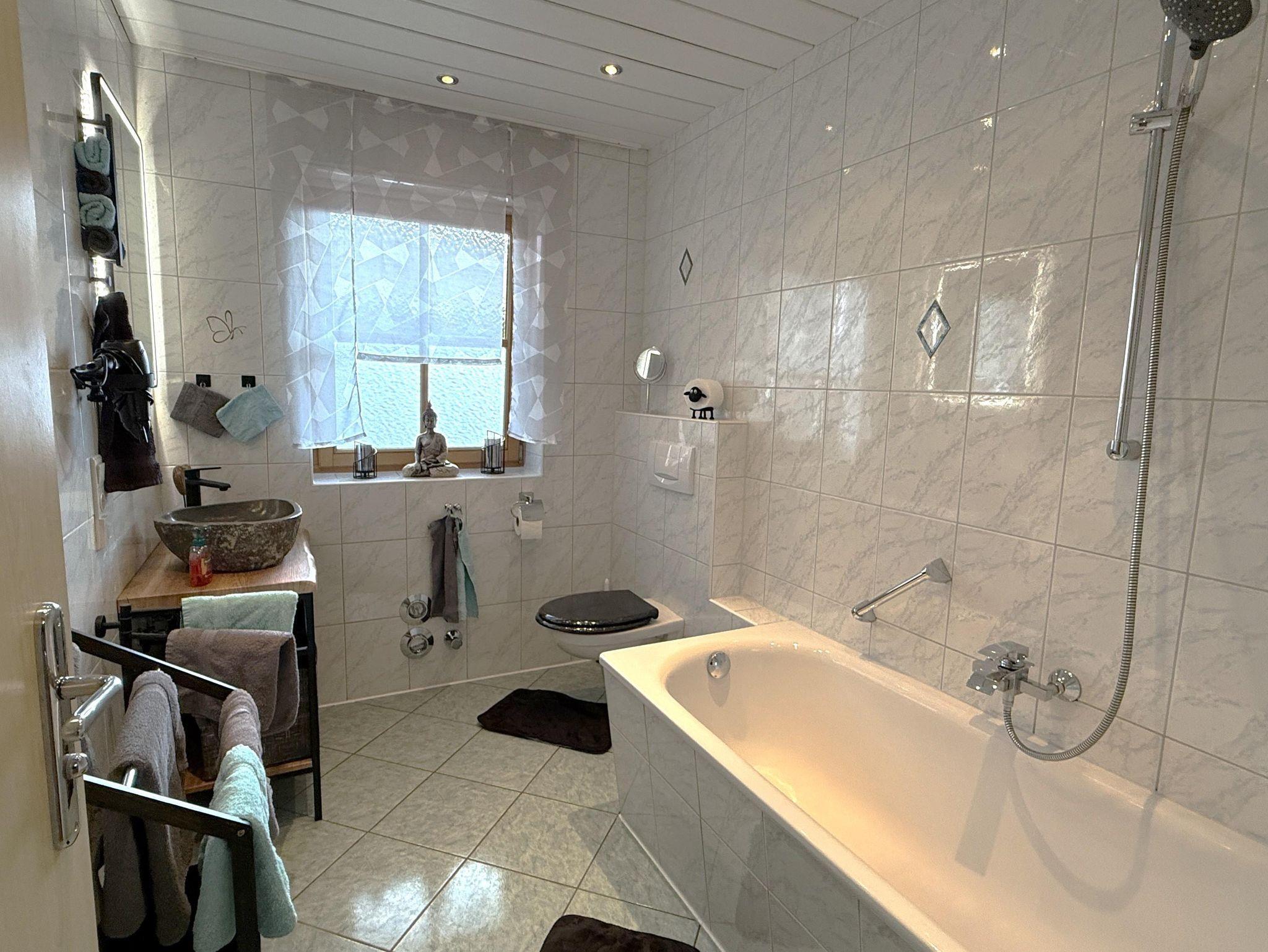 Das Badezimmer punktet mit einer Duschbadewanne, WC und Fußbodenheizung, die sich durch alle Räume zieht und für wohlige Wärme sorgt. Kostenloses WLAN und ein eigener PKW-Stellplatz runden das Angebot ab.