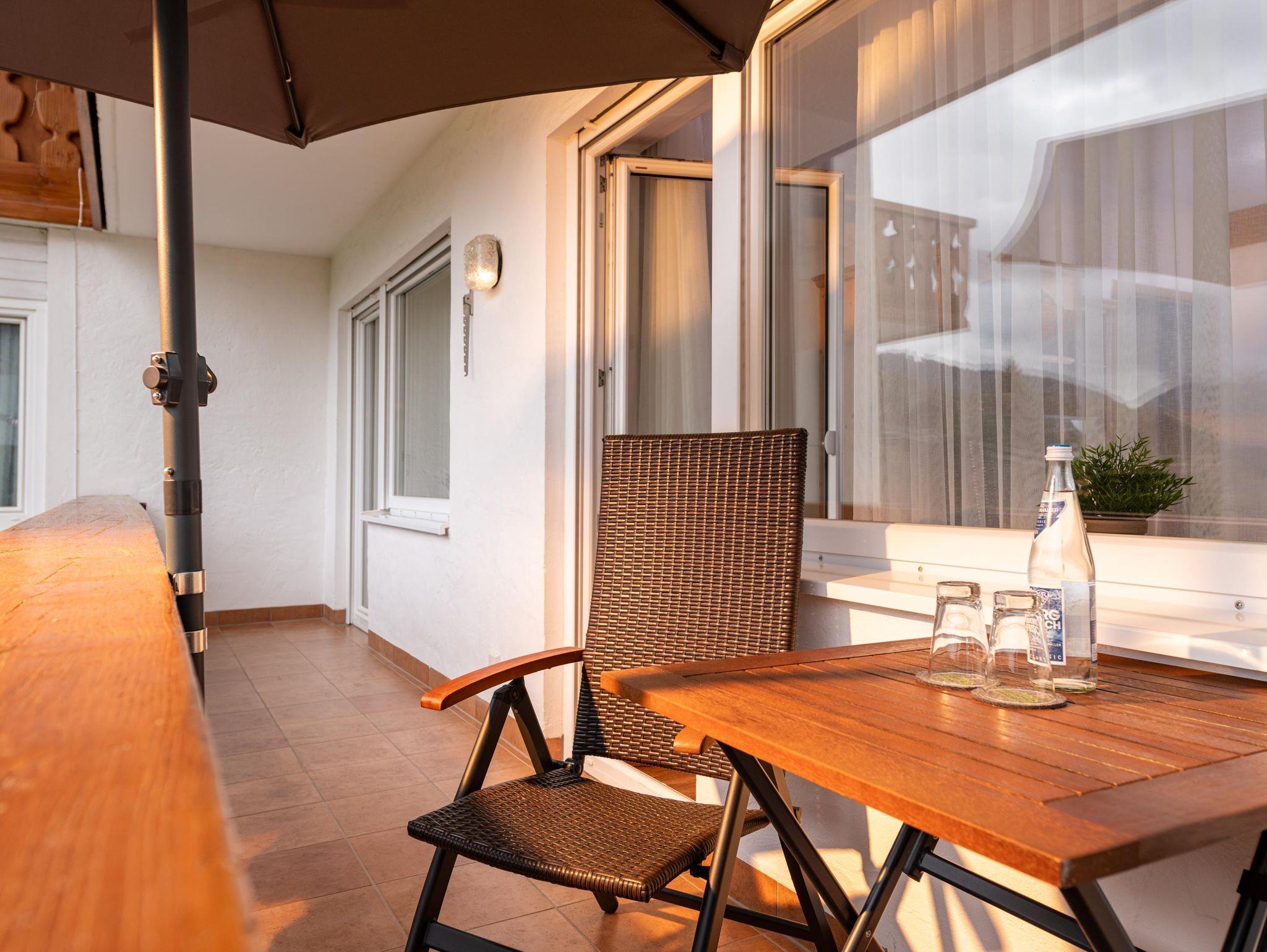 Genießen Sie entspannte Abende auf Ihrem eigenen Balkon und lassen Sie sich von der traumhaften Bergkulisse verzaubern. Die Ferienwohnung ist außerdem mit Rollläden ausgestattet, um Ihnen eine angenehme Nachtruhe zu garantieren.