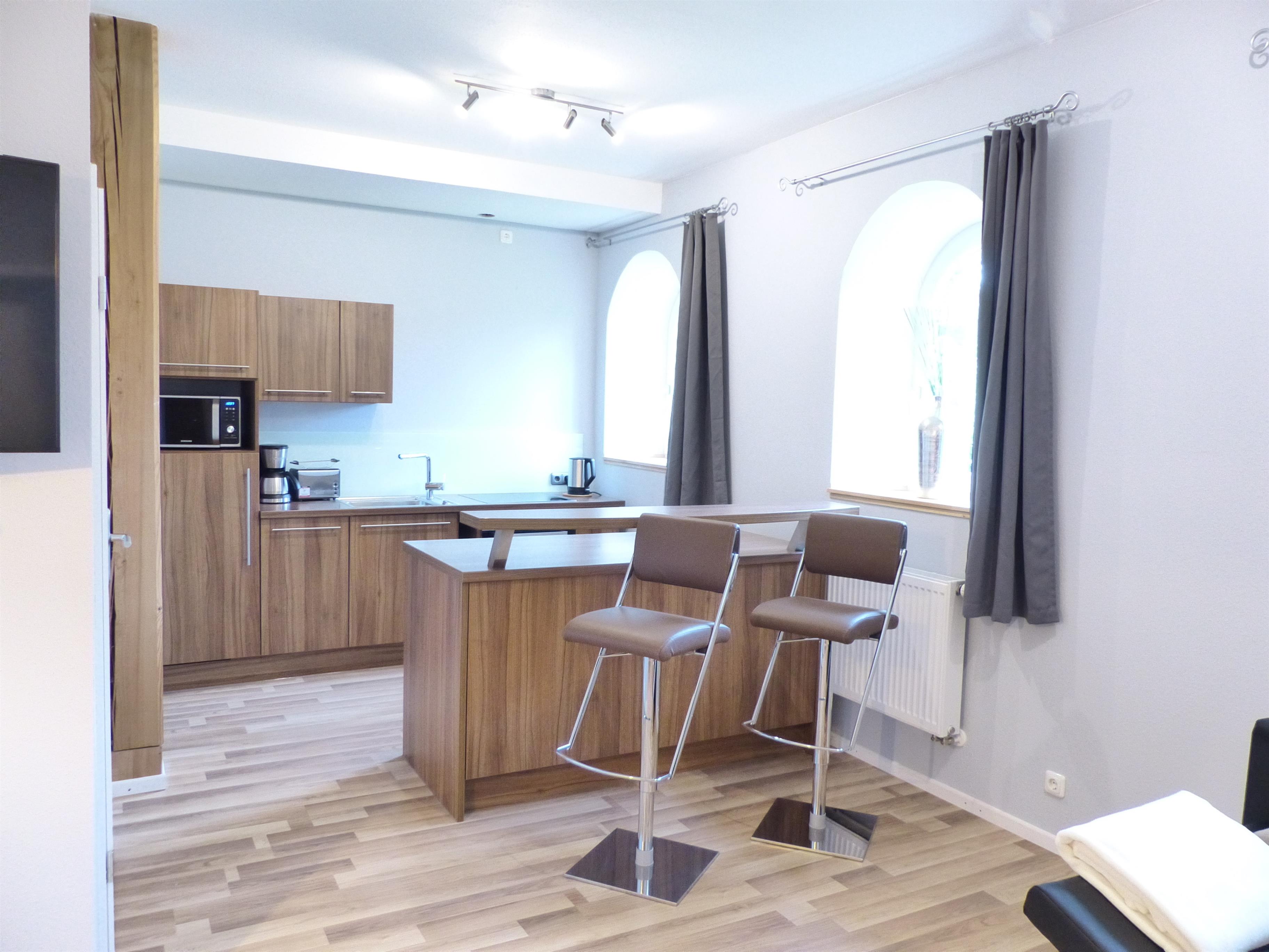 Die Einbauküche ist gut ausgestattet. Das Badezimmer verfügt über Dusche, WC und Waschbecken. Wäschetrockner und Waschmaschine stehen auf dem Hof zur verfügung.