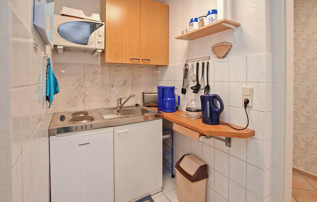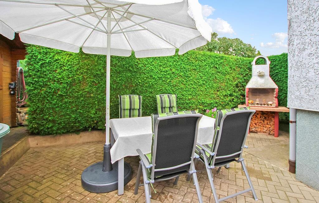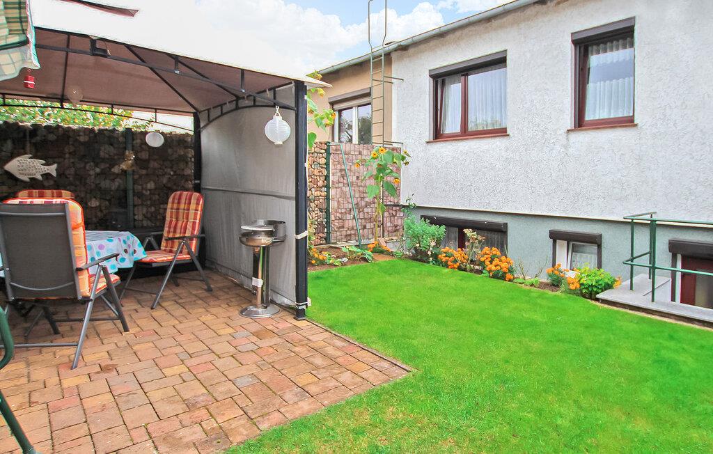 et roligt boligområde i Warenshof-kvarteret ligger der en separat ferielejlighed til op til 3 personer på ejerens cirka 500 kvadratmeter indhegnede grund i kælderen i hans hus. Restauranter, butikker og Volksbad an der Müritz ligger inden for en radius af 2 km, og et togstoppested med forbindelser til turistcentre i Mecklenburg Lake District ligger cirka 300 m. Den ikke-ryger lejlighed, som er ca. kombineret stue/soveværelse (polstrede møbler, opholdsområde, fladskærms-tv, radio, dobbeltseng), et separat soveværelse (dobbeltseng, opholdsområde, fladskærms-tv), et lille køkken (elektrisk kogeplade, køleskab med fryser mulighed , mikroovn, diverse små køkkenmaskiner ), en stor gang og et badeværelse (bruser, toilet, hårtørrer). Lejligheden er centralvarme og er udstyret med insektbeskyttelse på vinduerne. Der er desuden to siddepladser i haven (1 x overdækket, 1 x med fast grill), parkeringsplads og cykelrum. Den samlede pris inkluderer slutrengøring, vand og energiomkostninger samt sengelinned og håndklæder. Betales på stedet: spaskat. Kæledyr er ikke tilladt i denne ejendom. Den statsgodkendte Waren spa ligger direkte ved Müritz i charmerende omgivelser. Det er også turistcentret i Mecklenburg Lake District. Attraktioner omfatter den historiske gamle bydel, havnen med passagerskibsfart, den tilstødende promenade og talrige spisemuligheder samt Müritzeum, et naturoplevelsescenter med et enormt ferskvandsakvarium og udstillinger om de særlige kendetegn ved Mecklenburgs sødistrikt. Der er også udendørs swimmingpools, båd- og cykeludlejning, surf- og sejlerskoler og mange indkøbsmuligheder i byen. Waren er indgangsporten til nationalparken Müritz, som nemt kan udforskes via det veludviklede netværk af cykelstier. Motorvejsforbindelse ca 25 km.