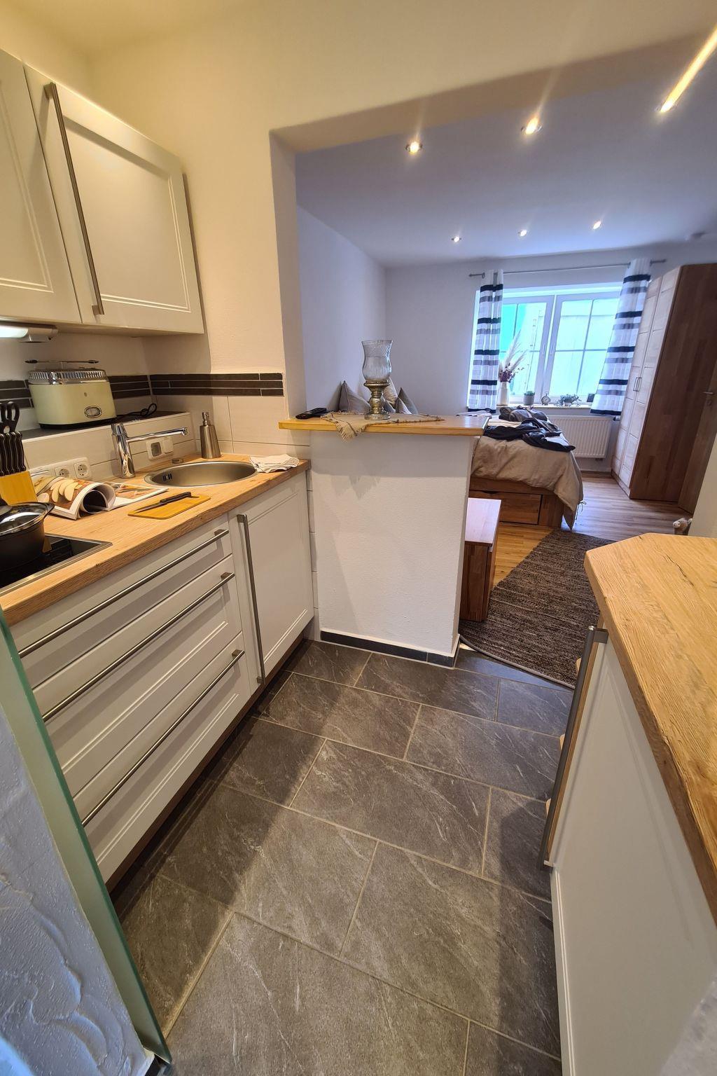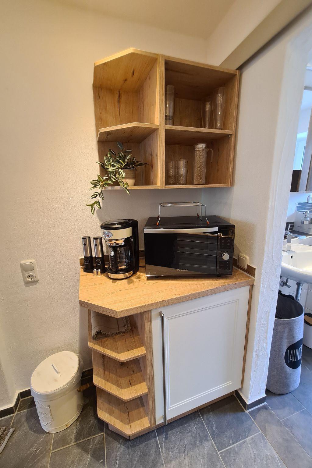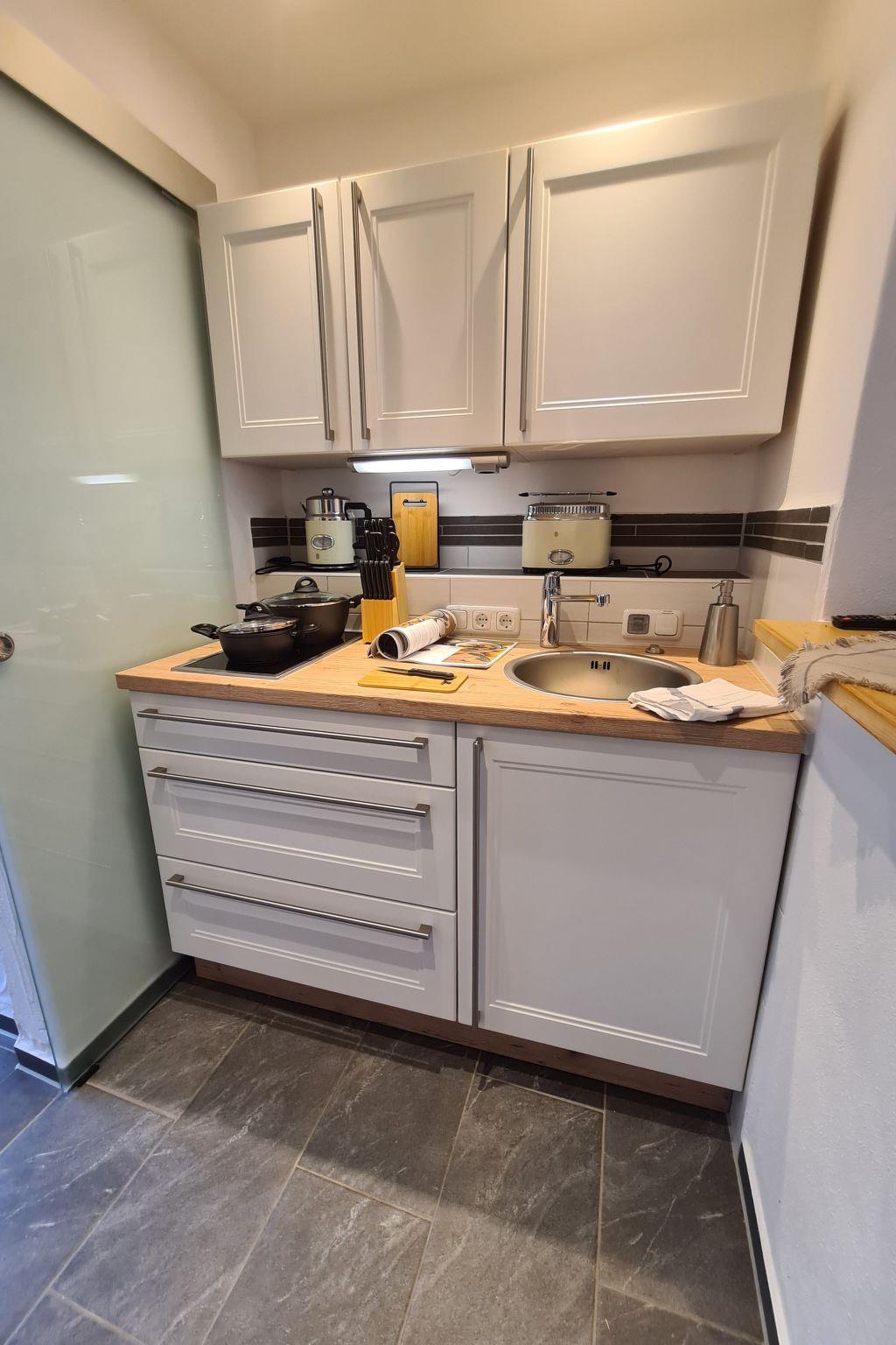 The kitchen is fully equipped and also contains salt, pepper, balsamic vinegar and fresh olive oil from Italy. The kitchen has a coffee machine including beans from our private roastery.