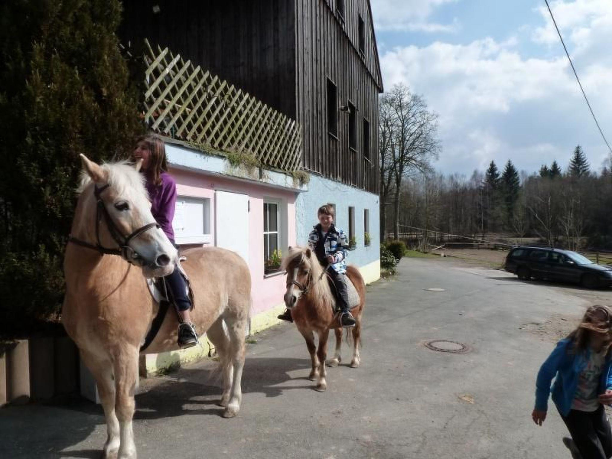 You will find us in the middle of the beautiful Fichtelgebirge, surrounded by mountains and forests. The wonderful secluded location on the edge of the forest offers the opportunity to explore the area on foot, by bike or on horseback with your own or one of our horses. We offer guided rides in our beautiful area, with a picnic or barbecue afterwards, as well as pony rides for the little guests. Riding holidays for children are also on our programme. Twelve comfortably furnished holiday flats promise absolute peace and quiet. Six flats offer a beautiful balcony with a view of the forest and the Finkenmühle, the others are centrally located on the farm.