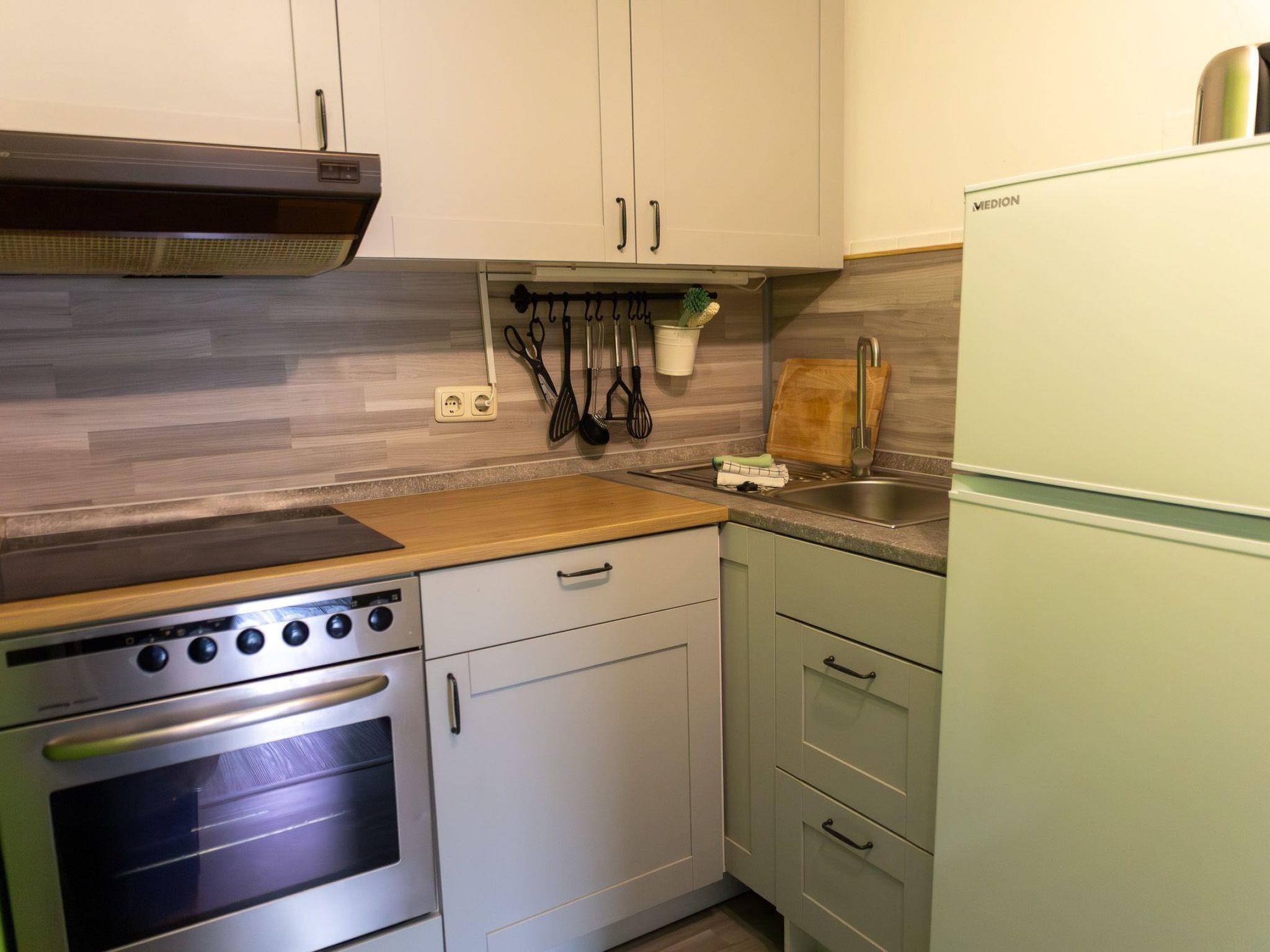 The hallway with a rustic cupboard provides access to the two bedrooms, the living and dining room and the shower room with a WC. The first bedroom is furnished with a double bed measuring 160 x 200cm, the second has two single beds (90 x 200cm) that can also be joined together. The centrepiece of the apartment is the living and dining room with two sofas for relaxing after a day trip, with a flatscreen TV with satellite channels providing entertainment in the evening. You can sit together for meals at the dining table with four chairs. The well-equipped, separate built-in kitchen includes an electric stove with four rings and an oven, a fridge and a coffee machine, toaster and kettle.