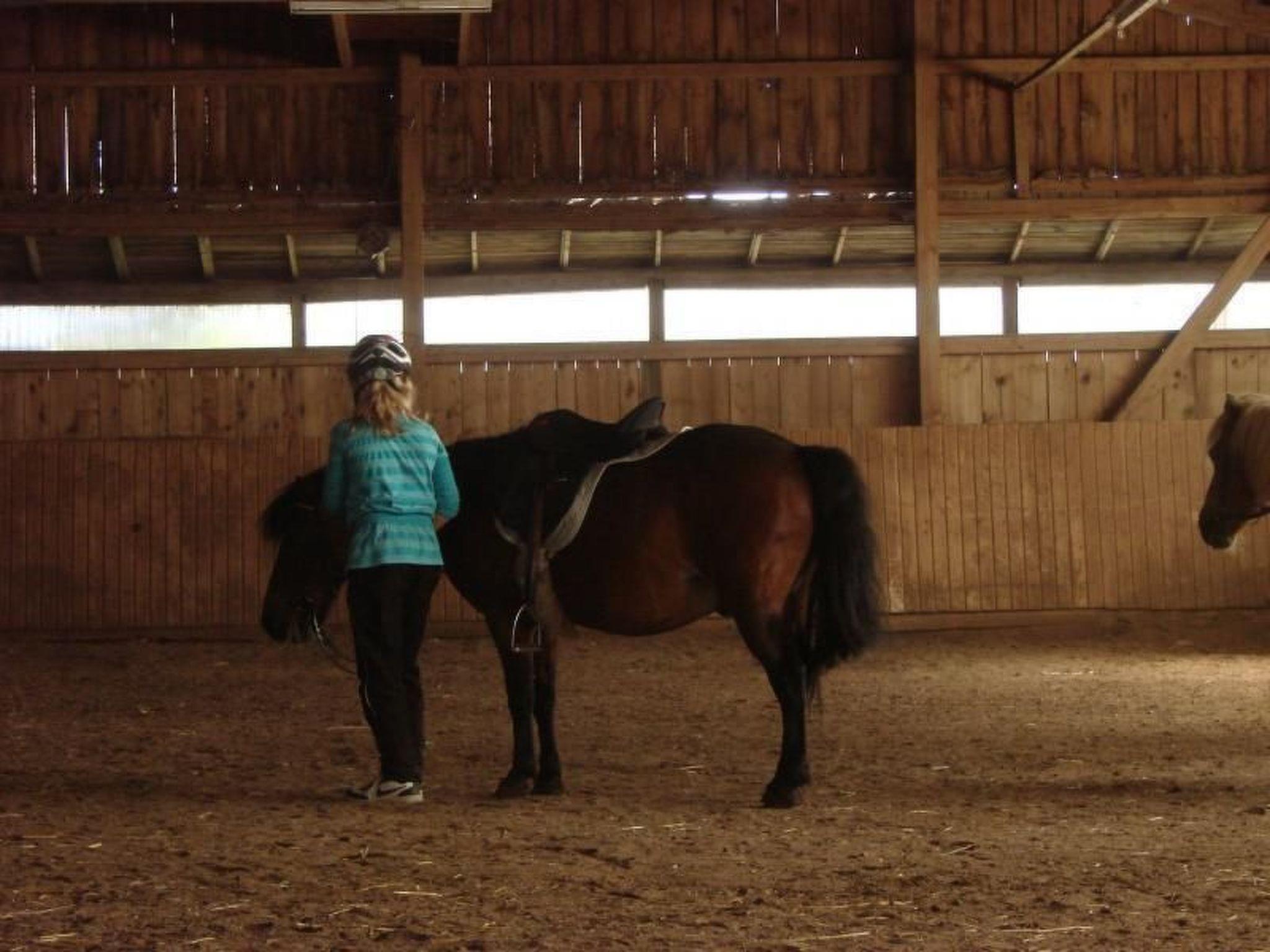 The holiday apartment is in the front part of the riding farm, on the first floor over the entrance. On the south-facing balcony you can enjoy the sun from morning to evening, as well as the view towards the edge of the forest, the riding arena and the pasture.
