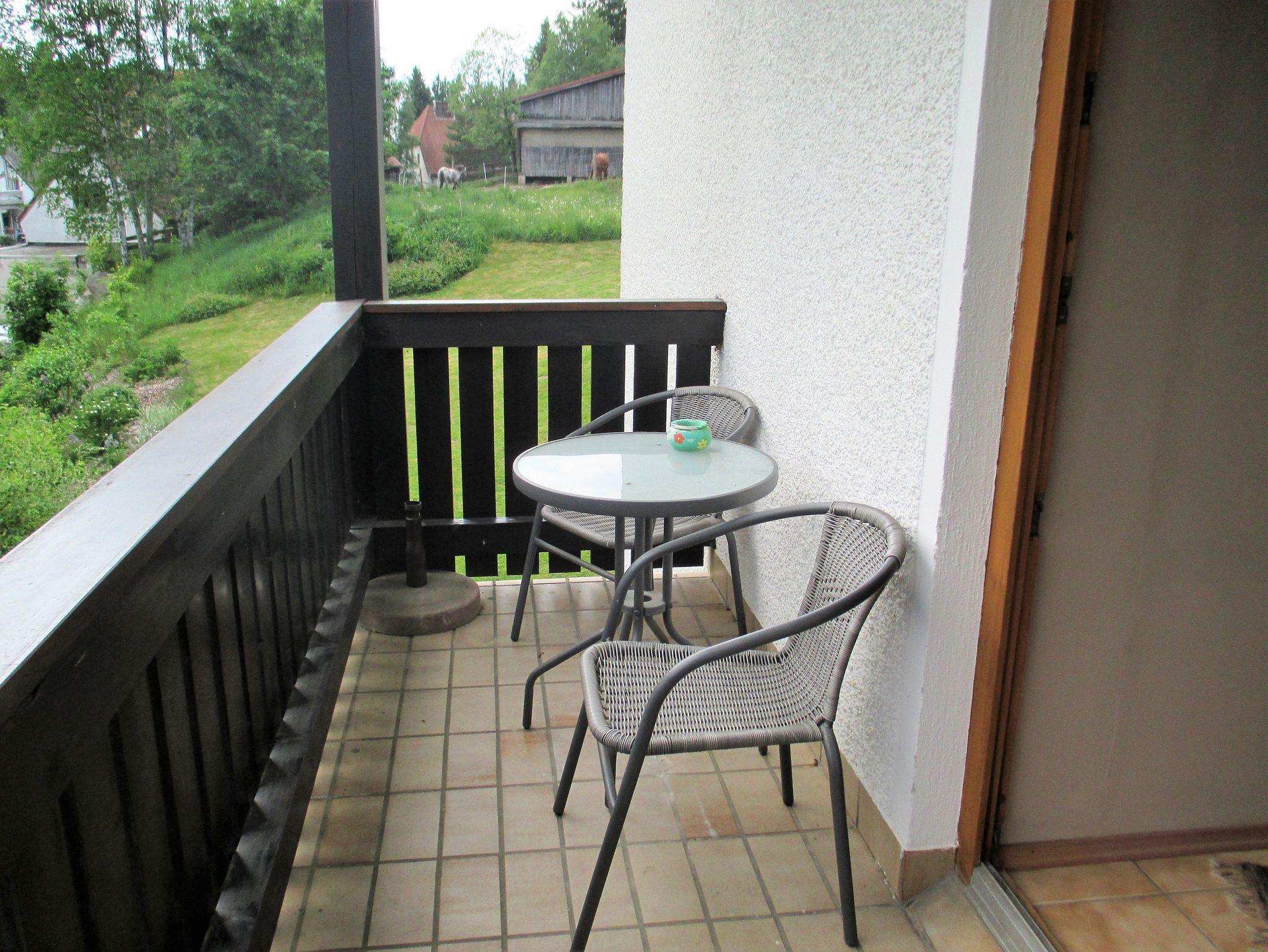 Unsere liebevoll eingerichtete, nach Boris benannte Ferienwohnung hat eine Größe von ca. 45m². Sie befindet sich in der ersten Etage über dem Hauseingang links und hat einen schönen Balkon mit Sonne von morgens bis abends. Von dort aus schaut man direkt auf den Wald, den Reitplatz und die Weide.