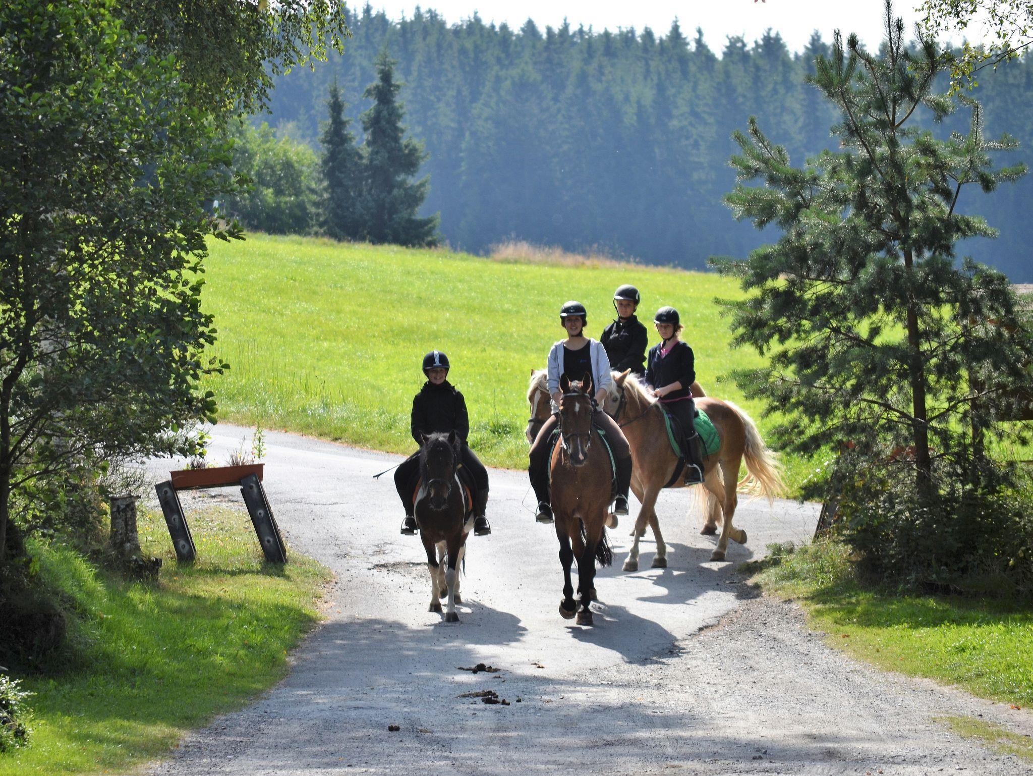 Wir bieten geführte Ausritte in unserer schönen Gegend an, gerne mit Picknick oder anschließendem Grillabend, sowie Ponyreiten für die kleinen Gäste.
