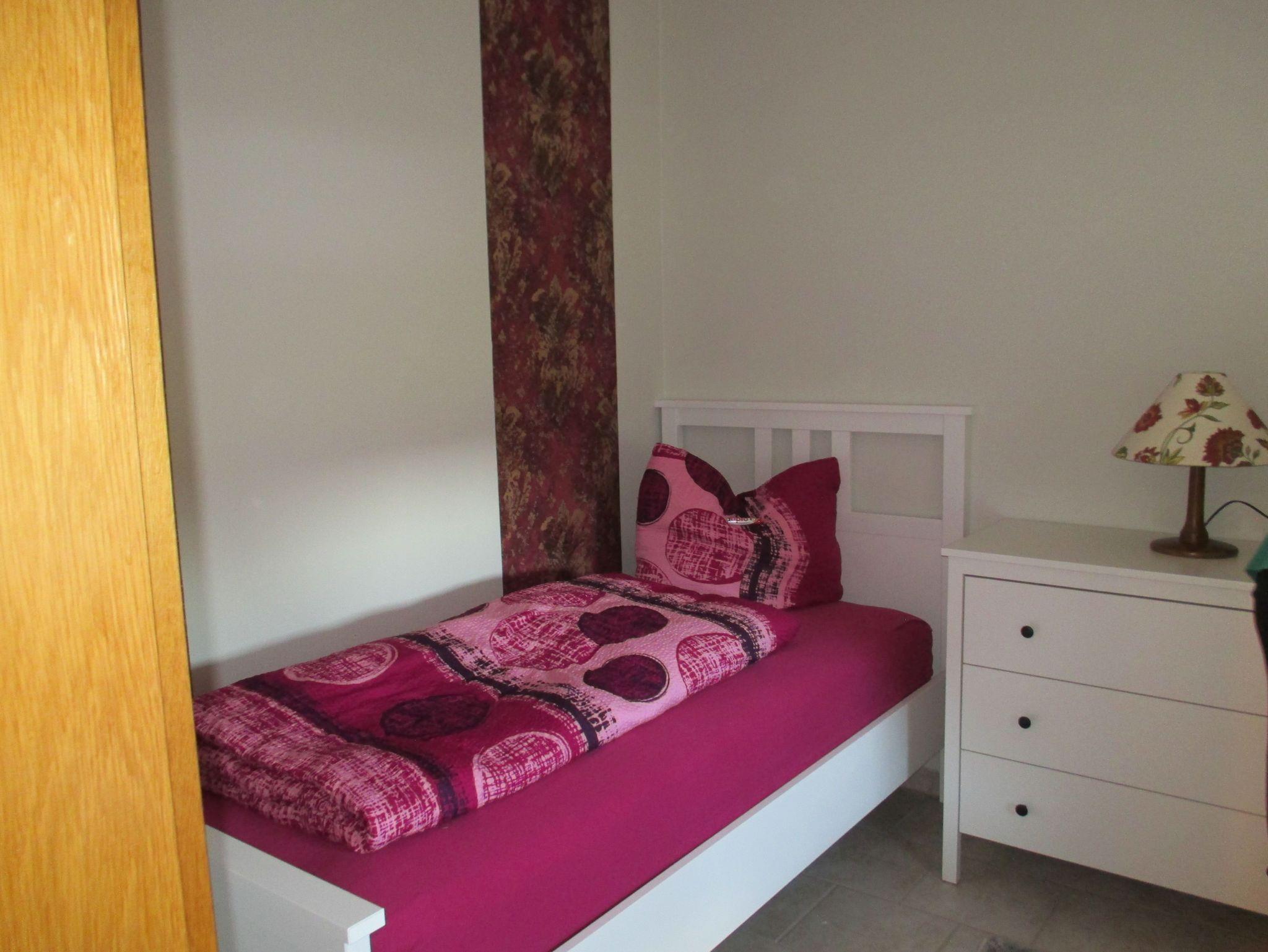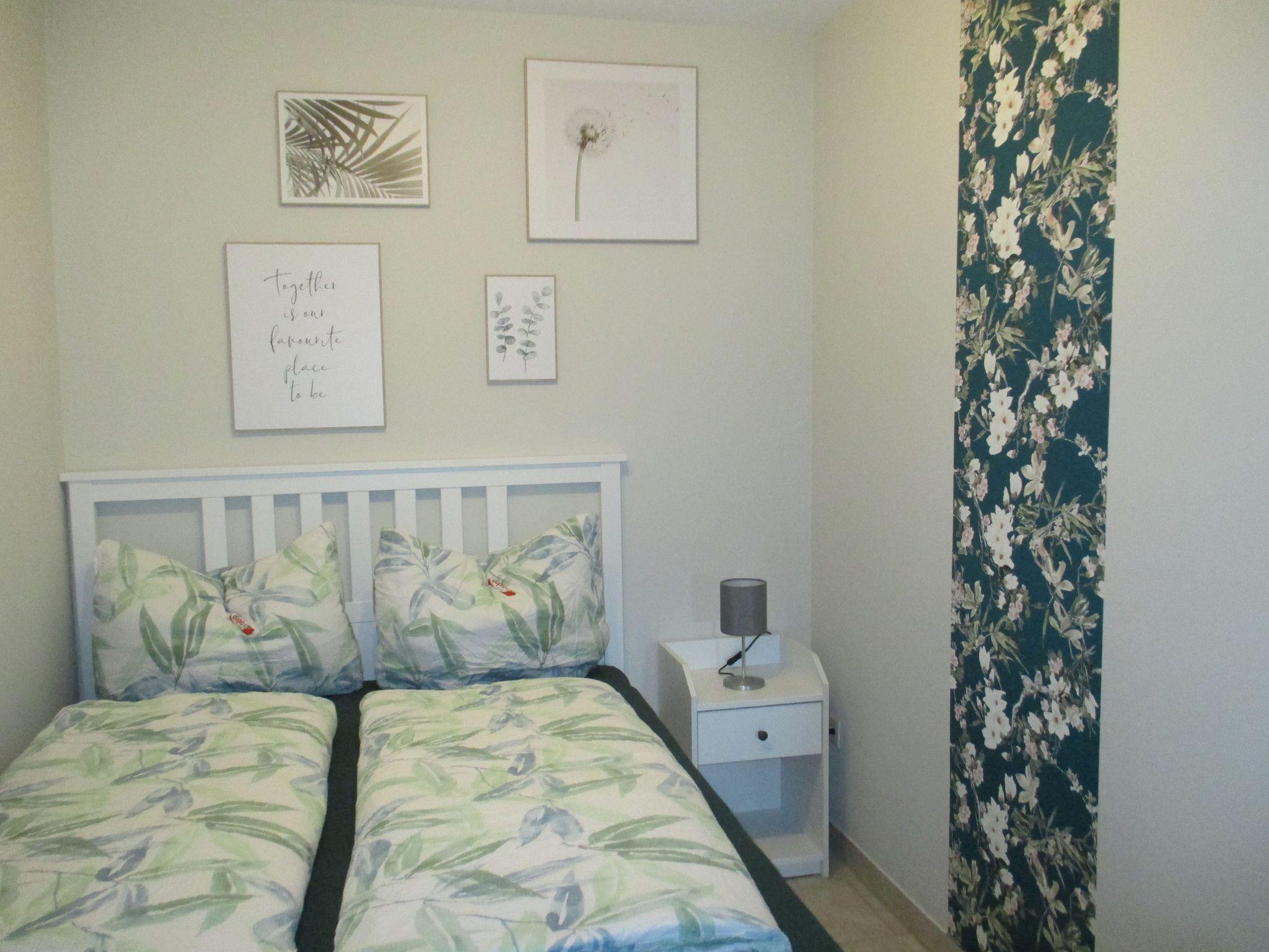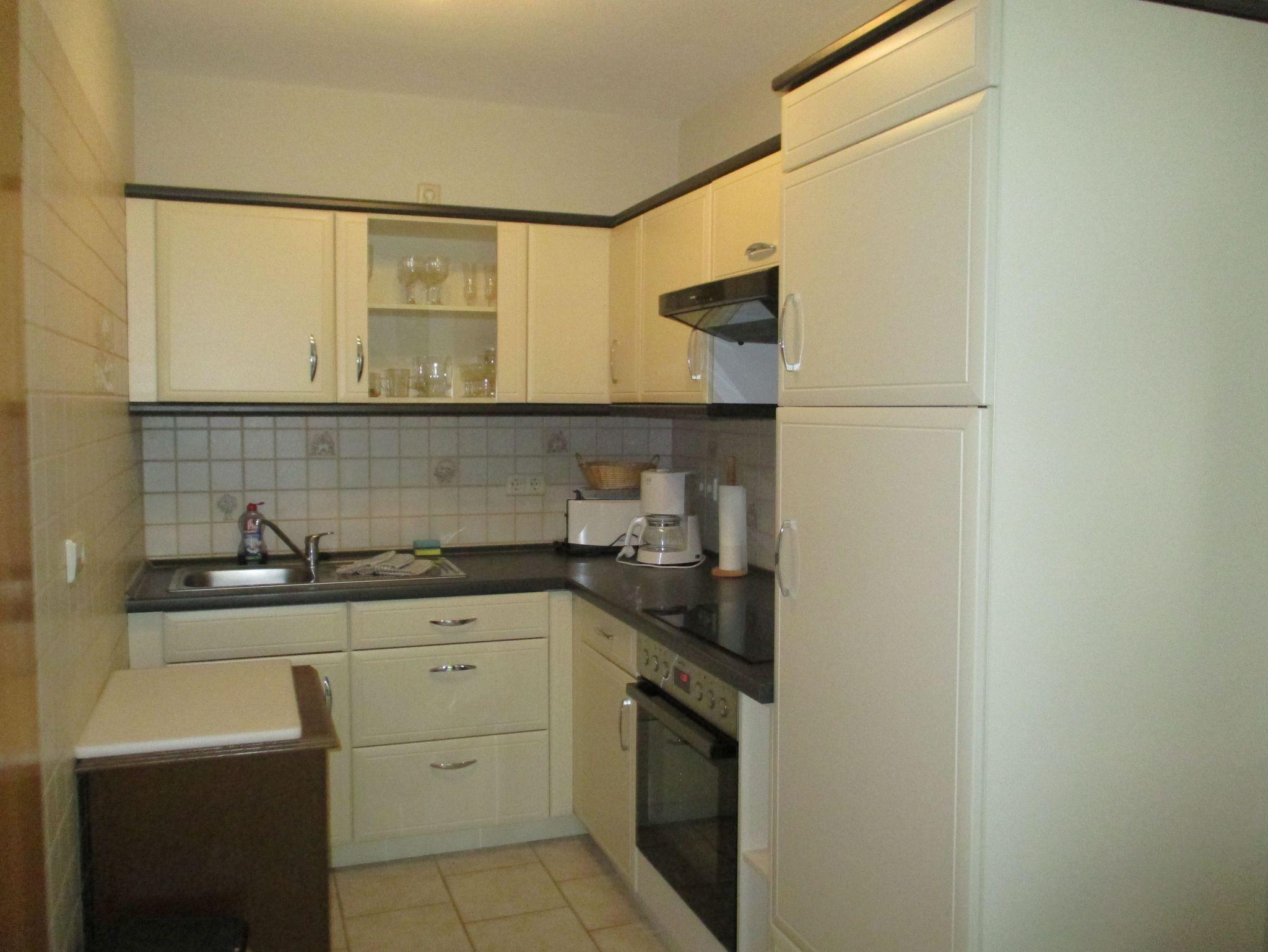 Die Wohnung besteht aus einem Flur mit großem Kleiderschrank, einer komplett ausgestatteten Einbauküche mit Kühl- und Gefrierschrank, Kaffeemaschine, Toaster, Wasserkocher etc., einem Wohn-/ Esszimmer mit Schlafsofa (140cmx200cm), einem Schlafzimmer mit Doppelbett (140cm x 200cm), einem Schlafzimmer mit zwei Einzelbetten (90cm x 200cm) und einem Bad mit Dusche, WC und beleuchtetem Spiegelschrank.