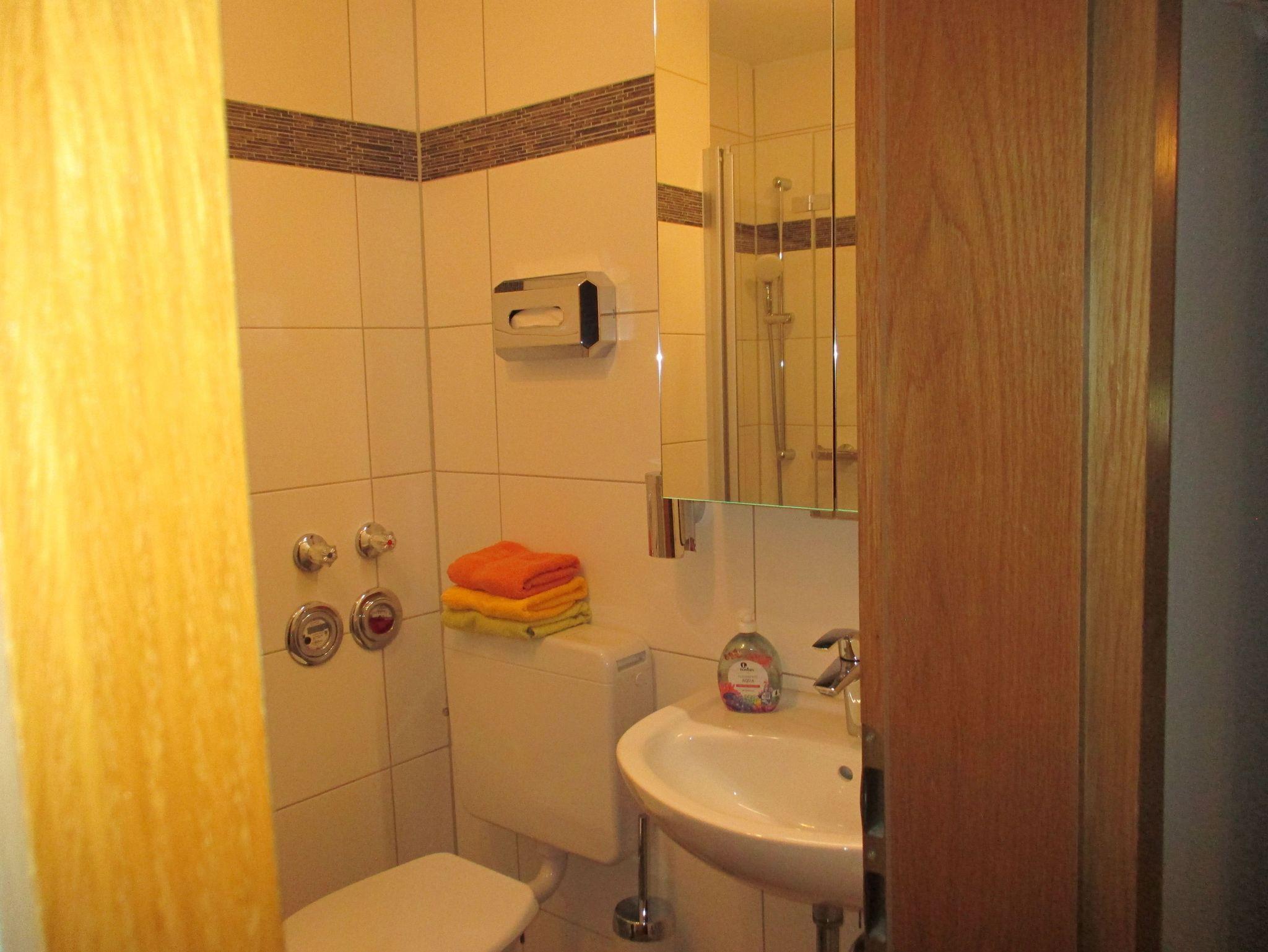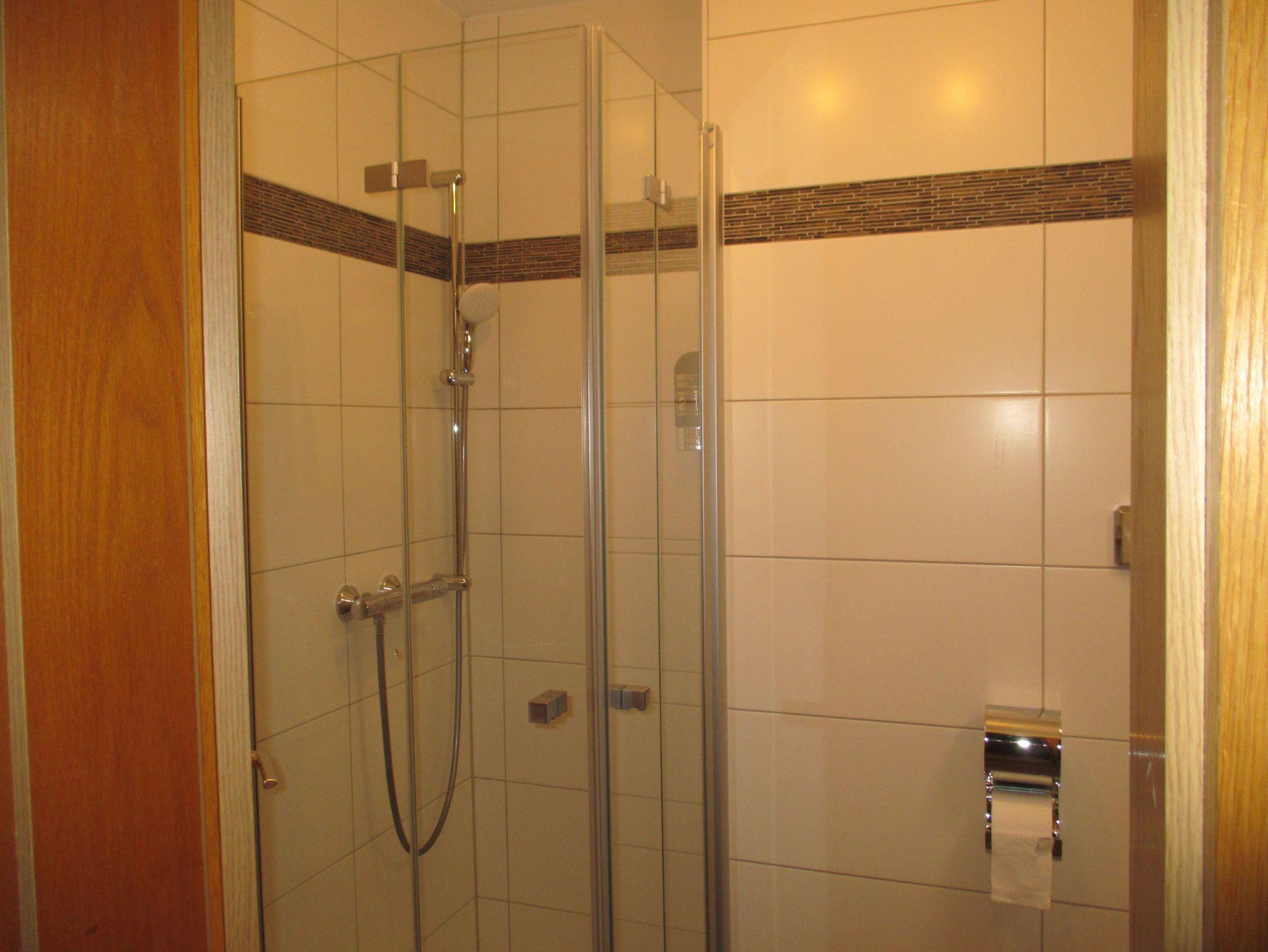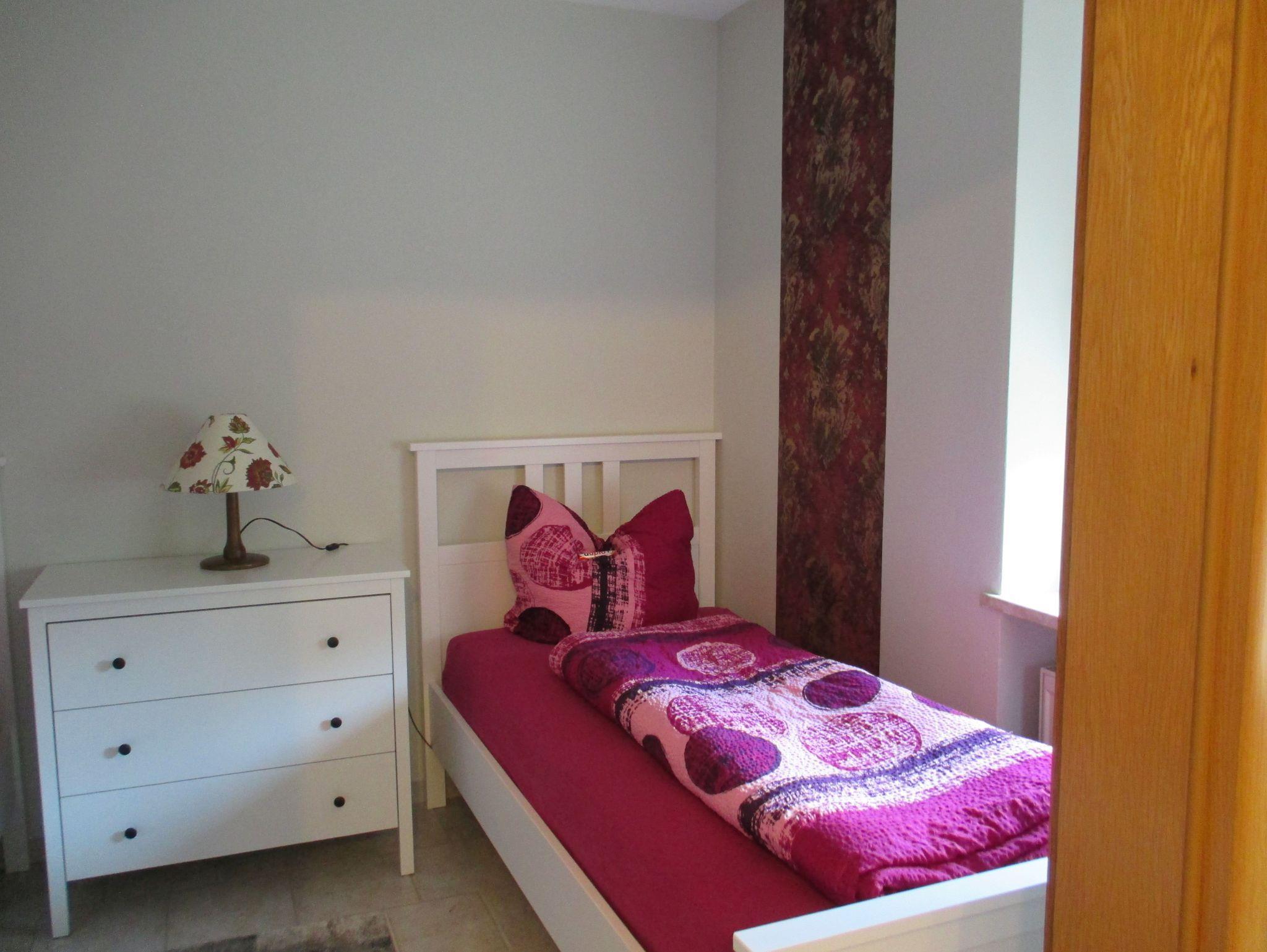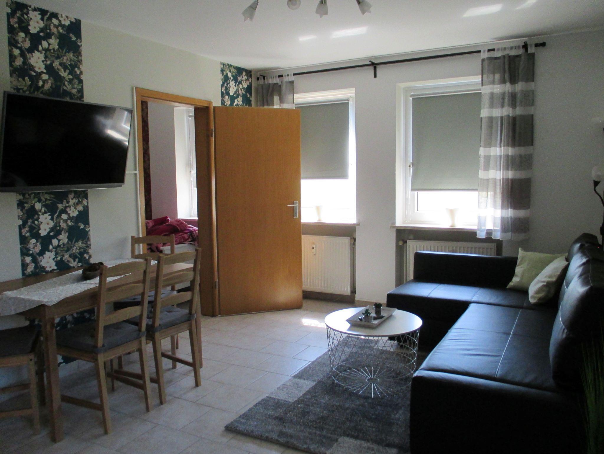 Die Wohnung besteht aus einem Flur mit großem Kleiderschrank, einer komplett ausgestatteten Einbauküche mit Kühl- und Gefrierschrank, Kaffeemaschine, Toaster, Wasserkocher etc., einem Wohn-/ Esszimmer mit Schlafsofa (140cmx200cm), einem Schlafzimmer mit Doppelbett (140cm x 200cm), einem Schlafzimmer mit zwei Einzelbetten (90cm x 200cm) und einem Bad mit Dusche, WC und beleuchtetem Spiegelschrank.