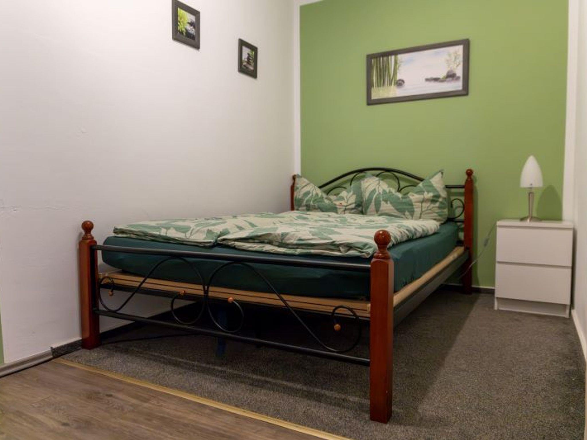Das erste Schlafzimmer ist ausgestattet mit einem Doppelbett (140cm x 200cm), einem Nachttisch und einem großen Kleiderschrank.