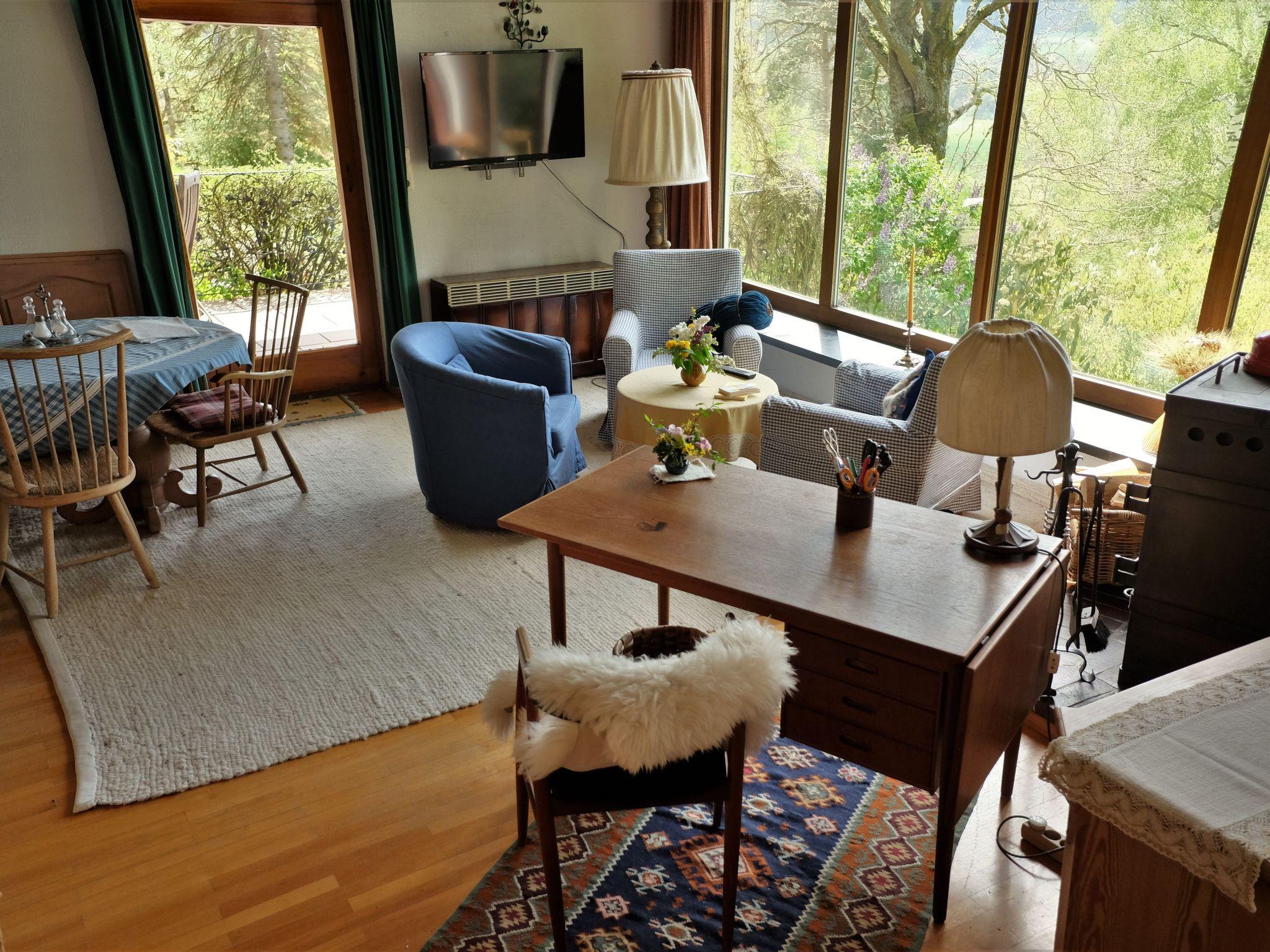 In winter the little house can be heated with gas heaters. There is also a fireplace in the living room. Plenty of wood is available and included in the rental price. If there is strong snowfall then the driveway to the house might not be passable. The wonderful view and the snowy garden will compensate for that, however.