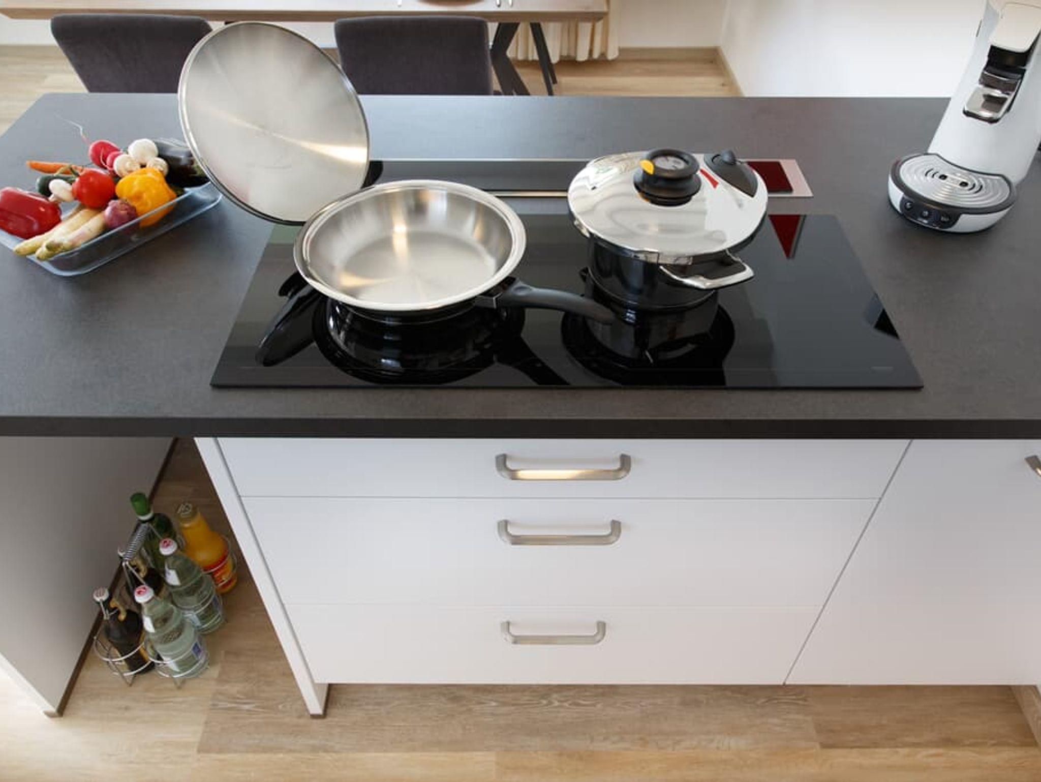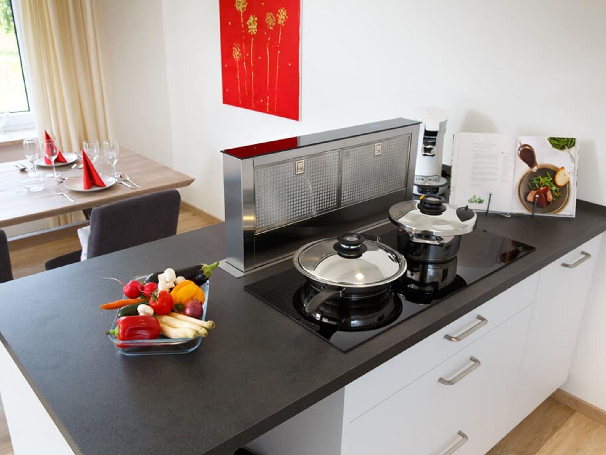 • Hochwertige AMC - Töpfe in der perfekt ausgestatteten Profiküche laden Sie zum Kochen ein.