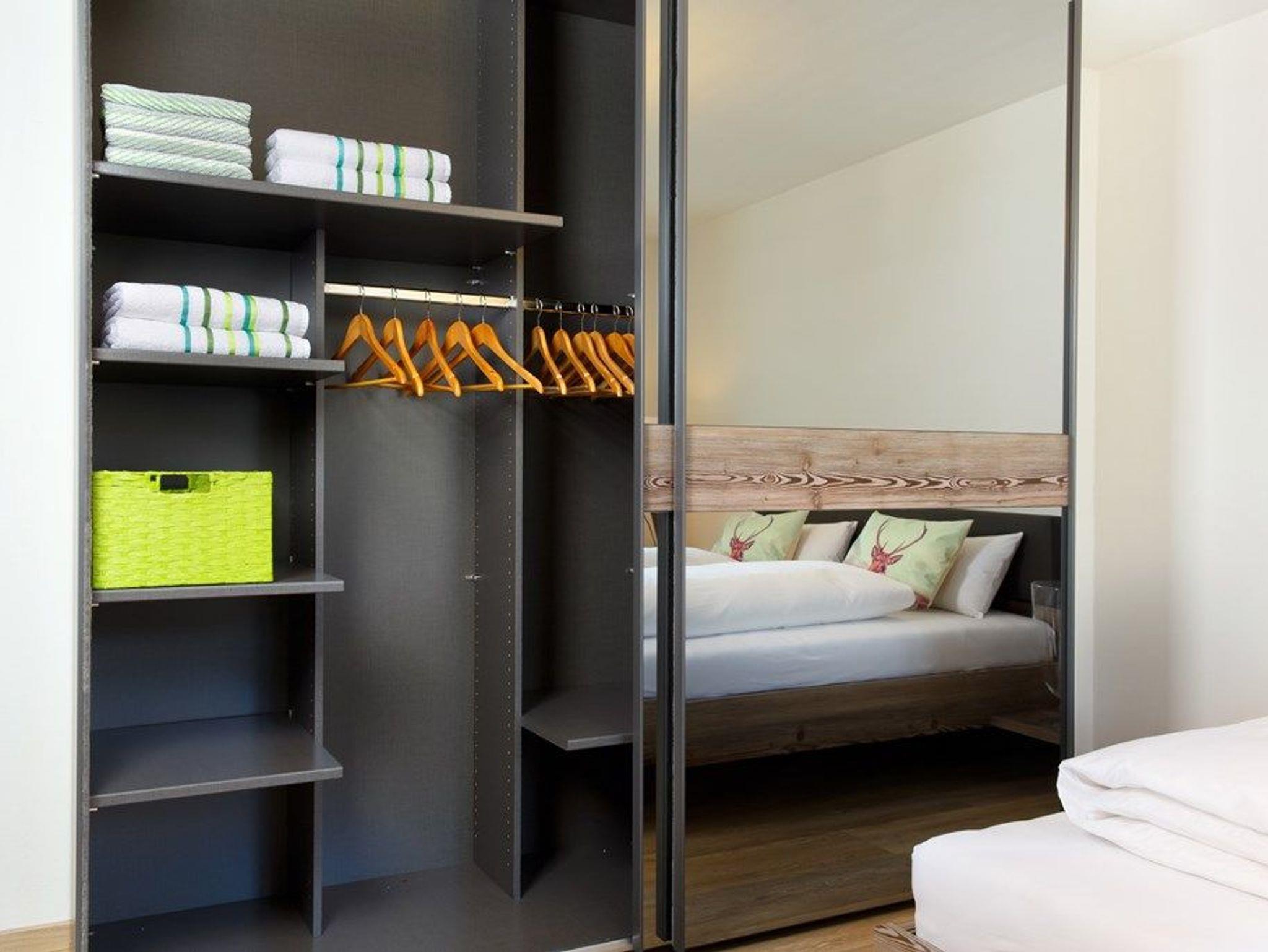 • Eine großzügig gehaltene Garderobe schafft Platz für Ihre Kleidung, Koffer und Schuhe.