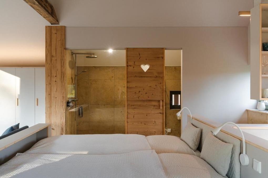 Das Appartement Traumzeit verbindet modernen Luxus mit einem charmanten Ambiente. Betreten Sie den großzügigen Wohnbereich, der geschmackvoll eingerichtet ist und mit hochwertigen Echtholz Möbeln und stilvollen Dekorationen ausgestattet wurde. Entspannen Sie sich auf der gemütlichen Couch, während Sie den Blick auf die Landschaft genießen. Die kleine offene Küche ist gut ausgestattet und lädt dazu ein, kulinarische Köstlichkeiten zuzubereiten.