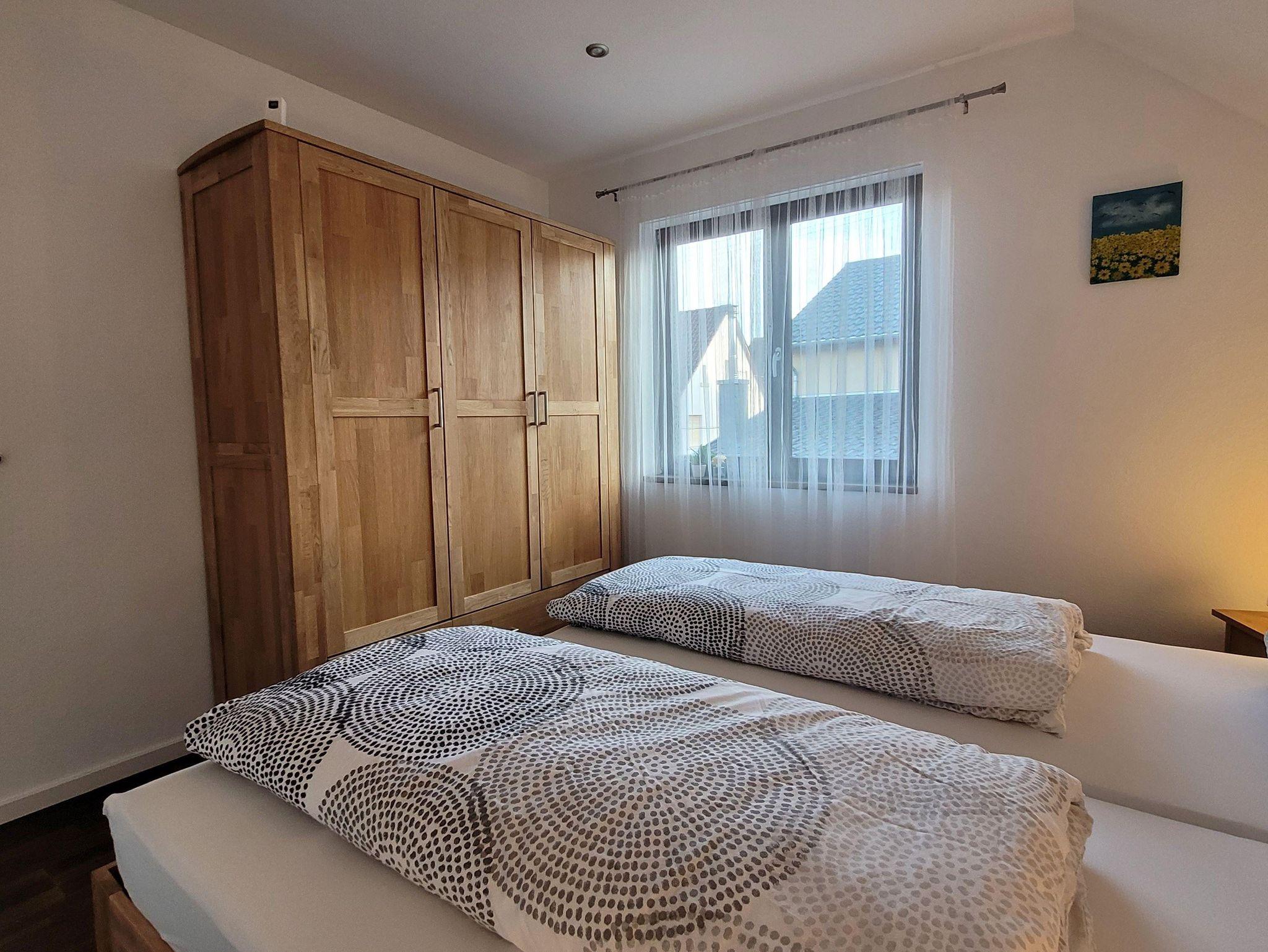 Für ältere Kinder oder weitere Erwachsene steht ein weiteres, kleines, aber gemütliches Schlafzimmer bereit in dem entweder 2 Einzelbetten (90x200cm) oder miteinander verbunden ein Doppelbett (180x200cm) und ein weiterer Kleiderschrank zur Verfügung.