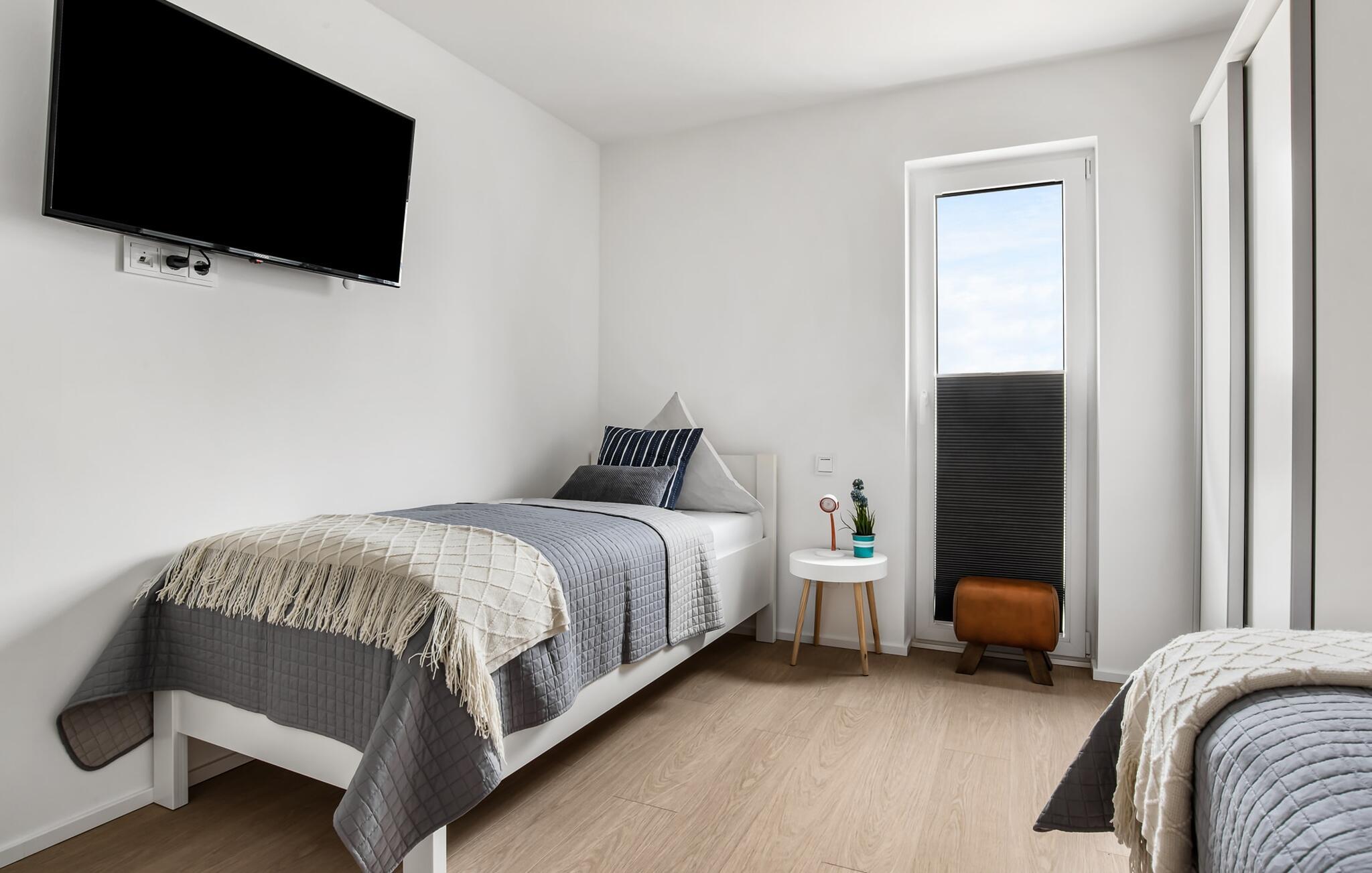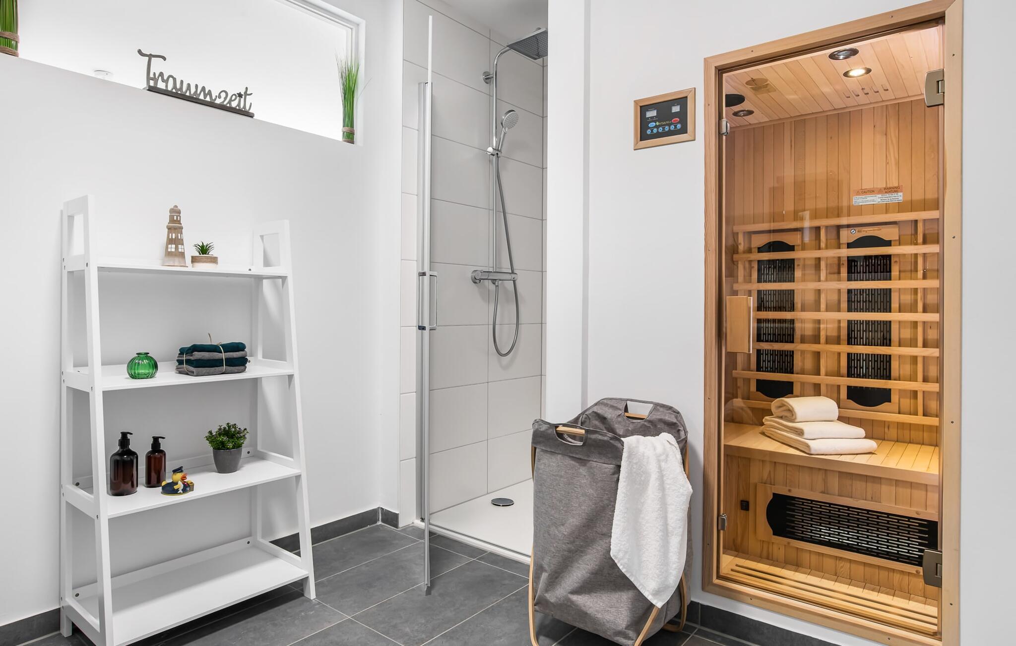 WEITSICHT er en maritim og delvist bæredygtigt indrettet ferielejlighed i stueetagen, der lever op til sit navn: Den imponerer med sin fantastiske beliggenhed med direkte udsigt over Østersøen og de naturbevarende strandenge og marker. Fra terrassen kan I nyde roen og fremsynet i fulde drag. Den naturlige sandstrand Weidefelder med kiosk, restaurant, strandstole og forskellige muligheder for vandsport kan nås på få hundrede meter. Firbenede venner kan også slippe dampen ud på hundestranden bagerst. I umiddelbar nærhed er der også den fantasifuldt designede Adventure Golf minigolfbane og lystbådehavnen i OstseeResort Olpenitz med forskellige indkøbsmuligheder. Resortets beliggenhed direkte mellem mundingen af Slime og Østersøen og tæt på den smukke by Kappeln byder også på en bred vifte af udflugtsmuligheder med båd, cykel eller til fods. Hjertet i lejligheden, som er lavet med højkvalitets og økologisk bæredygtige materialer, er den åbne, lysfyldte stue/spisestue. Vinduesfronten fra gulv til loft giver en unik udsigt over naturen. Det integrerede køkken er perfekt udstyret. Det gør det sjovt at lave mad sammen. Skulle vejret nogensinde blive nordisk, inviterer opholdsområdet til afslapning. Pejsen skaber hygge med sin knitrende ild. Direkte fra opholdsstuen kommer man ind på den rummelige terrasse med syd-vest orientering. Dette tilbyder afslappende timer væk fra stress og jag i resten af feriestedet ved Østersøen. Mod bagsiden med udsigt til de naturbeskyttede strandenge, marker og havet kan I nyde FREMSYNET. Møblerne af høj kvalitet på terrassen inviterer jer til at grille og slappe af. To soveværelser er tilgængelige for en afslappende nat. Den ene er udstyret med en dobbeltseng, den anden med to enkeltsenge. Med nogle få enkle trin kan sofaen i stuen forvandles til en ekstra soveplads. En baby er også velkommen (rejseseng og høj stol til rådighed). Bruserummet med gulvvarme, brusebad på gulvniveau (inklusive regnbruser) og en infrarød sauna sikrer afslappende wellness-øjeblikke. Vaskemaskinen er også placeret der. Hvis I ankommer i bil, kan I ideelt set parkere den direkte foran huset på jeres egen parkeringsplads. Ejerne af WEITSICHT planter et træ for hver reservation i Mara-Serengeti i Kenya (Afrika) gennem det selvstiftede "Sports4Trees"-initiativ. Vores yndlingssted: udsigten fra spisebordet ind i det store naturbevarende strandenge. Bemærk venligst: OstseeResort Olpenitz er meget populært, og der bygges fortsat i parken. Ikke desto mindre kan I se frem til en 5-stjernet standard og et førsteklasses ophold. Byggeaktiviteterne kommer ikke til at forstyrre jer på ferien, og derfor gives der ikke yderligere afslag i prisen.