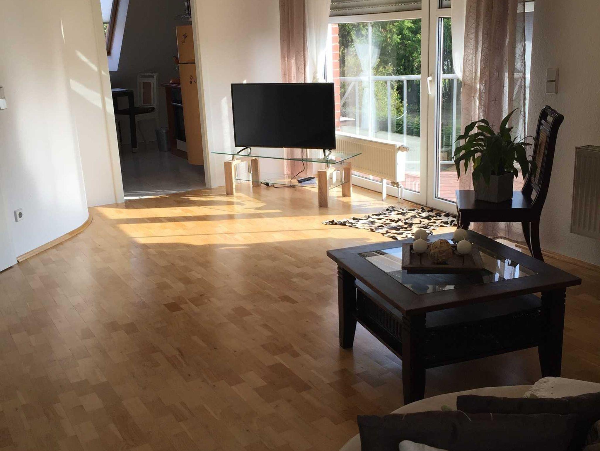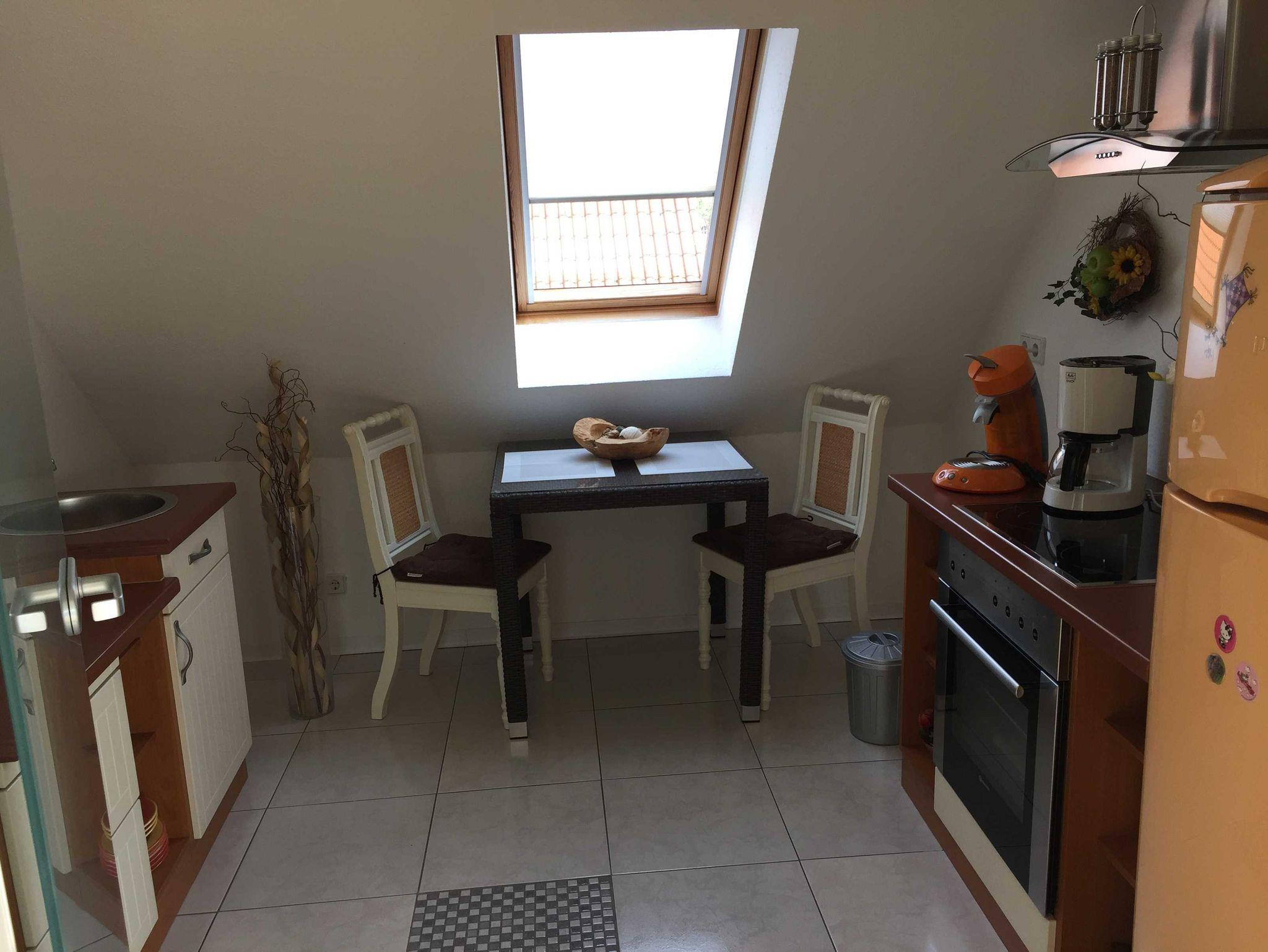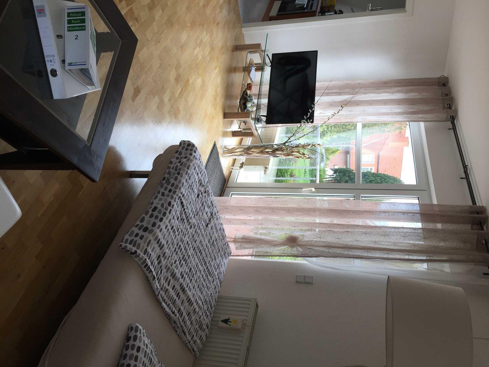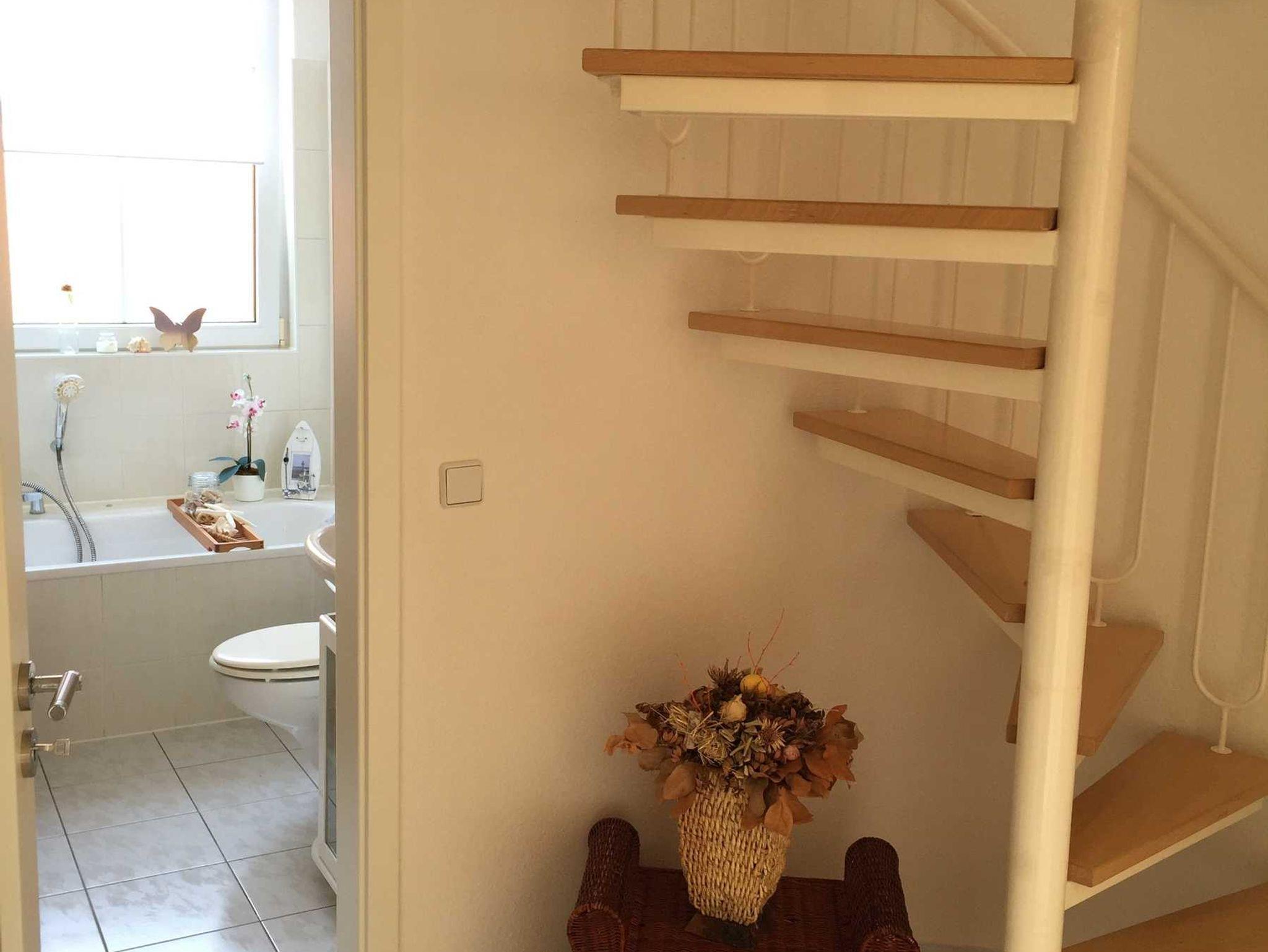 Die Ferienwohnung liegt in der oberen Etage des Hauses und ist über einen separaten Treppeneingang zu erreichen. In der einen Ferienwohnung befindet sich ein Bad mit Wanne, eine Küche mit einem Tisch und Stühlen, sowie ein Wohnzimmer mit Flachbildschirm und Balkon, ein Schlafzimmer mit Doppelbett, welches über eine Wendeltreppe erreichbar ist. Die Wohnung wurde renoviert und ist auf dem neusten Stand hergerichtet.
