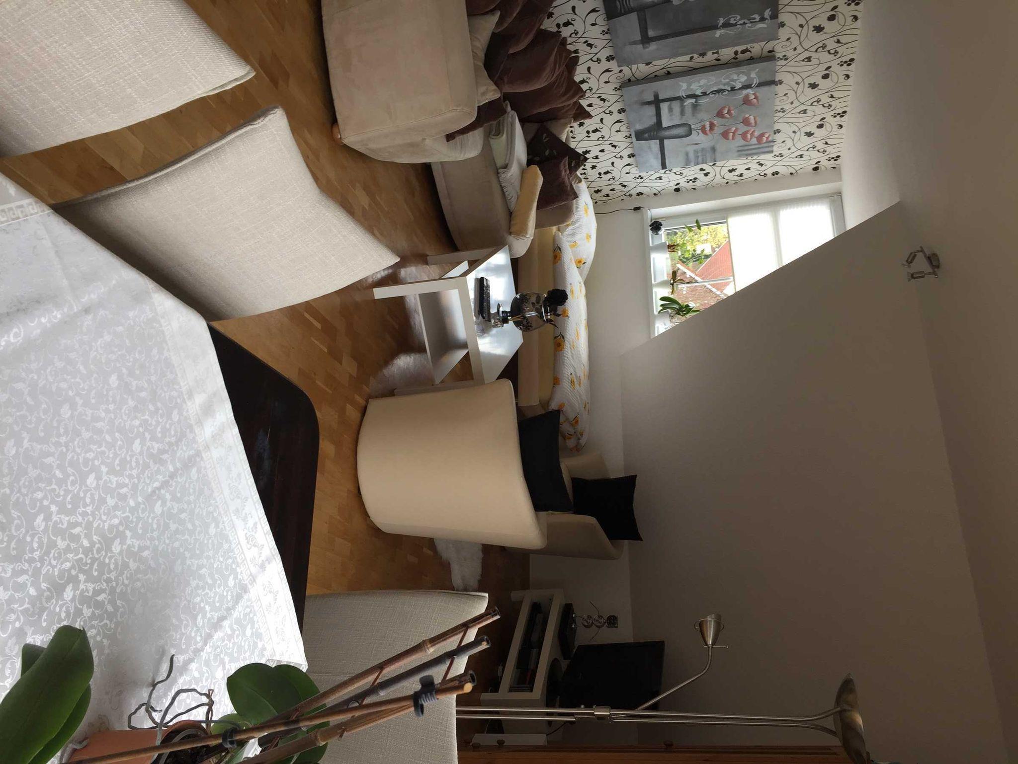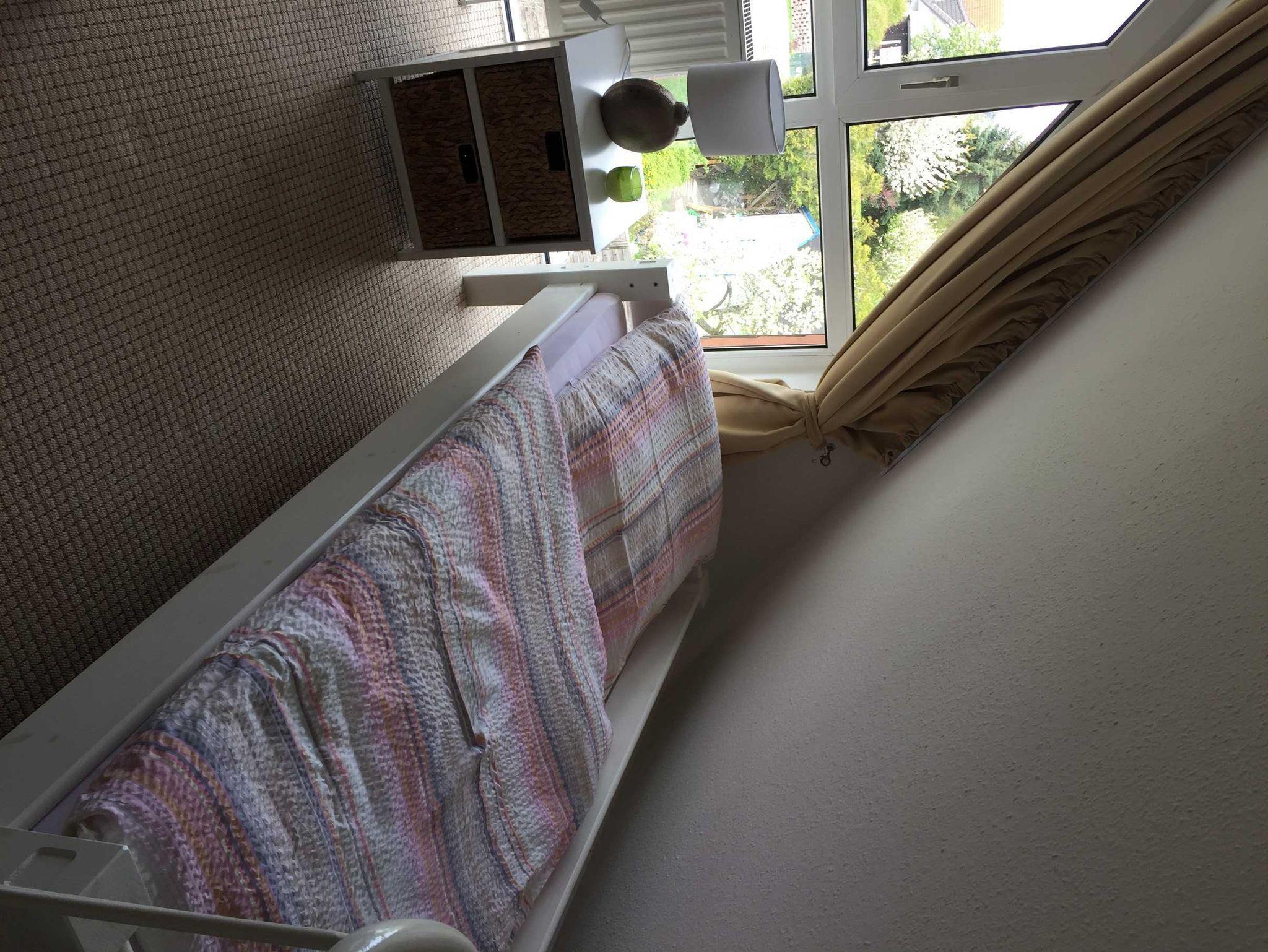 Die Ferienwohnung liegt in der oberen Etage des Hauses und ist über einen separaten Treppeneingang zu erreichen. In der einen Ferienwohnung befindet sich ein Bad mit Wanne, ein Schlafzimmer mit getrennten Betten und einen Flachbildschirm, welches auch über eine Wendeltreppe zu erreichen ist, ein Wohnzimmer mit Flachbildschirm, Doppelbett und einem Balkon, sowie ein weiterer Schlafbereich mit Doppelbett.
