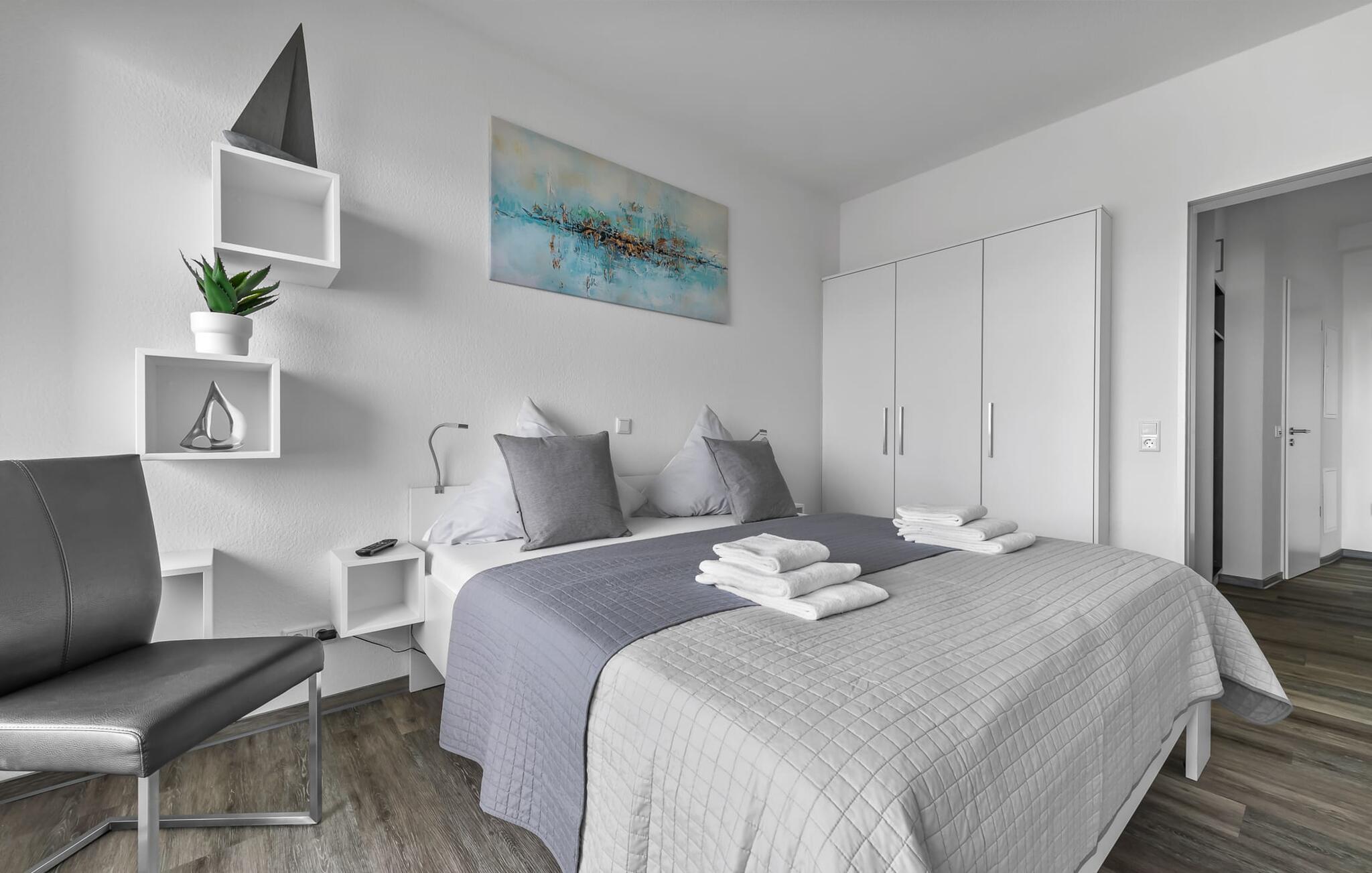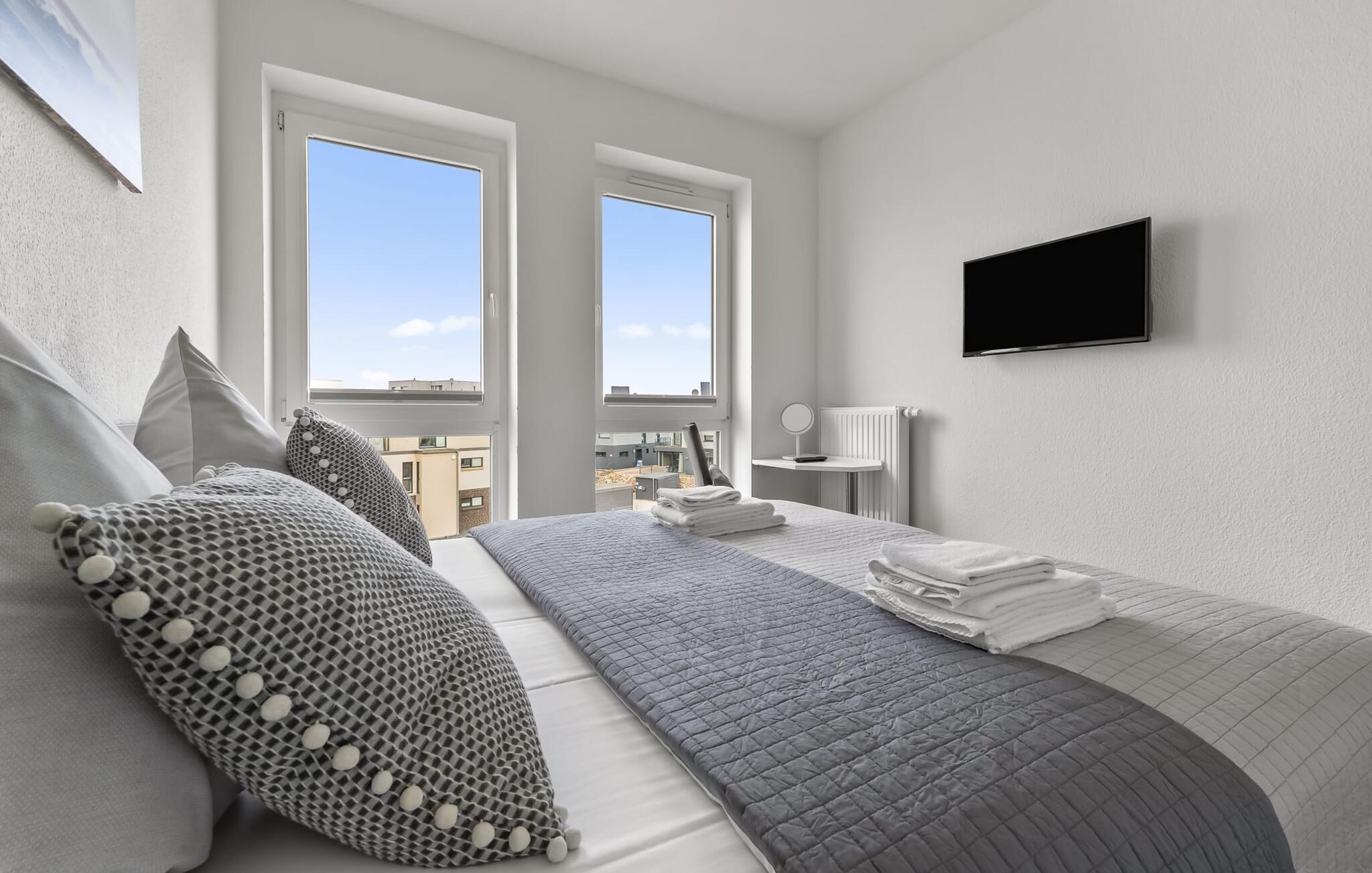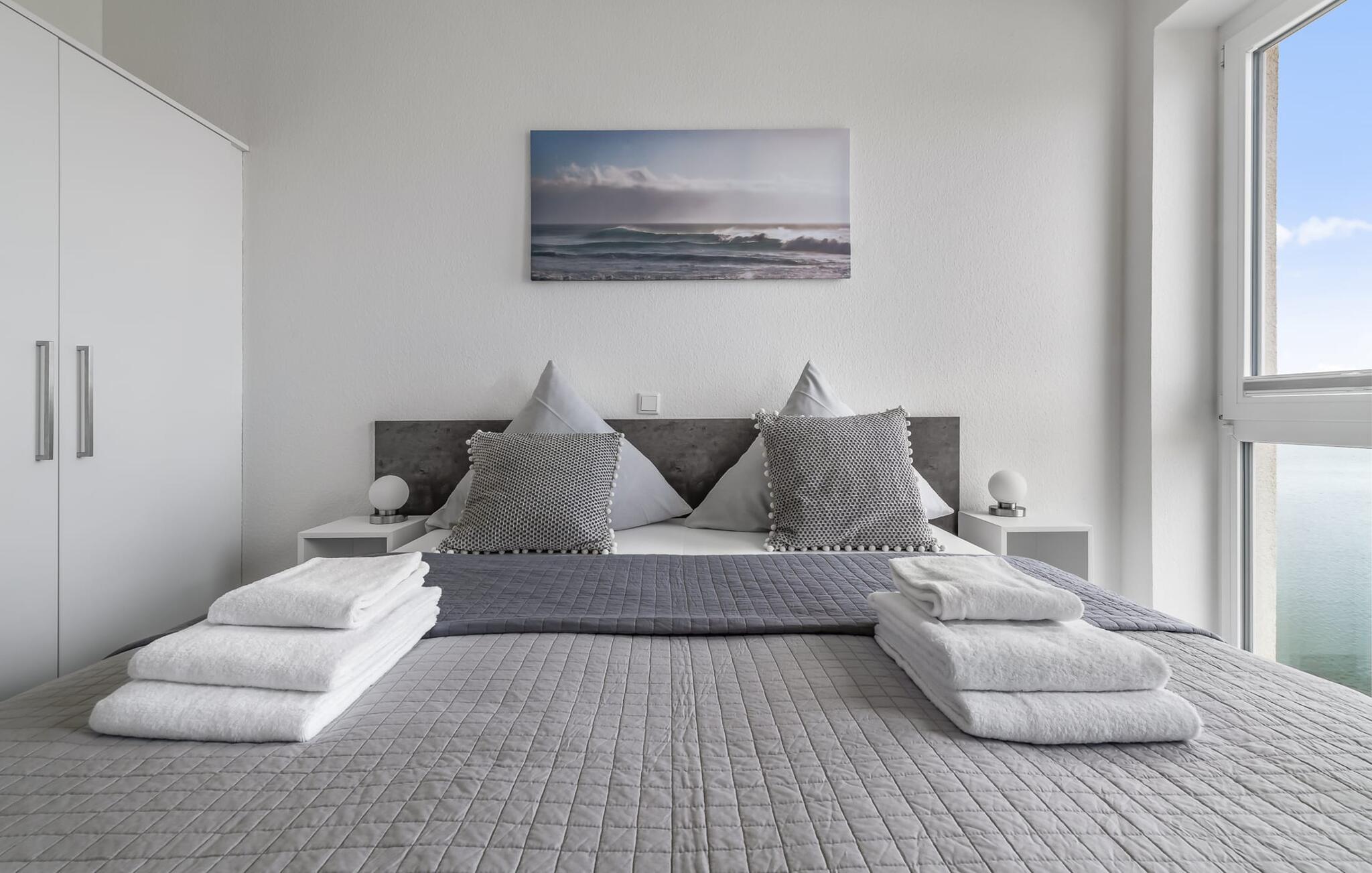 Nyd eksklusiviteten og den betagende panoramaudsigt over ferielejligheden Wellenblick. Den uhindrede udsigt over havnen, Østersøen og mundingen af floden gør dette til et særligt tilflugtssted. Denne charmerende lejlighed er kendetegnet ved en indbydende stue/spisestue, der inviterer jer til at blive hængende og nyde. Det fuldt udstyrede køkken giver jer mulighed for at udvikle jeres kulinariske præferencer og nyde afslappede måltider. Lejligheden har to smagfuldt indrettede soveværelser, det ene med en komfortabel dobbeltseng og det andet med to enkelt boxmadrasser. For ekstra soveplads kan udtrækssofaen i stuen omdannes til to ekstra sovepladser (160x200cm). Der er et moderne smart-tv i hvert soveværelse og i stuen for at give jer underholdning. Ud over møbler af høj kvalitet byder ferielejligheden på gratis WiFi til at forbinde jer med verden. Der er to bruserum til rådighed, så alle gæster kan nyde en afslappende ferie. Den smagfulde indretning af lejligheden formidler en moderne, venlig, varm og indbydende atmosfære. Altanen fører direkte til vandet og giver jer en idyllisk mulighed for at nyde den friske havluft og beundre udsigten. Den praktiske side af boligen omfatter en underjordisk parkeringsplads med en maksimal højde på 2,05 meter, som giver jer bekvem parkering. Et cykelrum i kælderen står til rådighed for alle husets beboere til at udforske det omkringliggende område på to hjul. En elevator gør det også nemmere for jer at komme ind i lejligheden. Oplev en uforglemmelig ferie i den moderne, venlige og komfortable ferielejlighed Wellenblick. jeres perfekte tilflugtssted med en førsteklasses udsigt og alle faciliteterne til et afslappende ophold ved Østersøen. Vores favoritsted: Vandudsigten fra næsten alle sider er virkelig uforlignelig I kælderen er der en vaskemaskine og en tørretumbler til fælles brug. Betaling sker via en møntautomat. I sidebygningen af komplekset venter der gæsterne et eksklusivt pool- og wellnessområde, som naturligvis kan benyttes gratis. Dyk ned i det behageligt tempererede vand, og lad blikket glide ud over Østersøens vidder – en oplevelse for alle sanser. Velgørende saunature indbyder til ophold og giver jer dyb afslapning. Giv jer selv disse små pauser og læg hverdagens stress bag jer – til en ferie fuld af ro, nydelse og ny energi. Bemærk venligst: OstseeResort Olpenitz er meget populært, og der bygges fortsat i parken. Ikke desto mindre kan I se frem til en 5-stjernet standard og et førsteklasses ophold. Byggeaktiviteterne kommer ikke til at forstyrre jer på ferien, og derfor gives der ikke yderligere afslag i prisen.