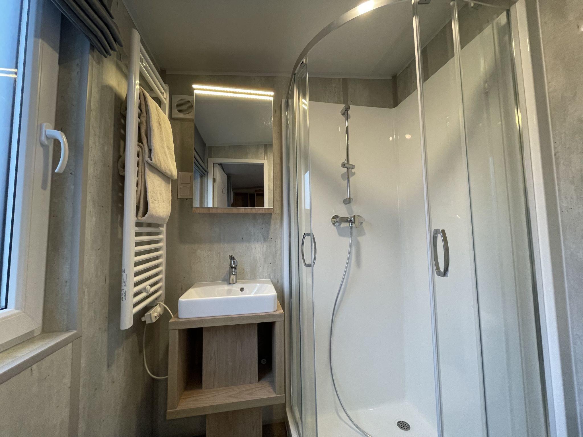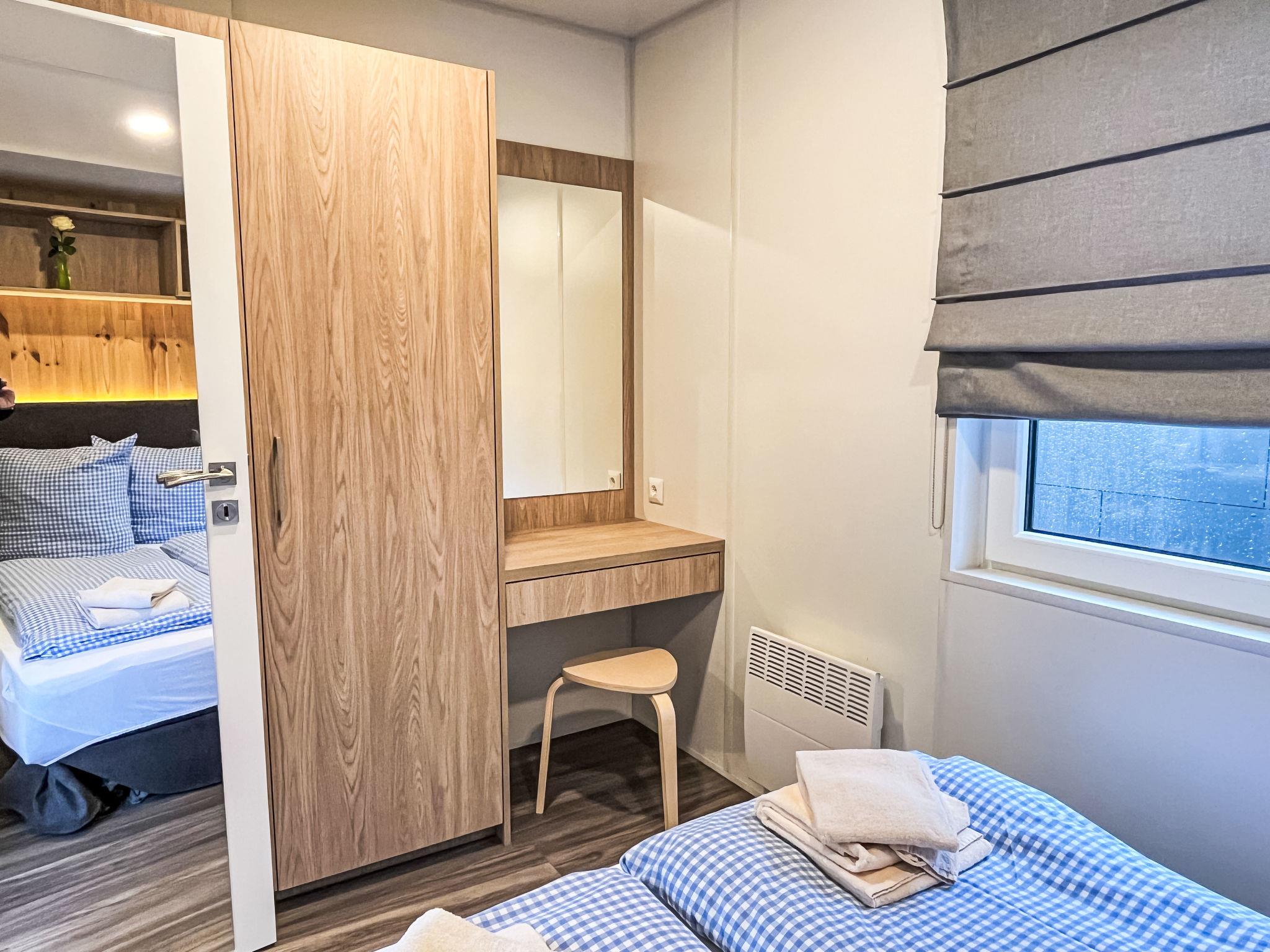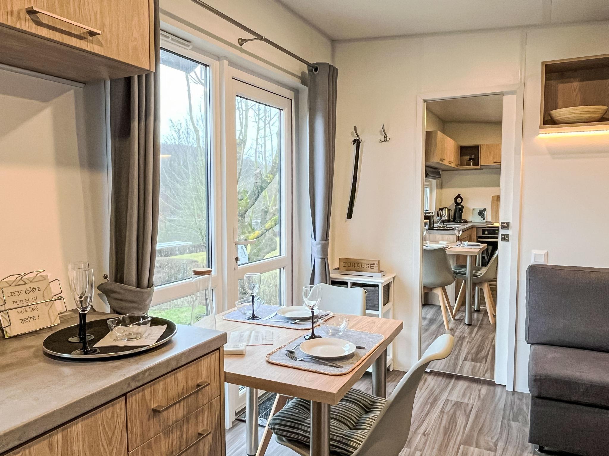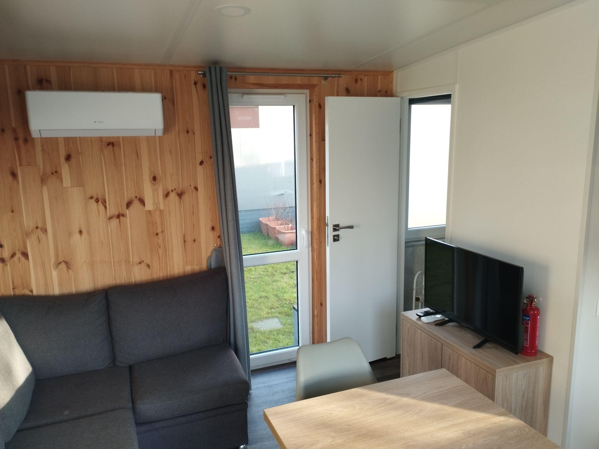 "Tiny Haus Christian", 2-room mobile home 25 m2, on the ground floor. Object suitable for 2 adults + 2 children. Cosy furnishings: living/sleeping room with 1 double sofabed and satellite TV (flat screen). Exit to the terrace. 1 room with 1 french bed (140 cm, length 200 cm). Open kitchen (2 induction hot plates, toaster, kettle, microwave, electric coffee machine). Shower/WC. Electric heating, air-conditioning. Terrace. Terrace furniture. Parking space n 162 (1 car) at 20 m. Please note: non-smoking house. Maximum 1 pet/ dog allowed. Smoke alarm. ATTENTION: The Wi-Fi connection may be limited depending on capacity.