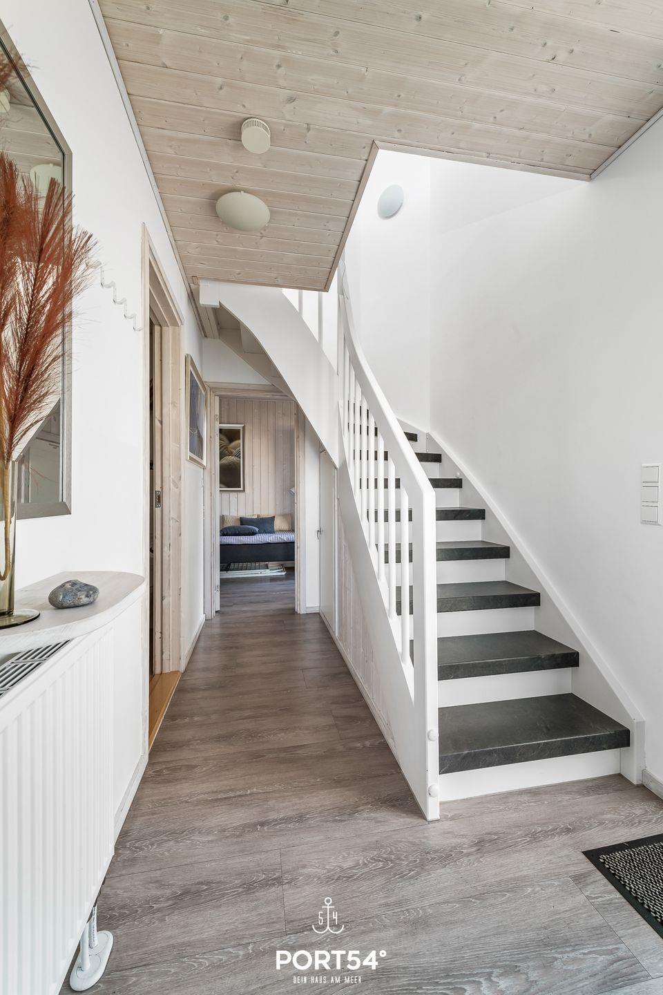 Ebenfalls befindet sich am Haus ein kostenfreier PKW Stellplatz und ein abschließbarer Fahrradschuppen. Ob laue Sommerabende, stürmische Herbstnachmittage oder kühle Wintertage: diese Doppelhaushälfte besticht mit seiner Ausstattung sowie einer naturnahen Umgebung zu jeder Jahreszeit. Vom Balkon aus genießen Sie den Blick Richtung Meer.